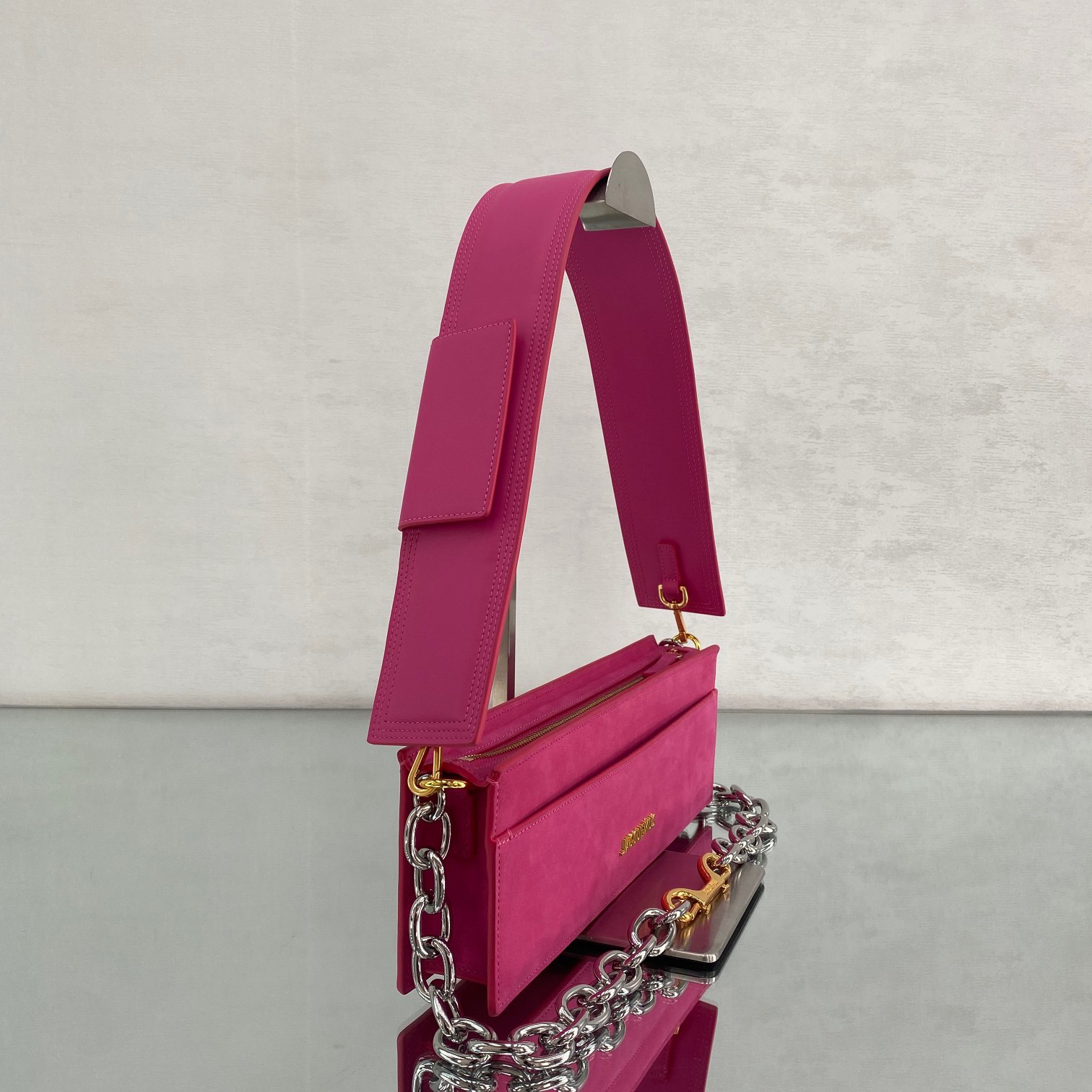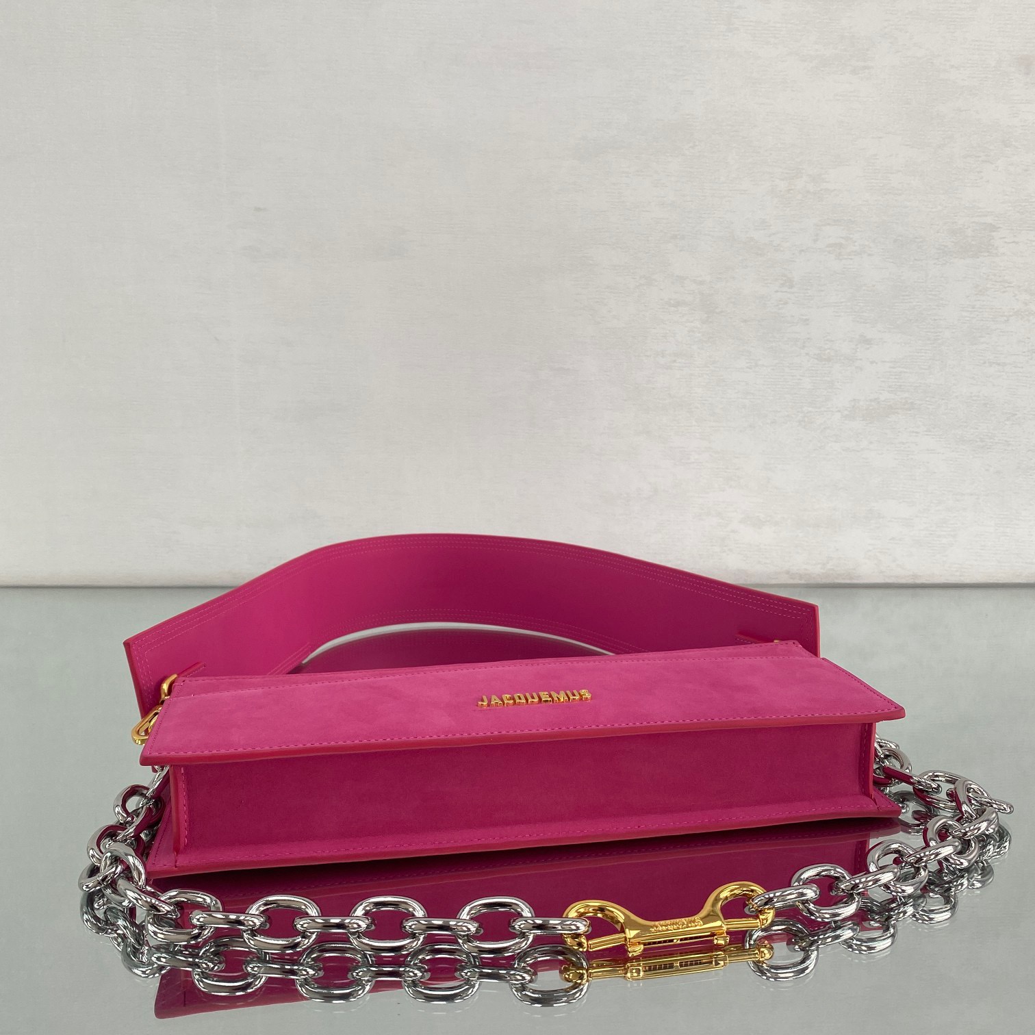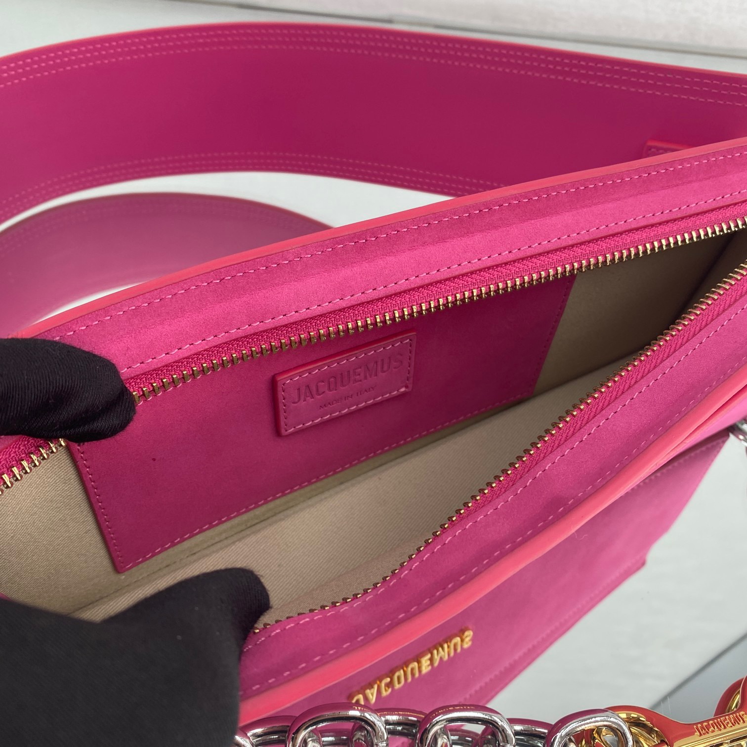 Pink Jacquemus Chain Underarm/Handbag Known as the most popular retro handbag, with its stiff body, high-purity colors, and the eye-catching golden LOGO + exquisite chain combination on the package. Style number: 2043 Size: 30xH11x4.5cm