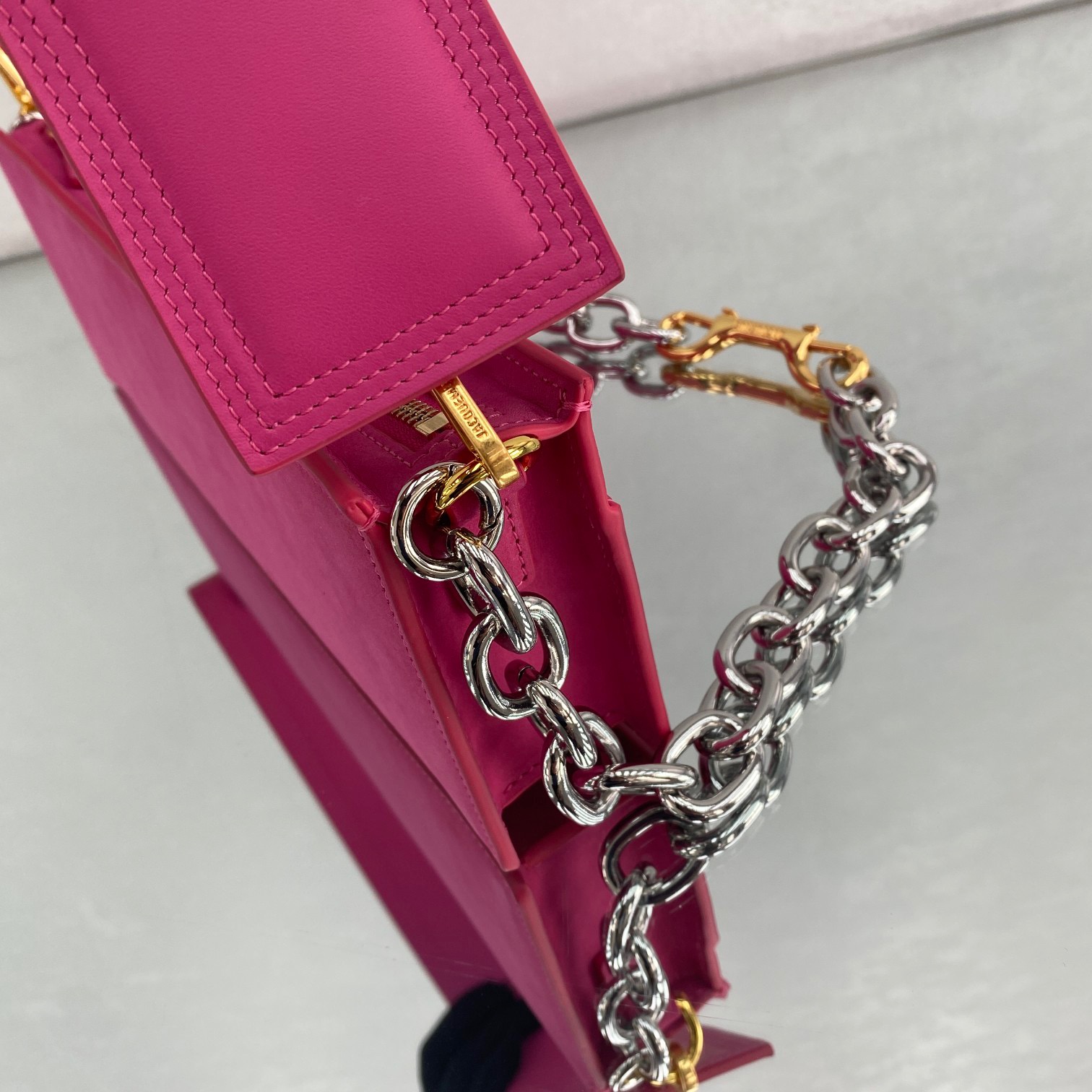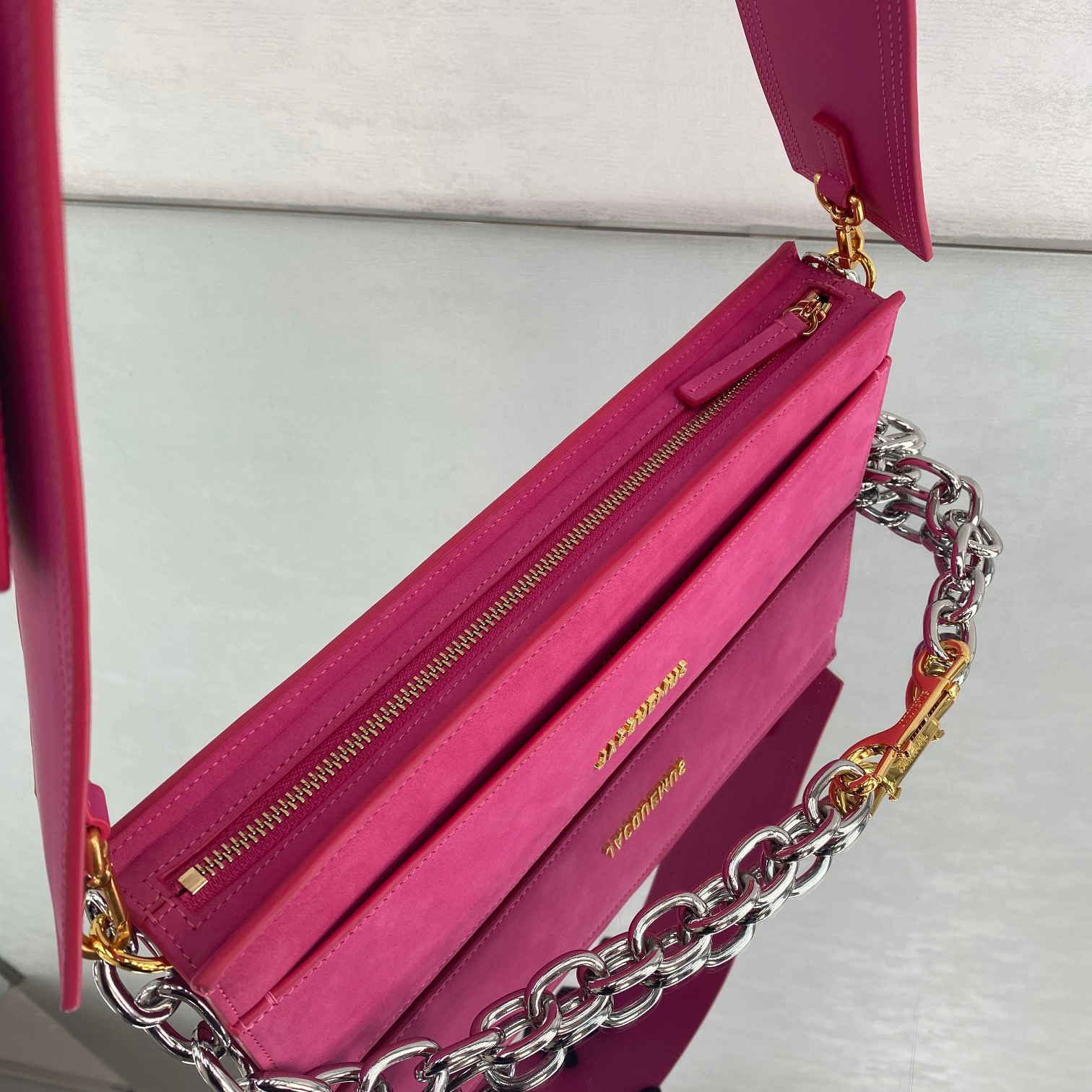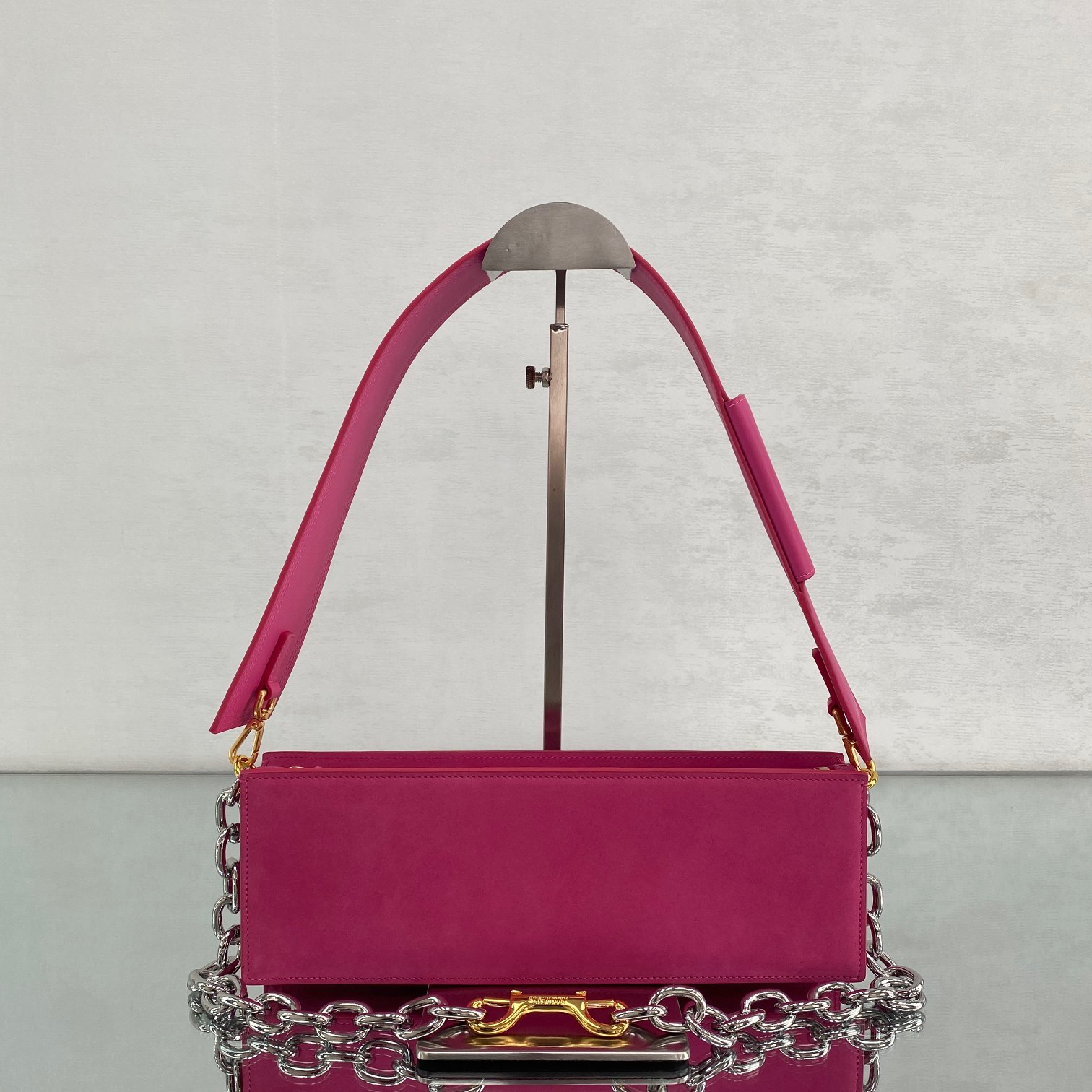 Pink Jacquemus Chain Underarm/Handbag Known as the most popular retro handbag, with its stiff body, high-purity colors, and the eye-catching golden LOGO + exquisite chain combination on the package. Style number: 2043 Size: 30xH11x4.5cm