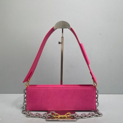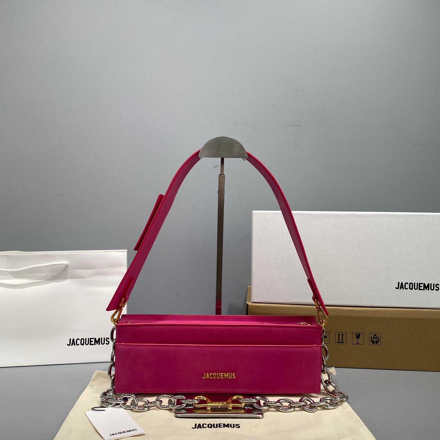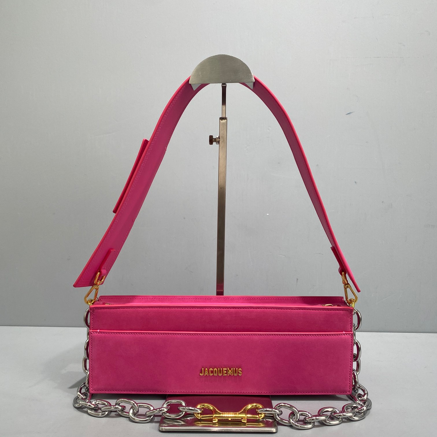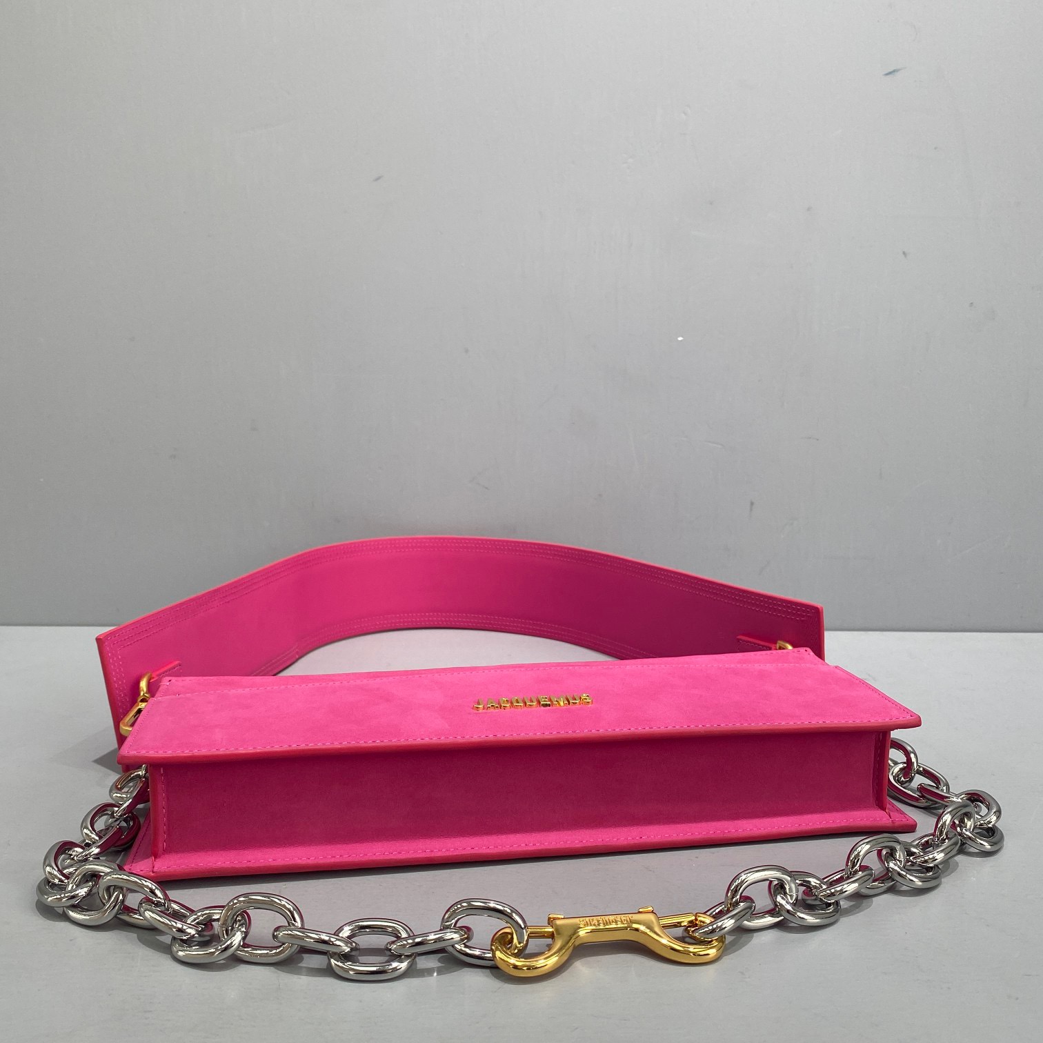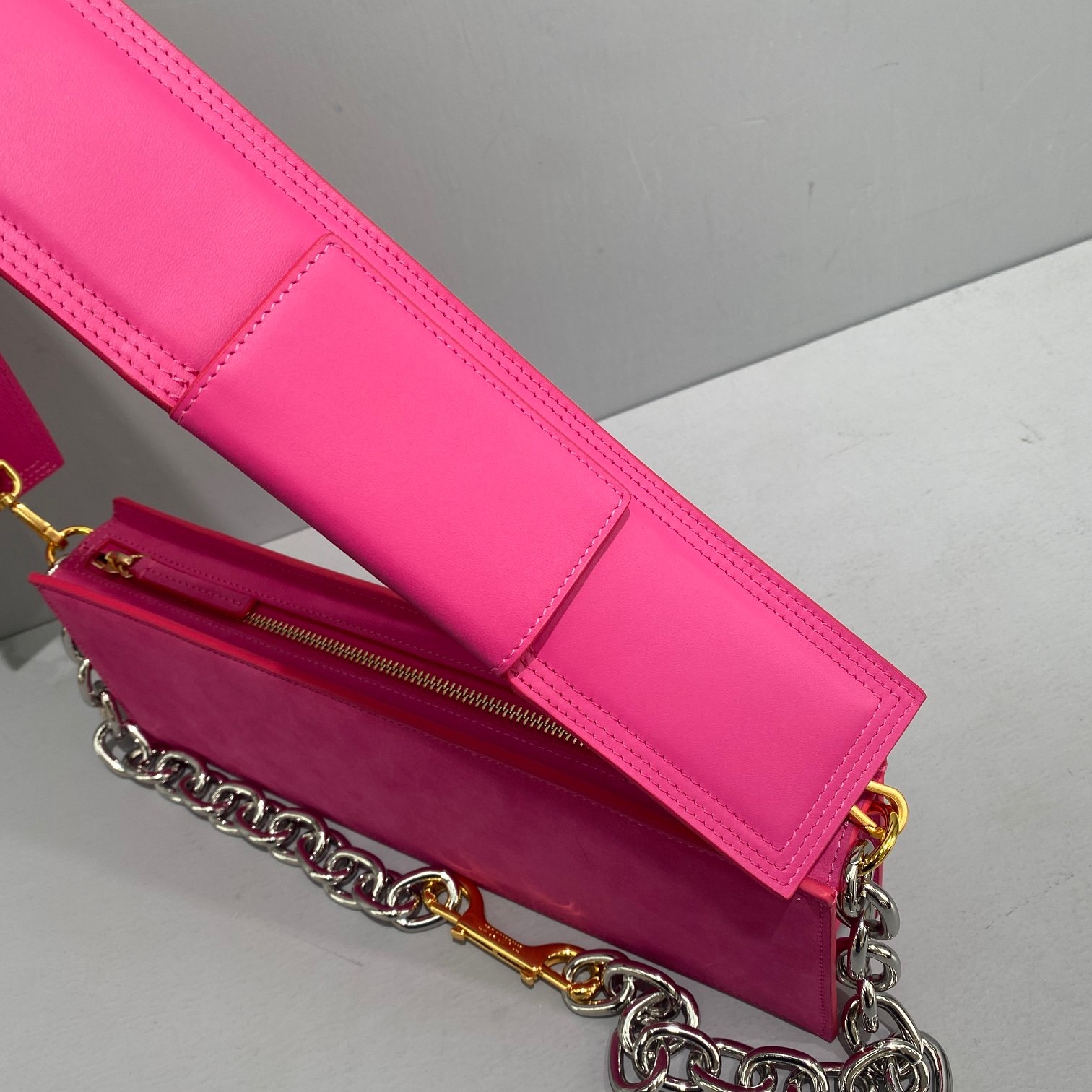 Pink Jacquemu Le Sac Ciuciu series chain crossbody / hand bag Using polished leather, detachable chain link shoulder strap, lobster clasp and spring ring buckle closure, with its rigid body, high-purity color, and eye-catching golden LOGO on the package. One of the world’s best “belts” “Queen of goods” are all carrying the key to showing the French casual style. Style number 2043 Size section 30x height 11×4.5cm