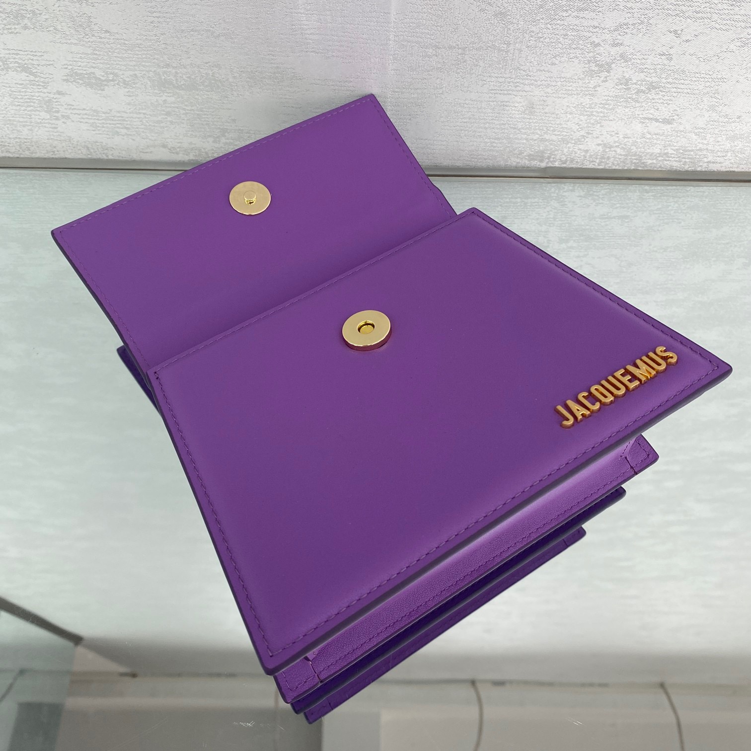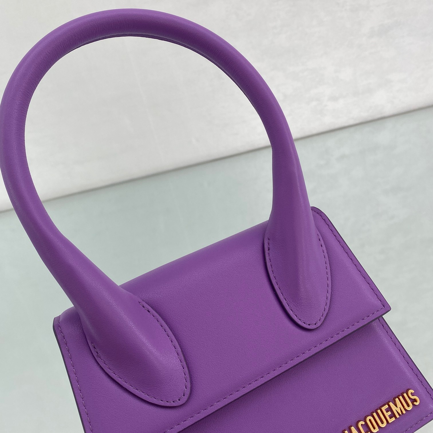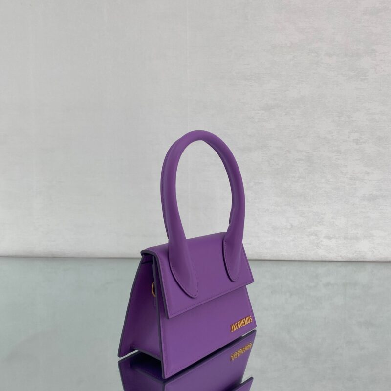Purple Jacquemus one of the hottest bags Known as the most popular retro handbag, with its stiff body, high-purity colors, and the eye-catching golden LOGO on the bag. Style number: 2044. Size: 18×15.5x8cm (plus handle height 28cm)