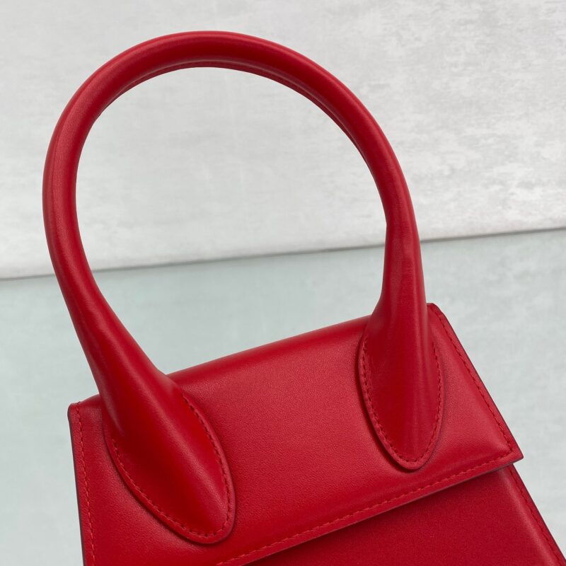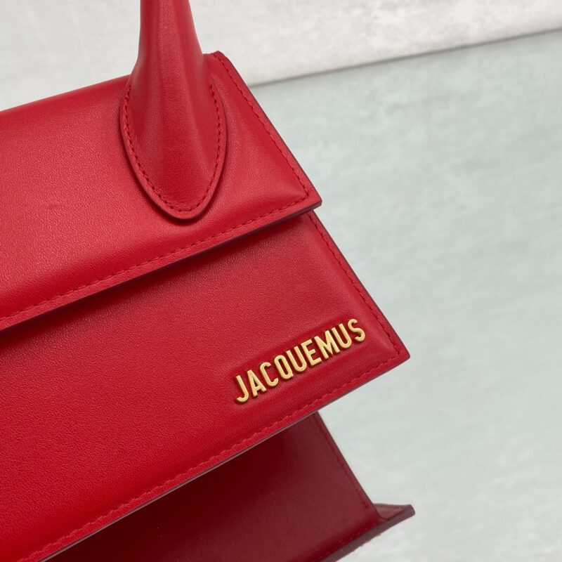 Red Jacquemus one of the hottest bags Known as the most popular retro handbag, with its stiff body, high-purity colors, and the eye-catching golden LOGO on the bag. Style number: 2044. Size: 18×15.5x8cm (plus handle height 28cm)