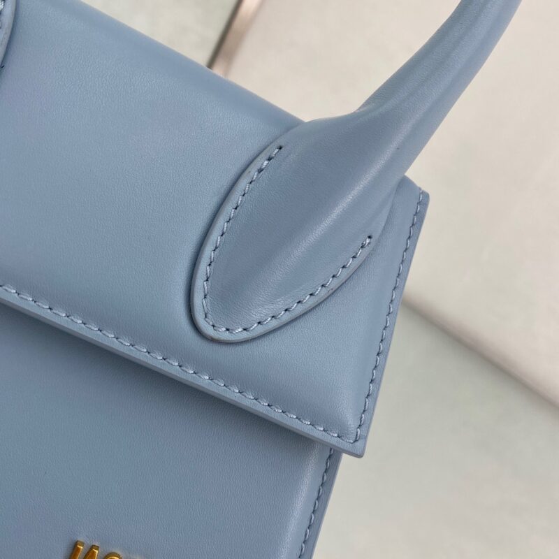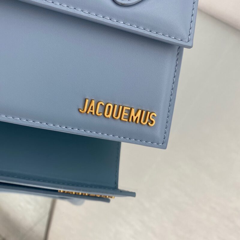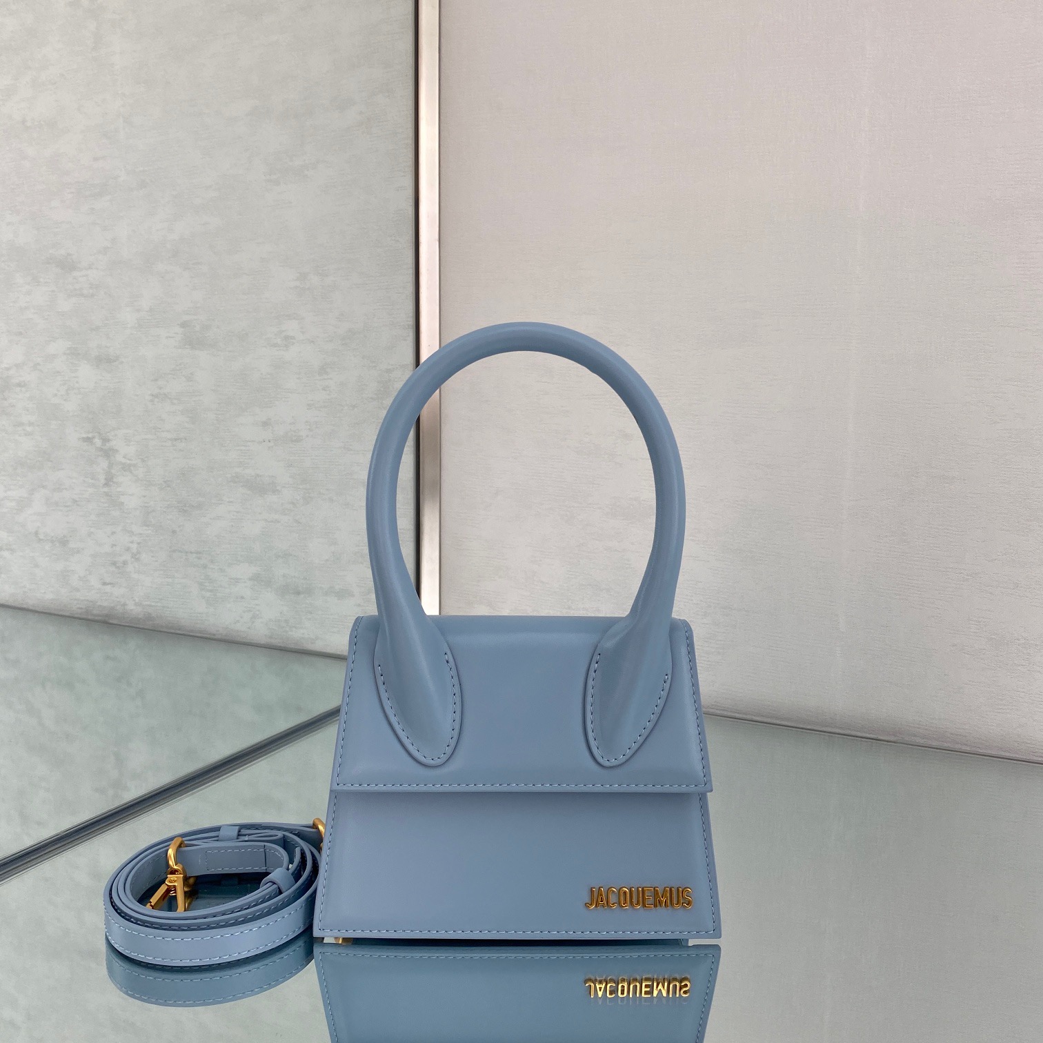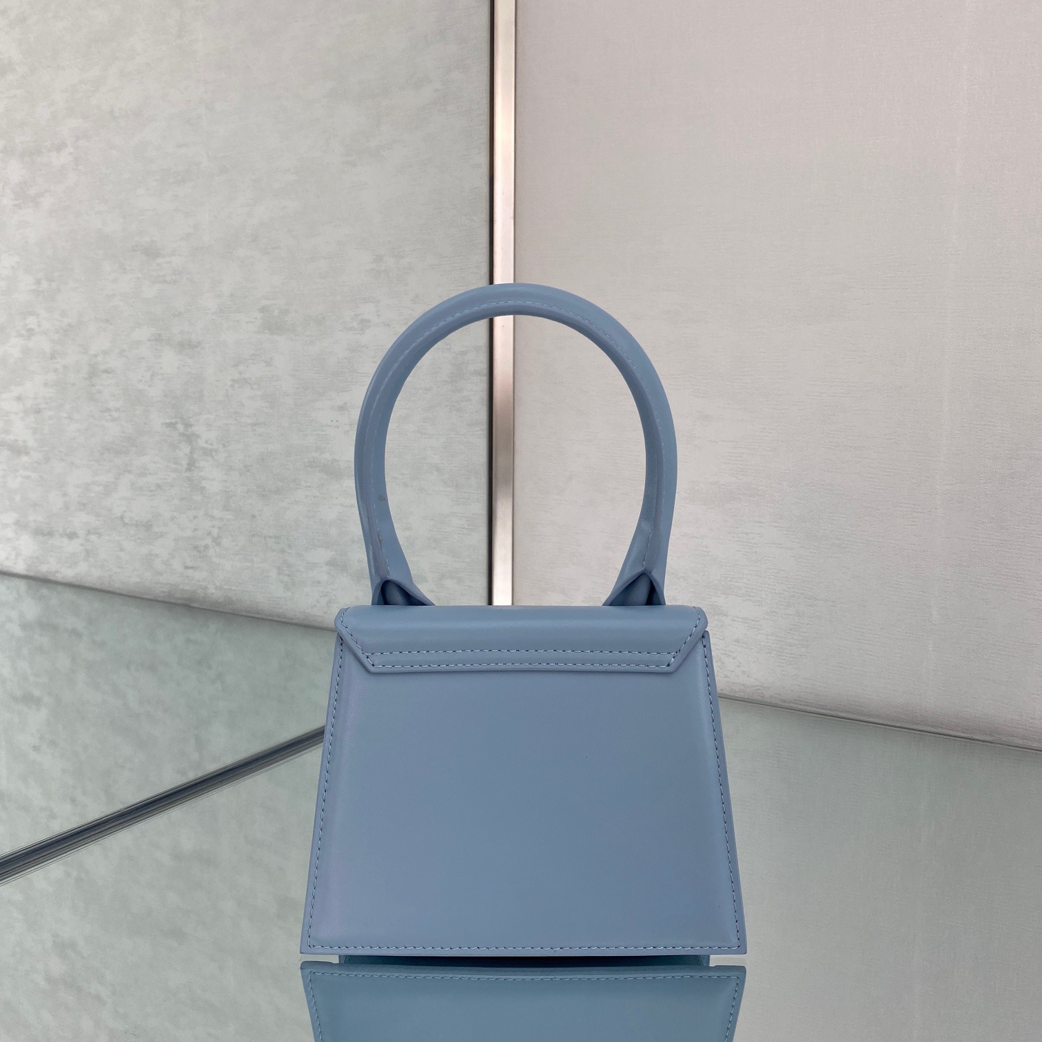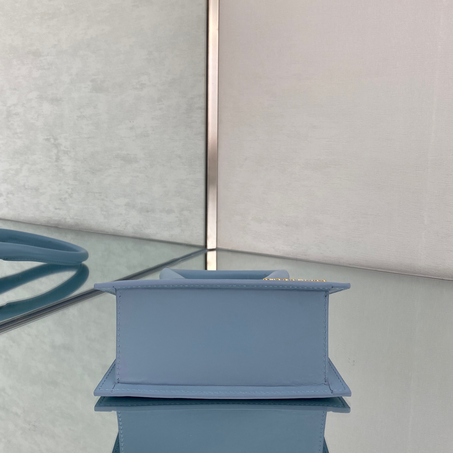 Sky Blue Jacquemus one of the hottest bags Known as the most popular retro handbag, with its stiff body, high-purity colors, and the eye-catching golden LOGO on the bag. Style number: 2044. Size: 18×15.5x8cm (plus handle height 28cm)