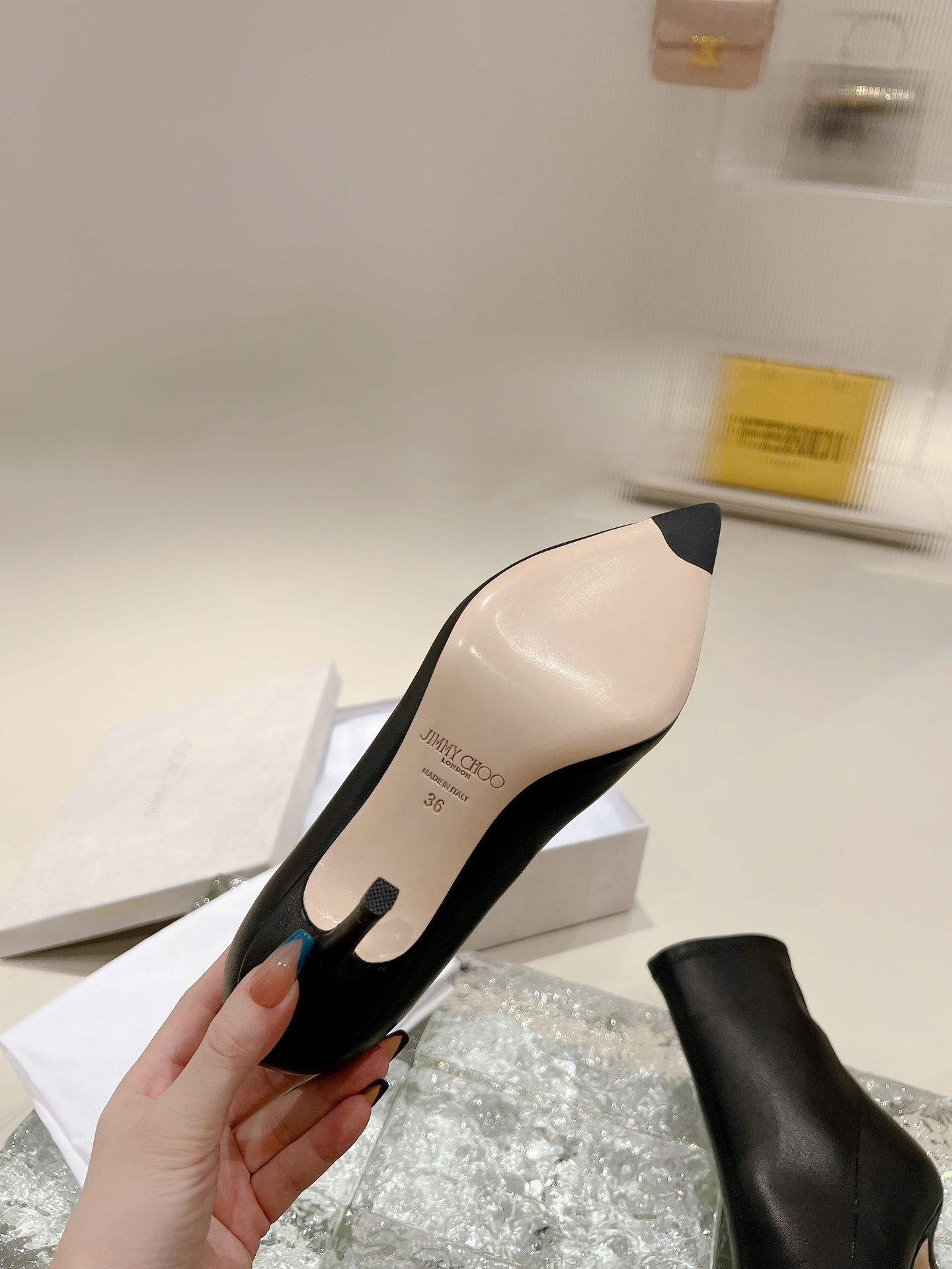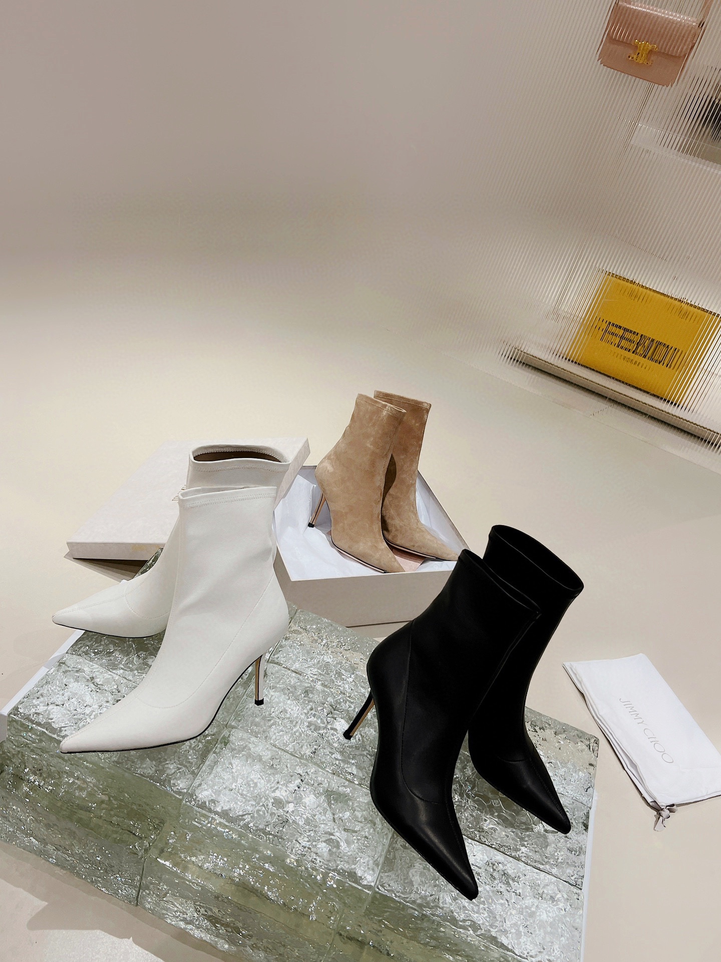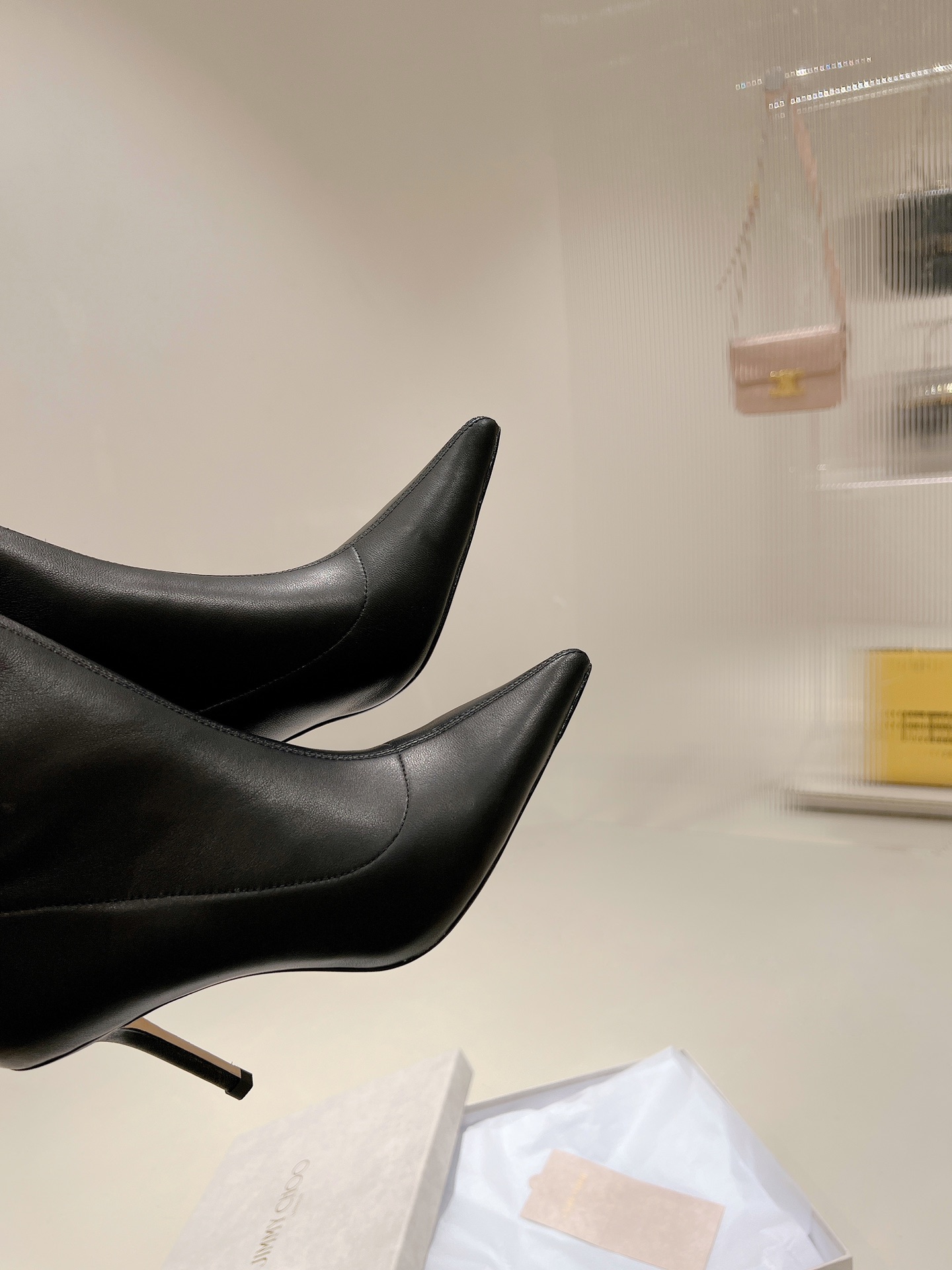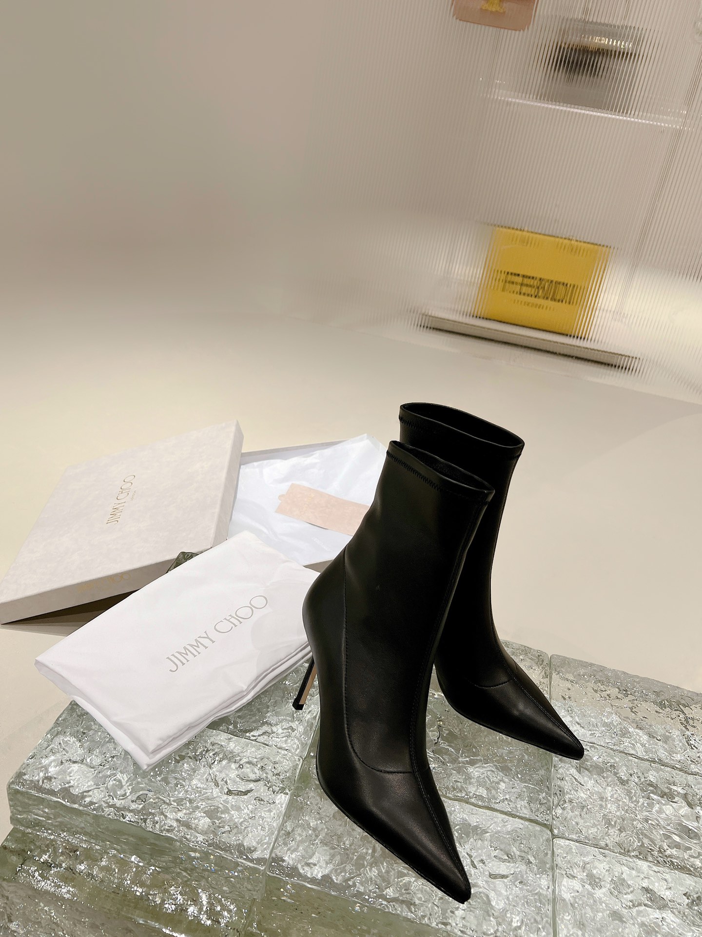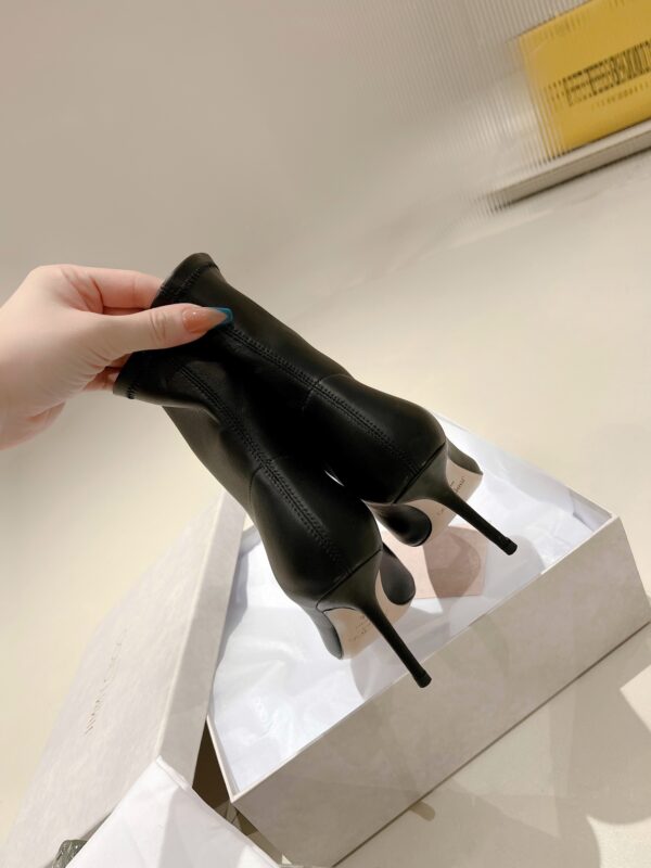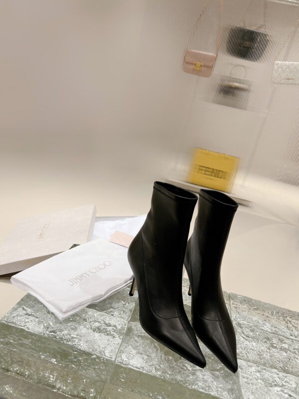 ROSE Series Ankle Boots, Iconic Ankle Boot Style Incorporated into Jimmy Choo brand personality surprise element, more fashionable and chic. black elastic Non-woven material, made in Italy, fits the shape of the foot and provides a comfortable heel. tip Designed with a stiletto heel and a leather outsole with rubber injection on the toe. easy for everyday Dress up for added funky glamour. • Stretch imported tendon/sheepskin •Sheepskin lining • Leather outsole • Pedal version • pointed • Stiletto • Heel height: 8.5 cm /SIZE INFO./SIZE: 35-39 (34 40 customized non-refundable order carefully)