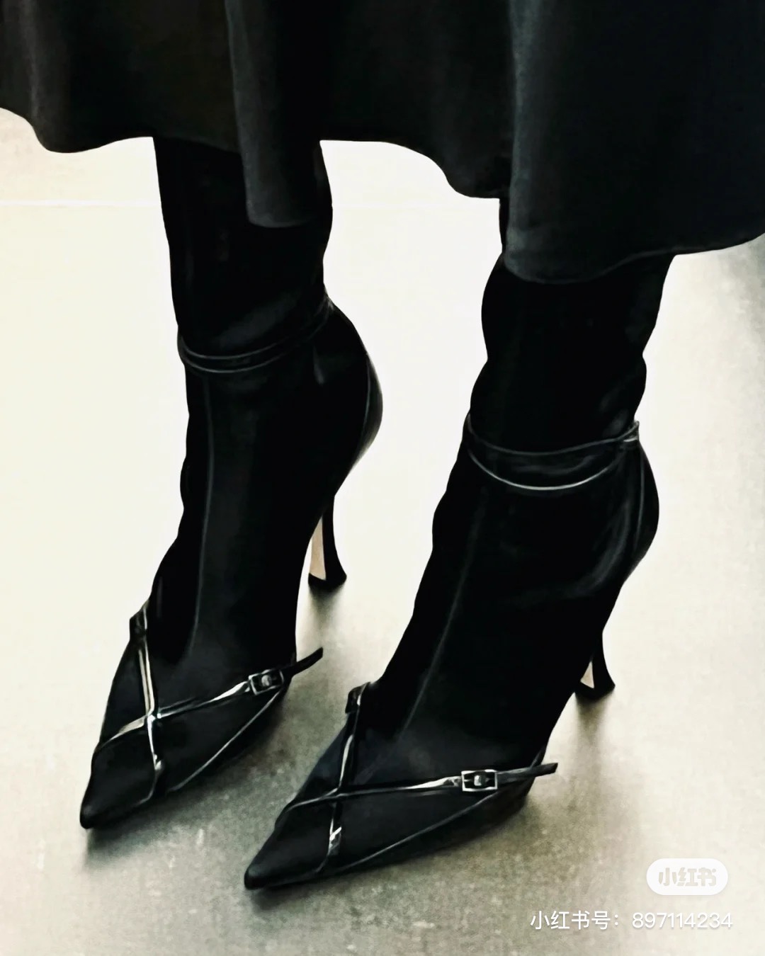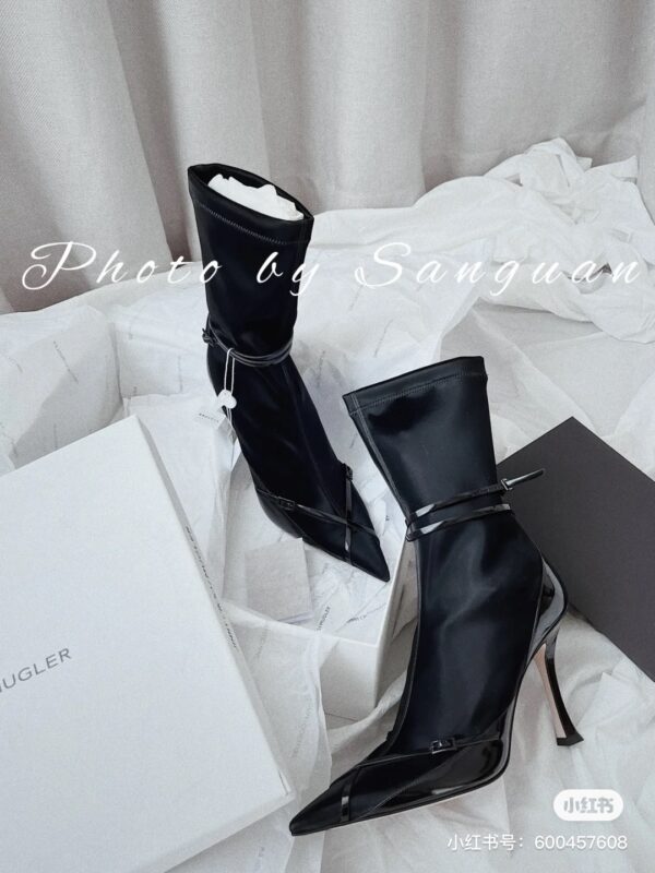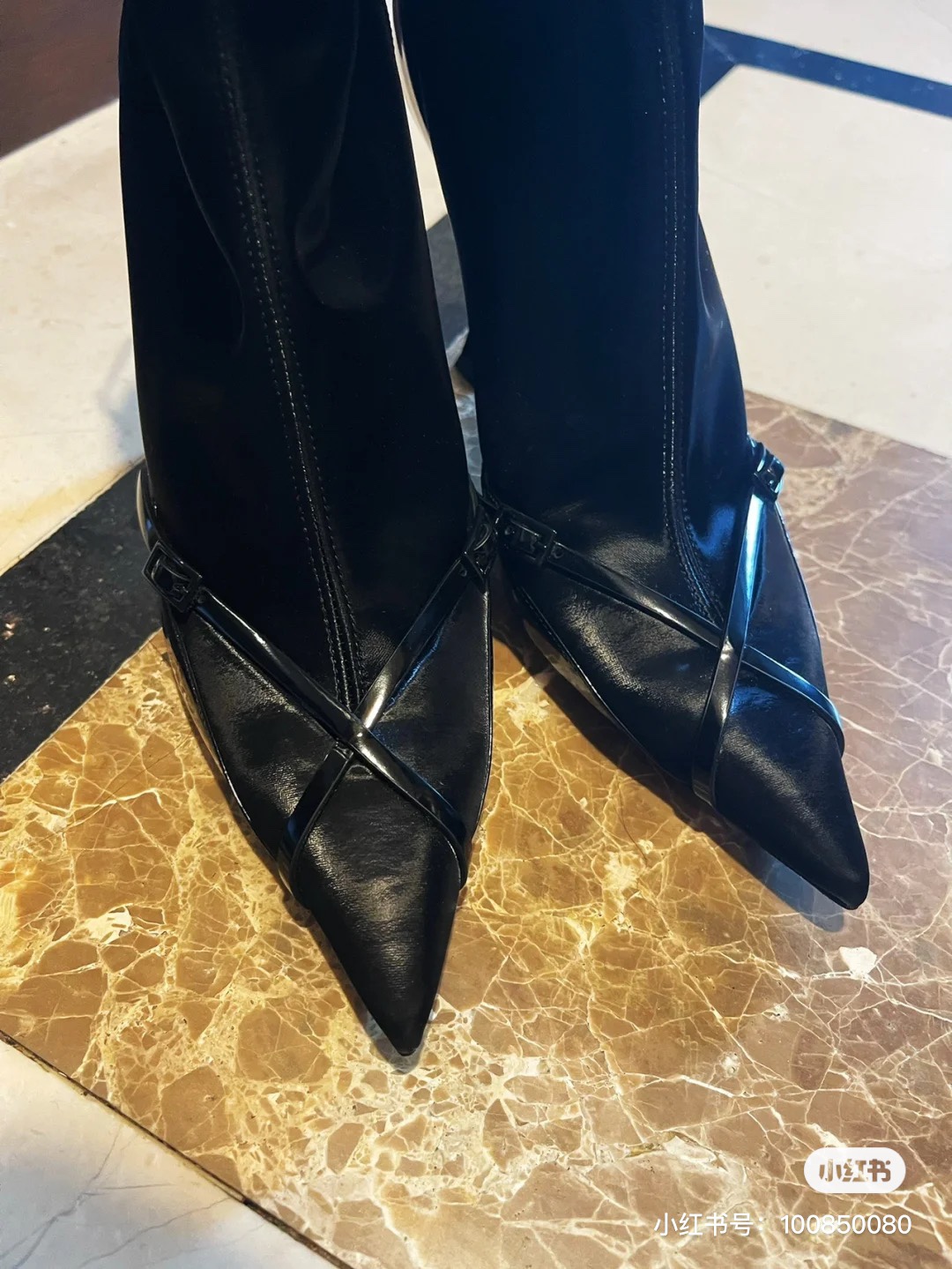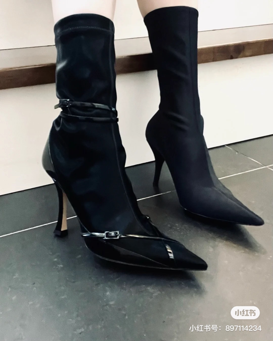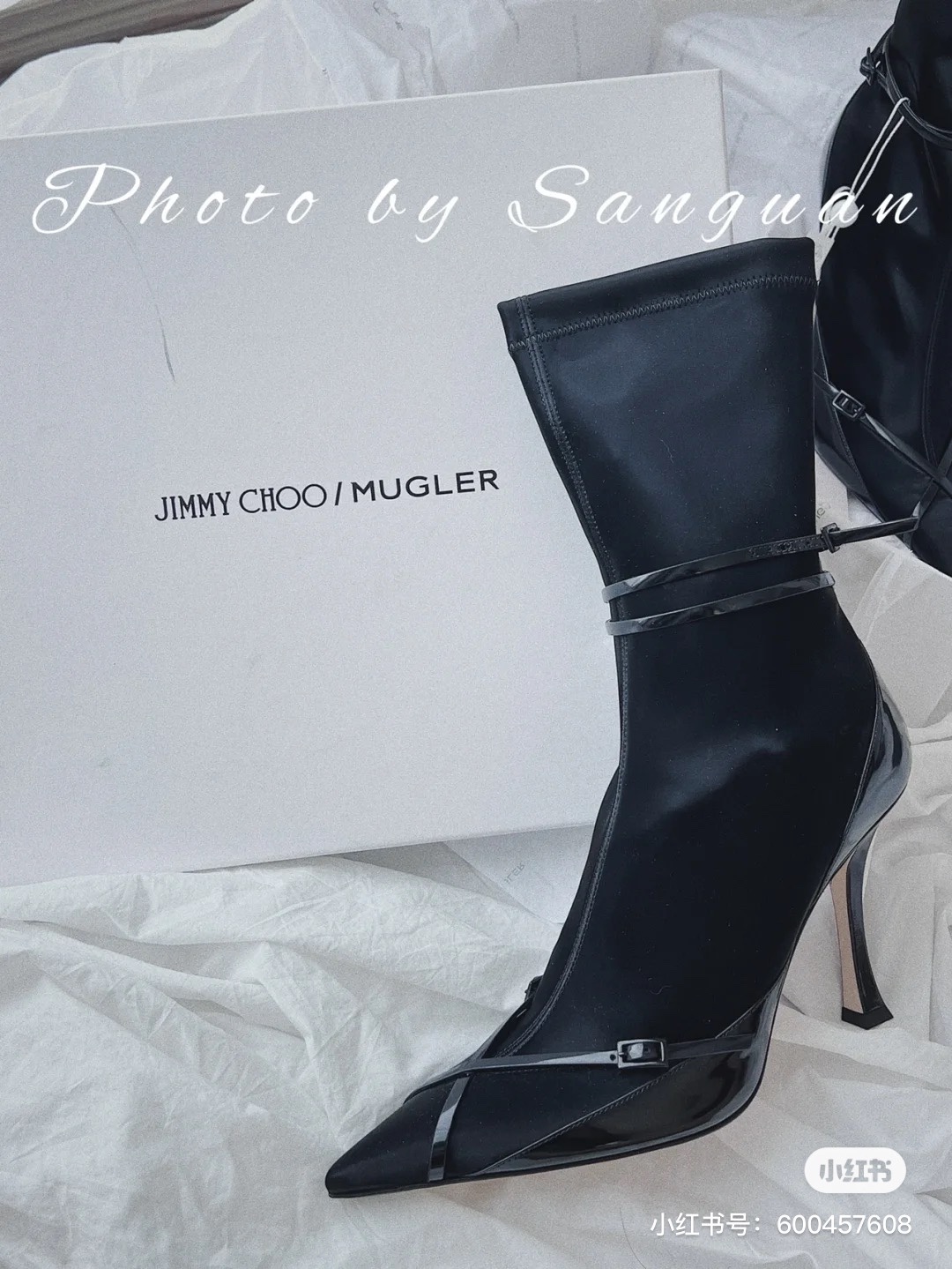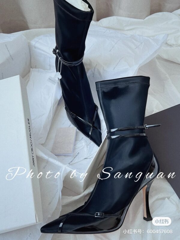 Jimmy Choo’s new cross-strap high-heeled sock boots, the upper feet are super long and fashionable -Vamp: Cow patent leather stitching elastic cloth -Pad: Sheepskin -Outsole: Italian leather outsole -Heel height: 8.5cm -Size: 35-39