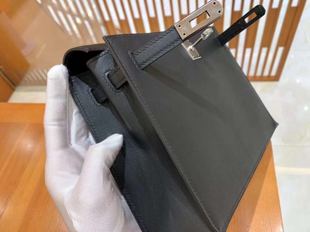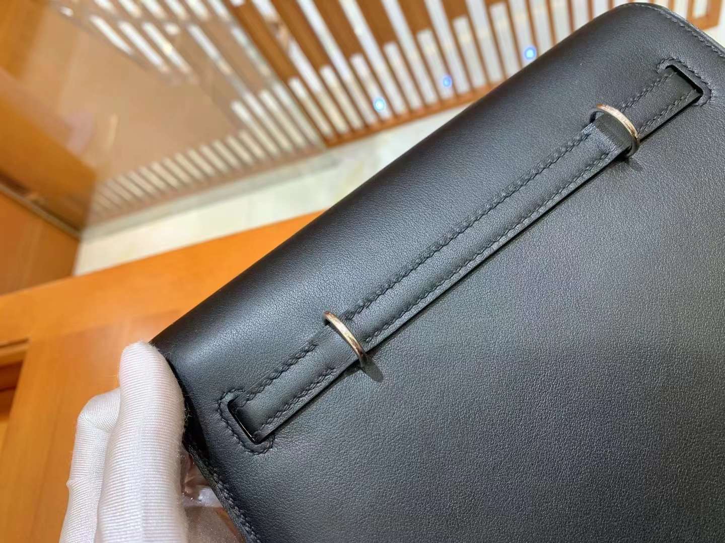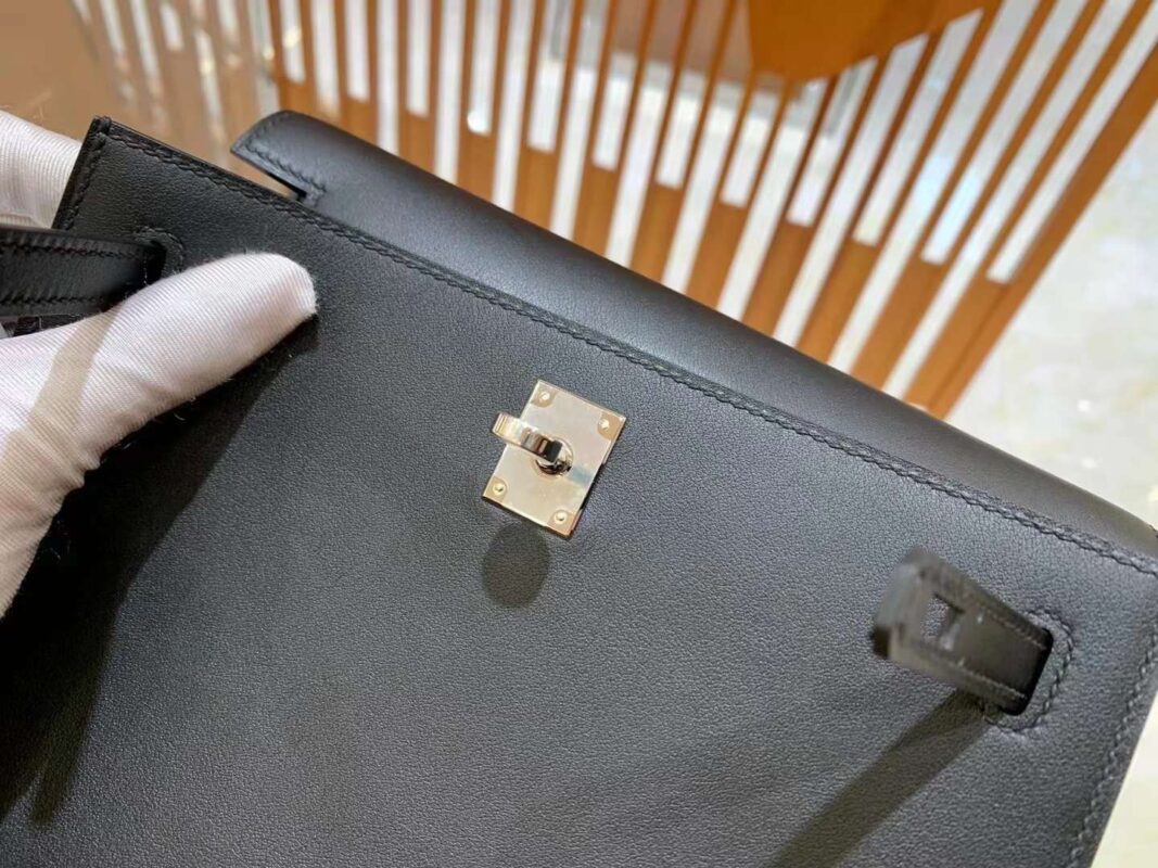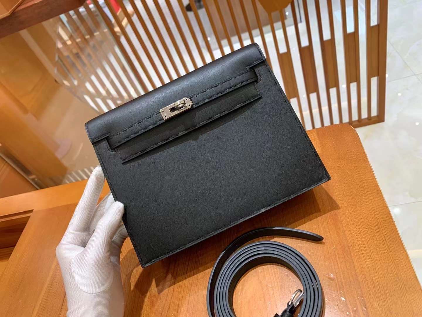 Kelly Danse 22cm swift. Black. Silver Buckle