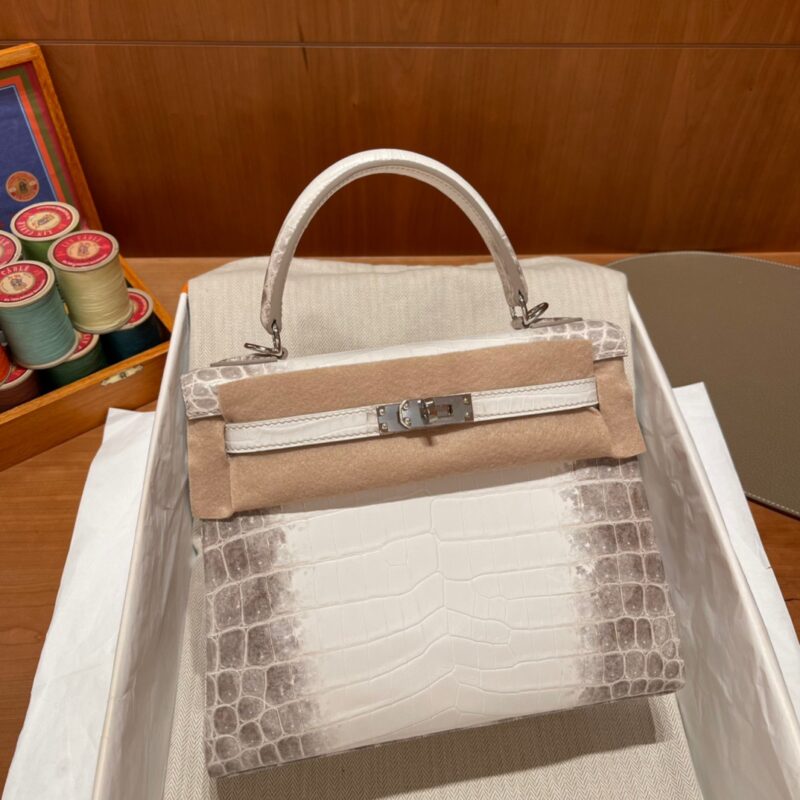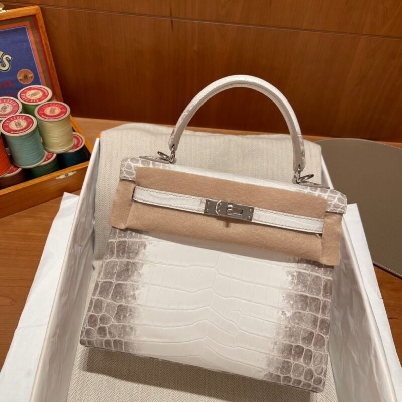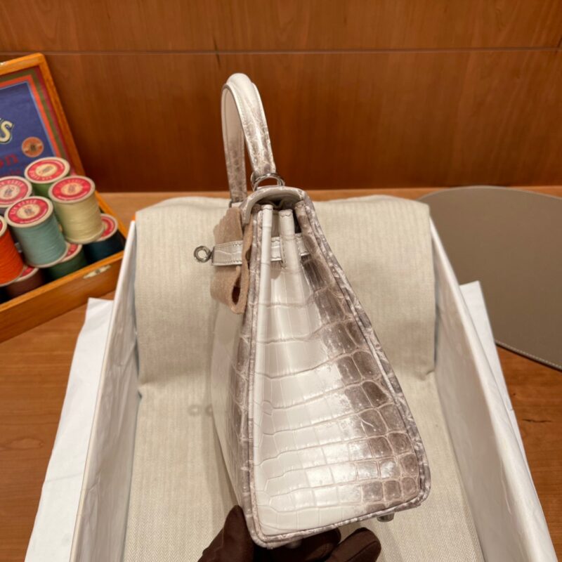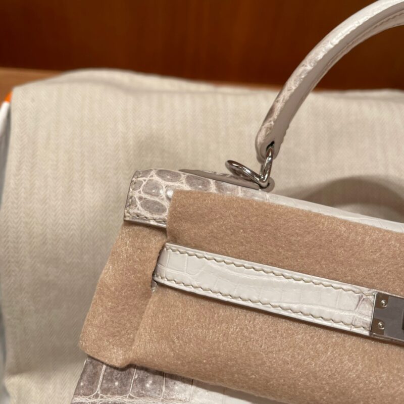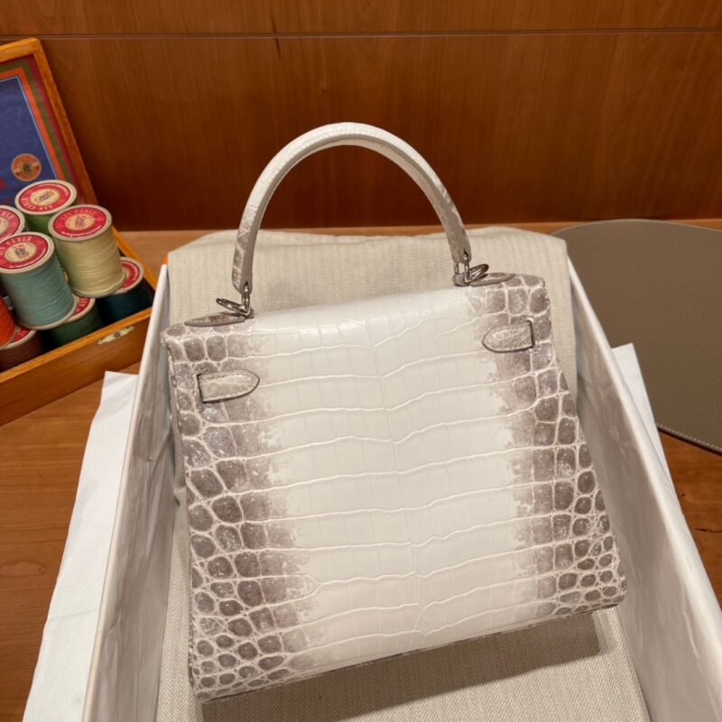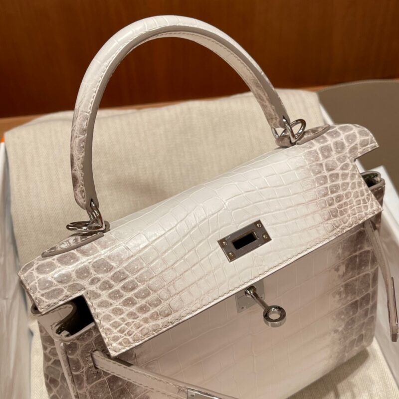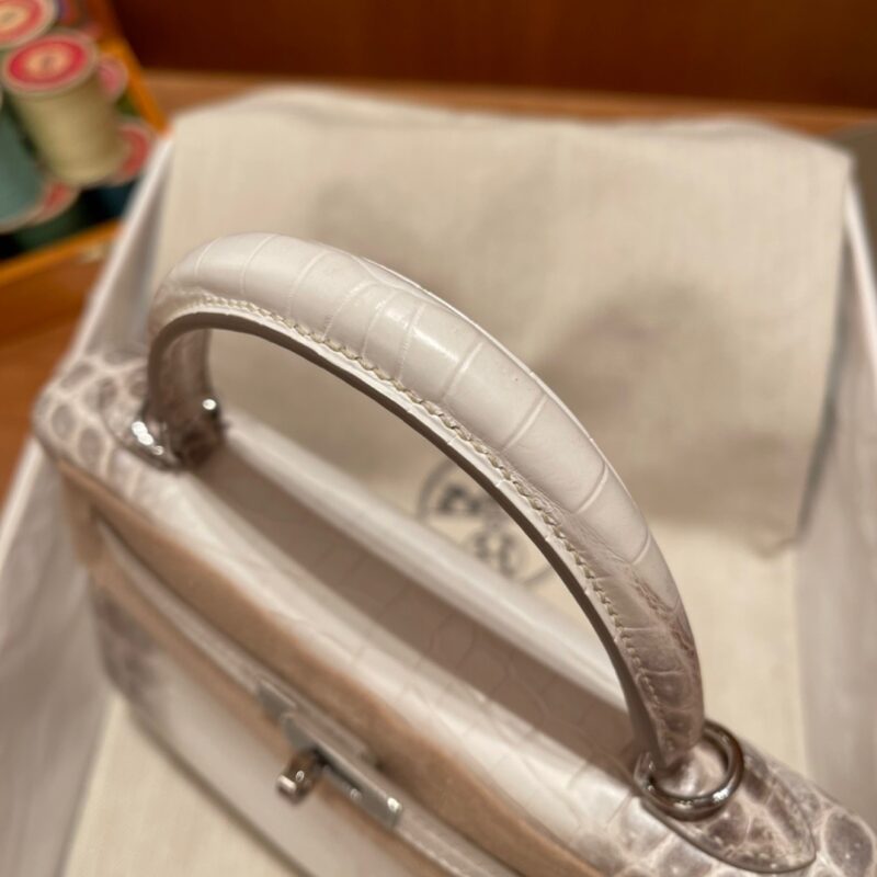 Kelly 25cm Inseam 01 “Dream Bag”Alligator Niloticus. Himalaya. Silver Buckle