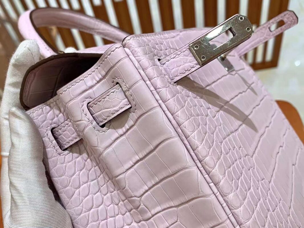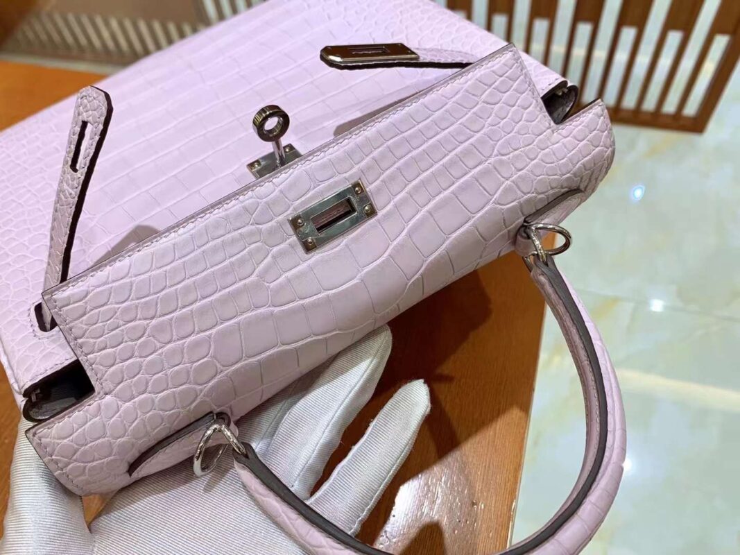 Kelly 25cm Pink Purple Imported first-class American crocodile. French beeswax thread. 100% hand-sewn