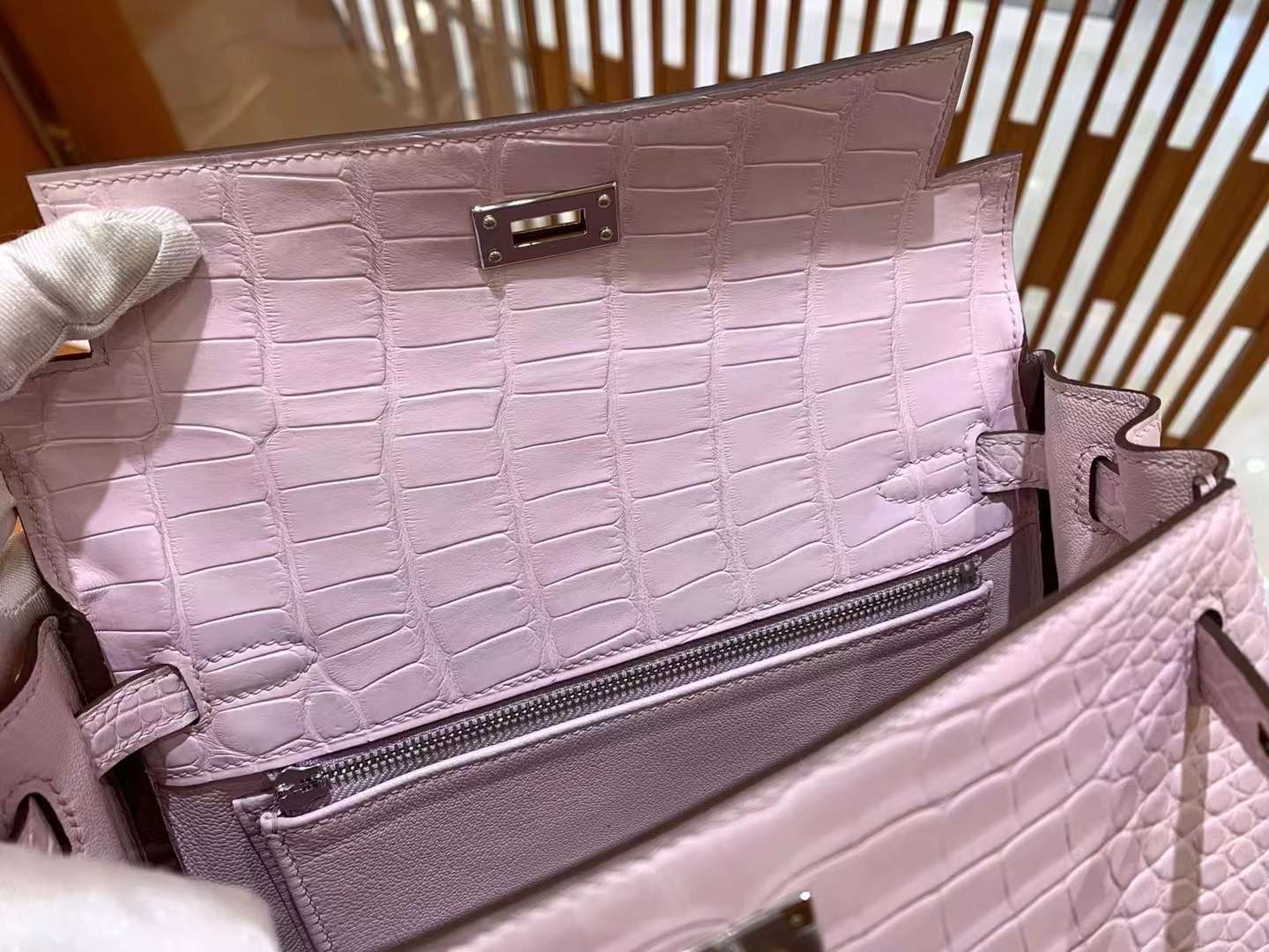 Kelly 25cm Pink Purple Imported first-class American crocodile. French beeswax thread. 100% hand-sewn