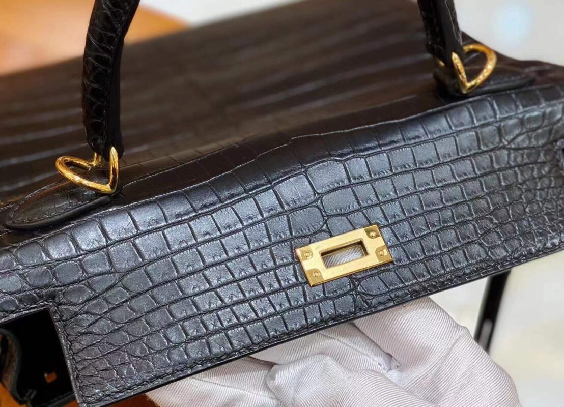 Kelly 25cm Black Gold Buckle Imported first-class Nile crocodile. All hand-sewn
