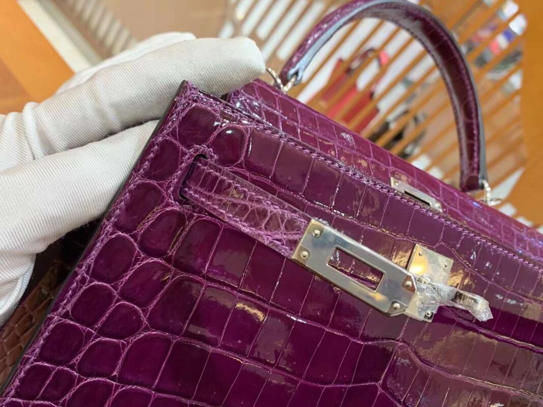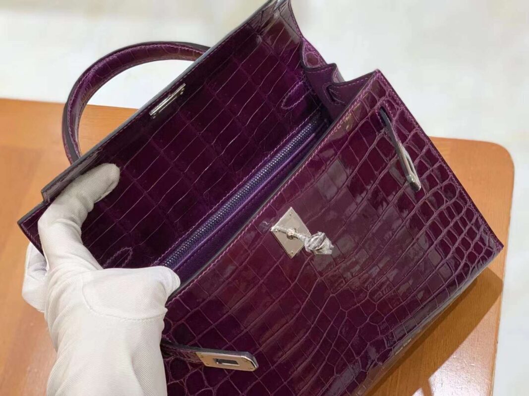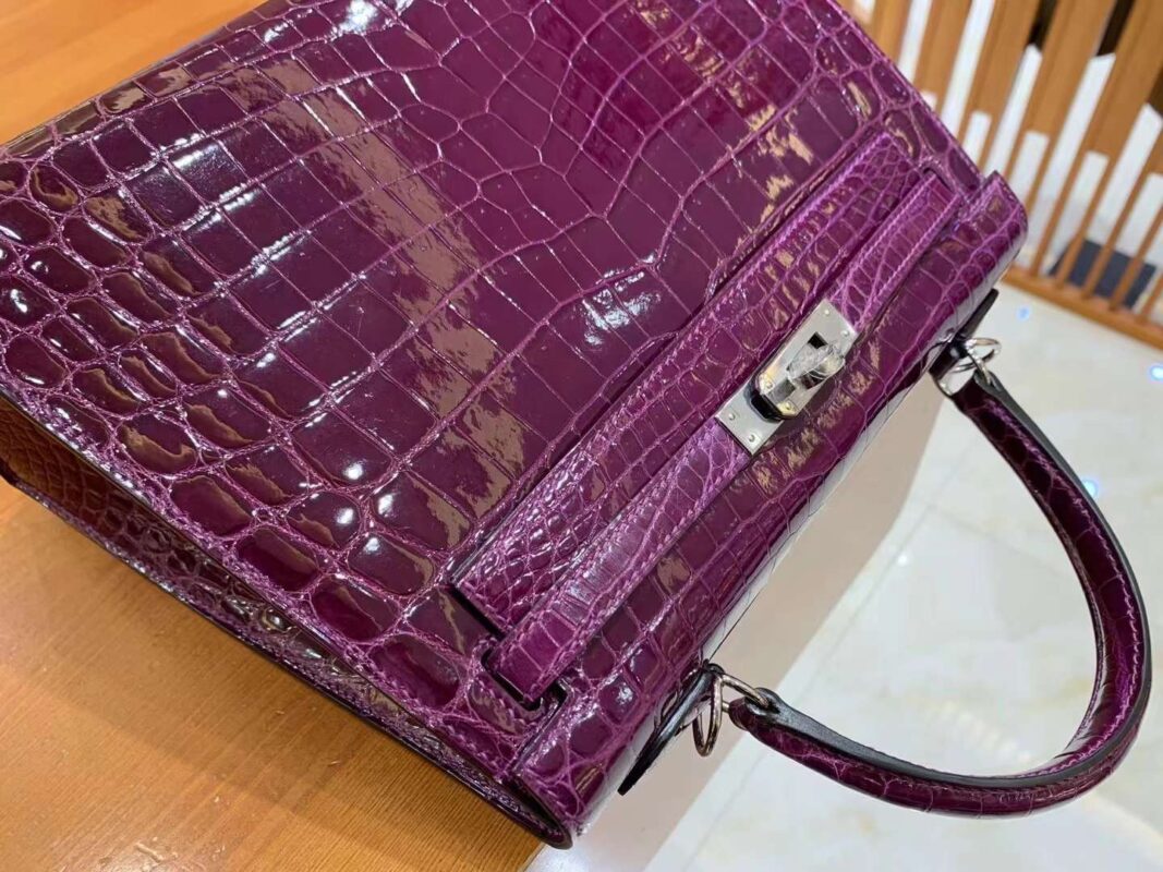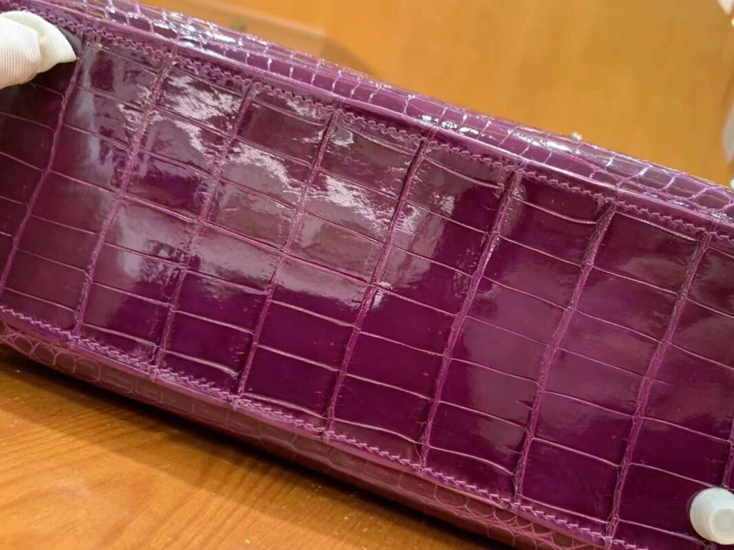 Kelly 25cm Crystal Purple Imported first-class Nile crocodile. French beeswax thread. 100% hand-sewn