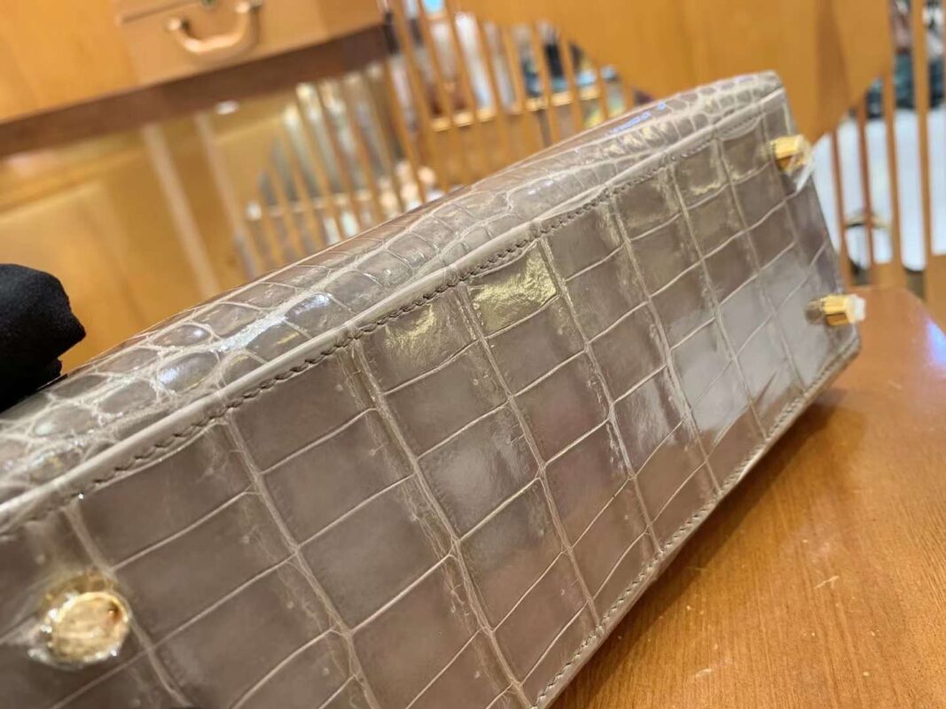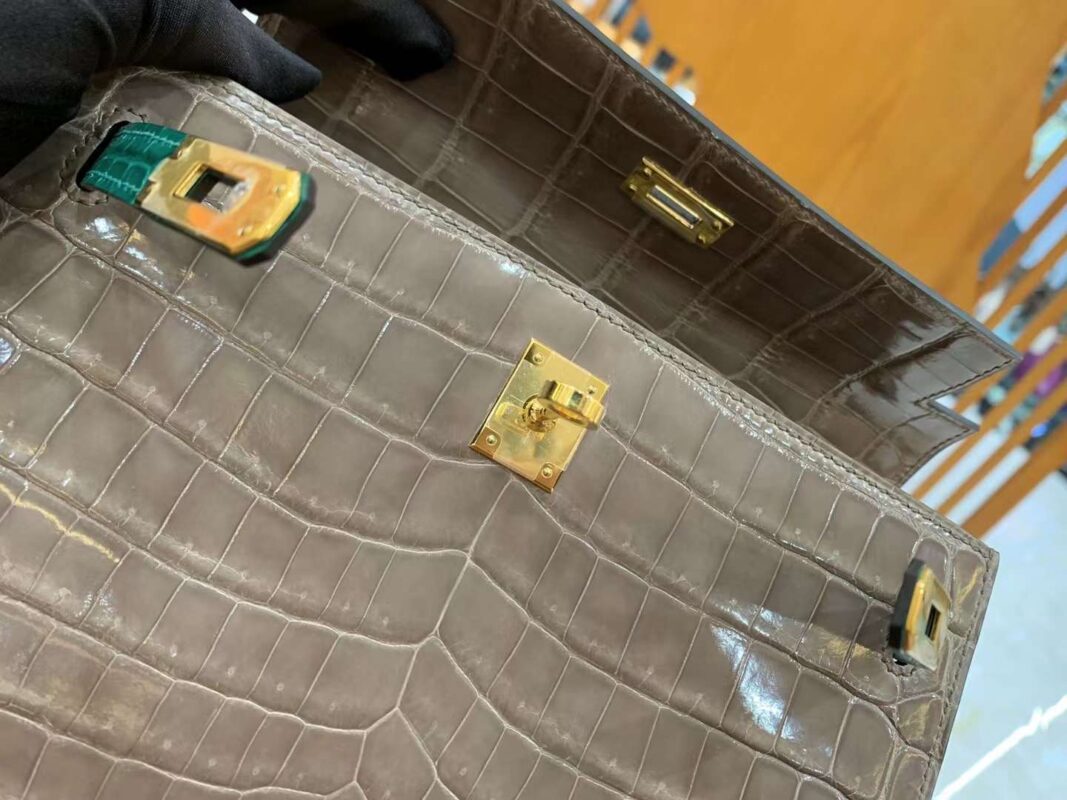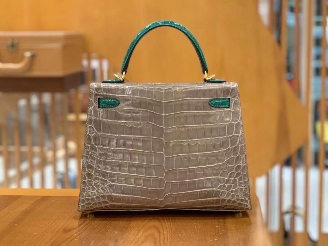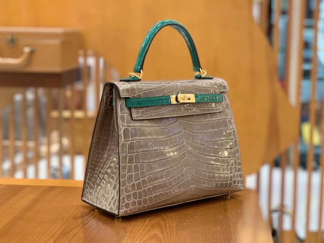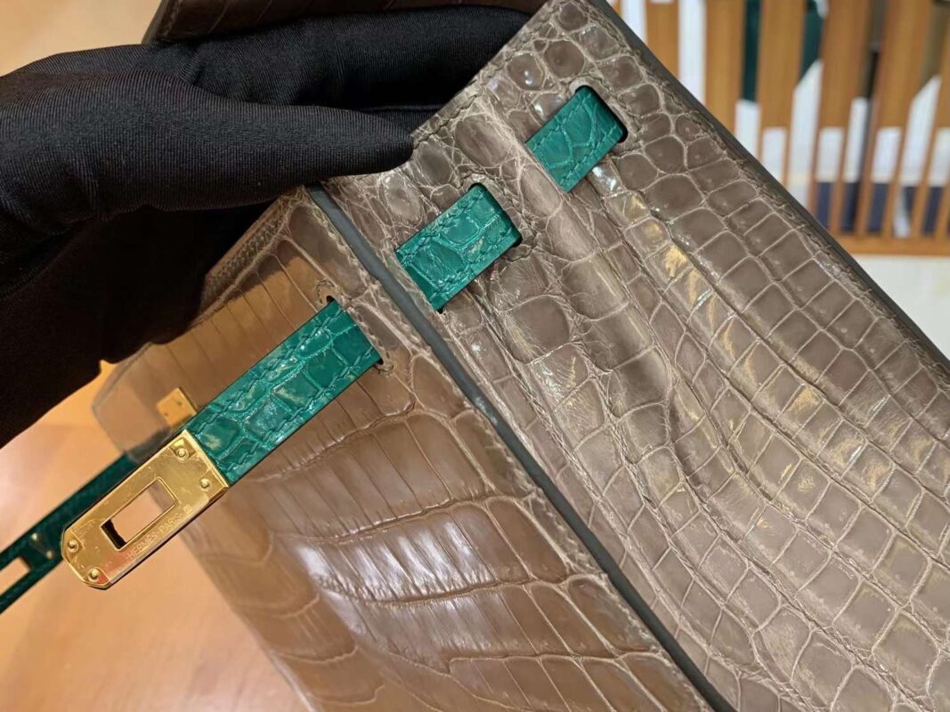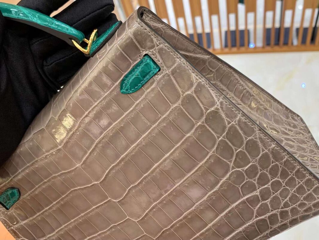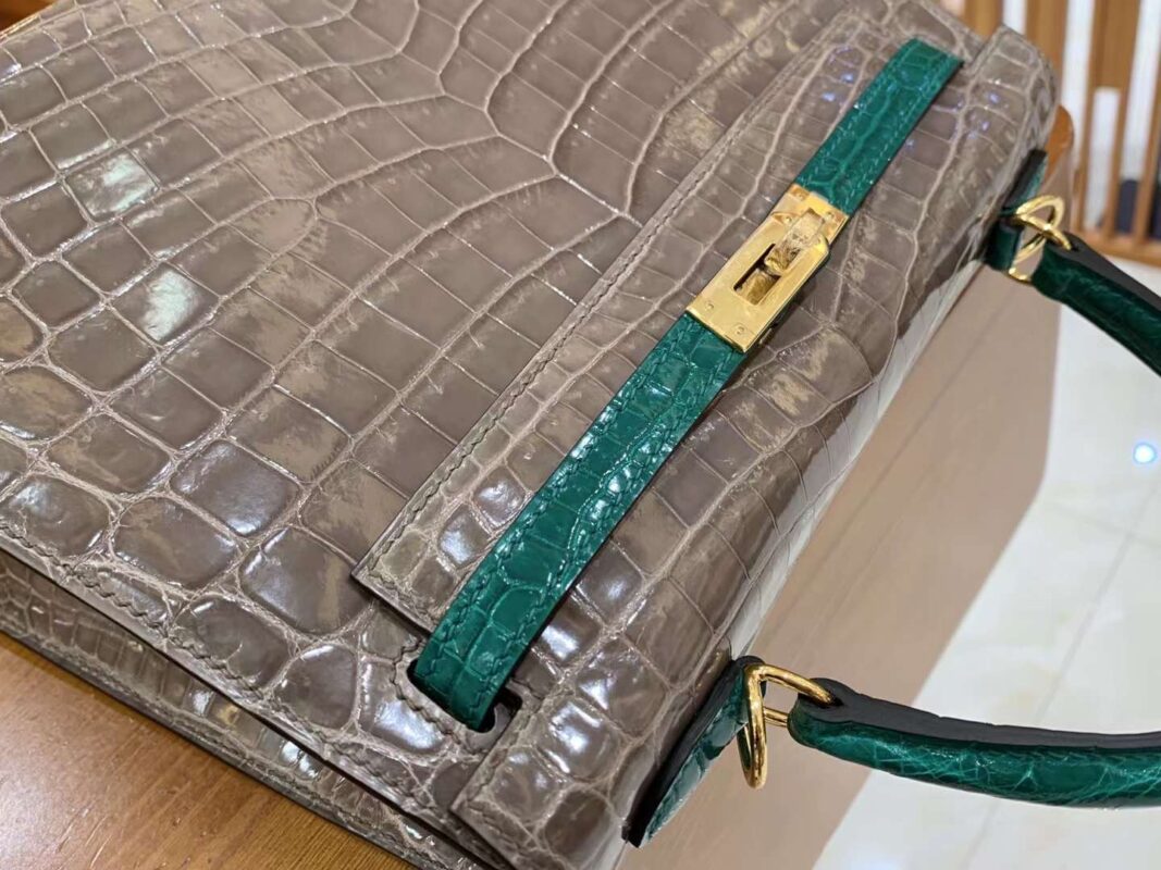 Kelly 25 Crocodile Niloticus Shiny Etoupe&Emerald