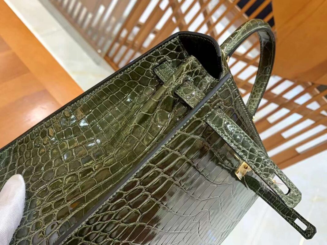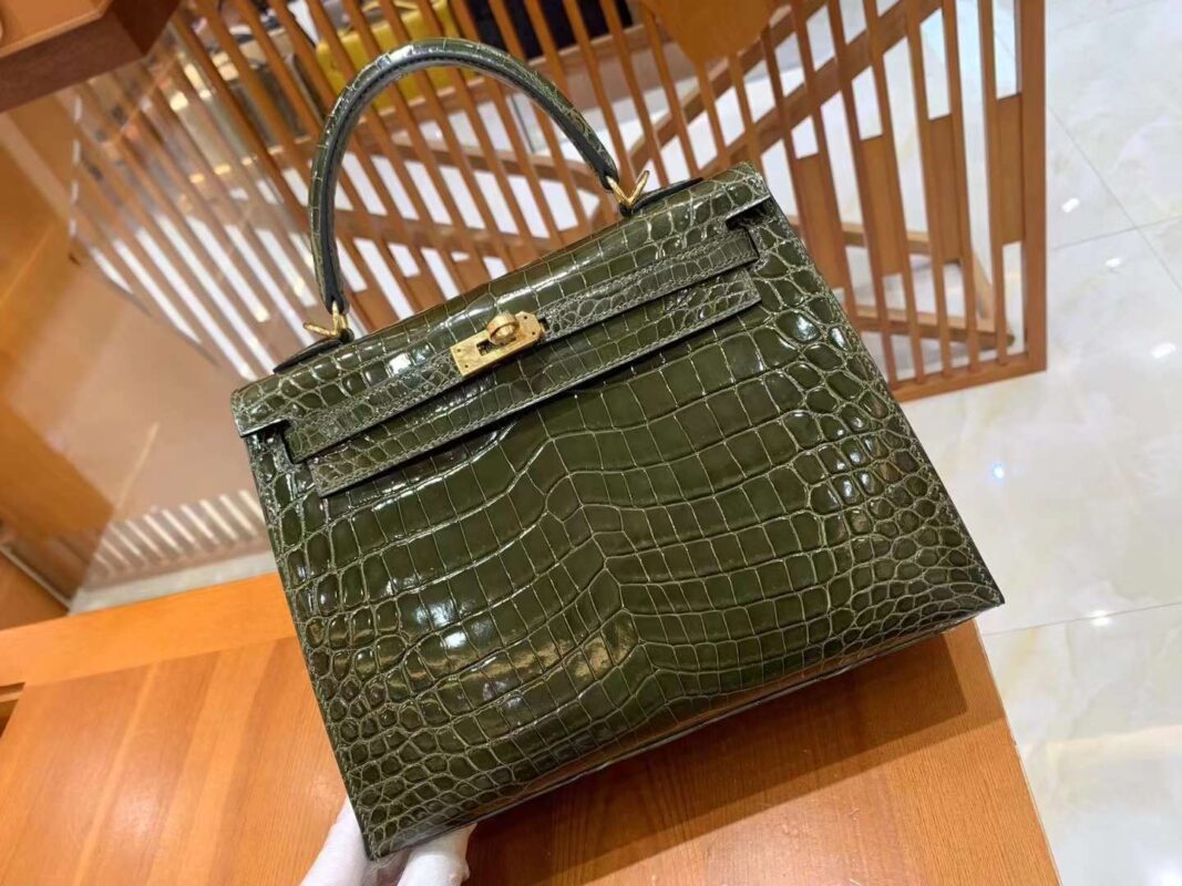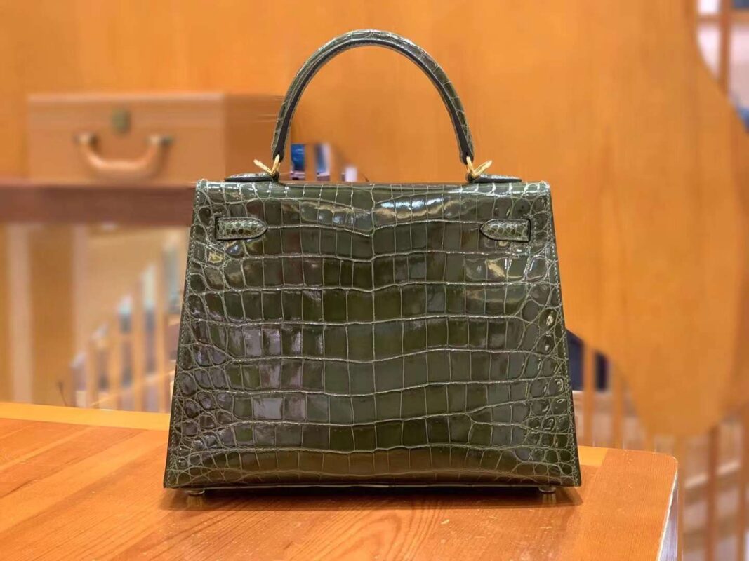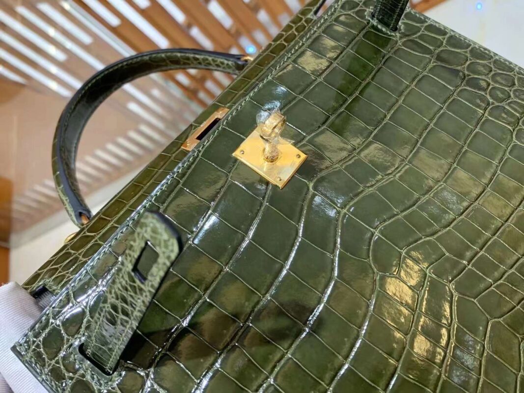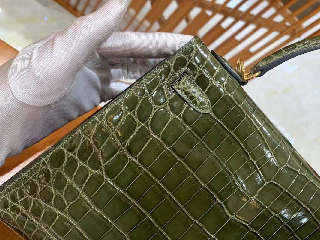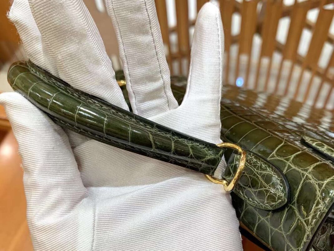 Kelly 25cm Olive Green Imported first-class Nile crocodile. French beeswax thread. 100% hand-sewn