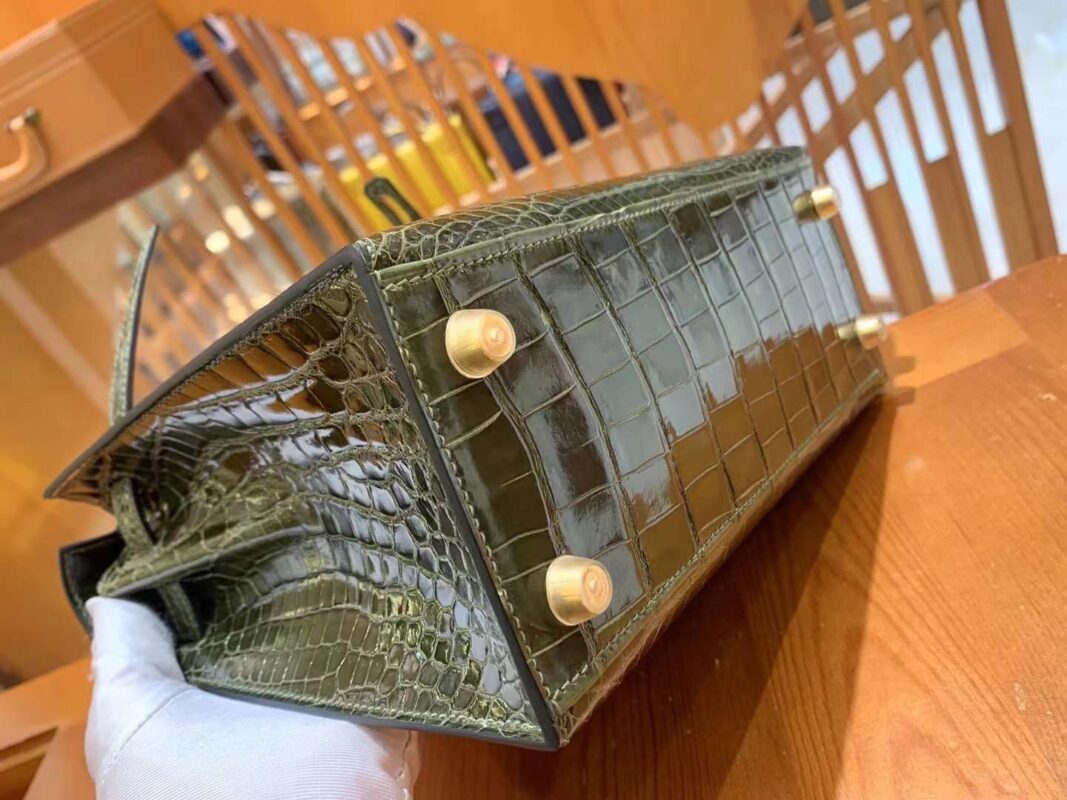 Kelly 25 Crocodile Niloticus Shiny Olive Green