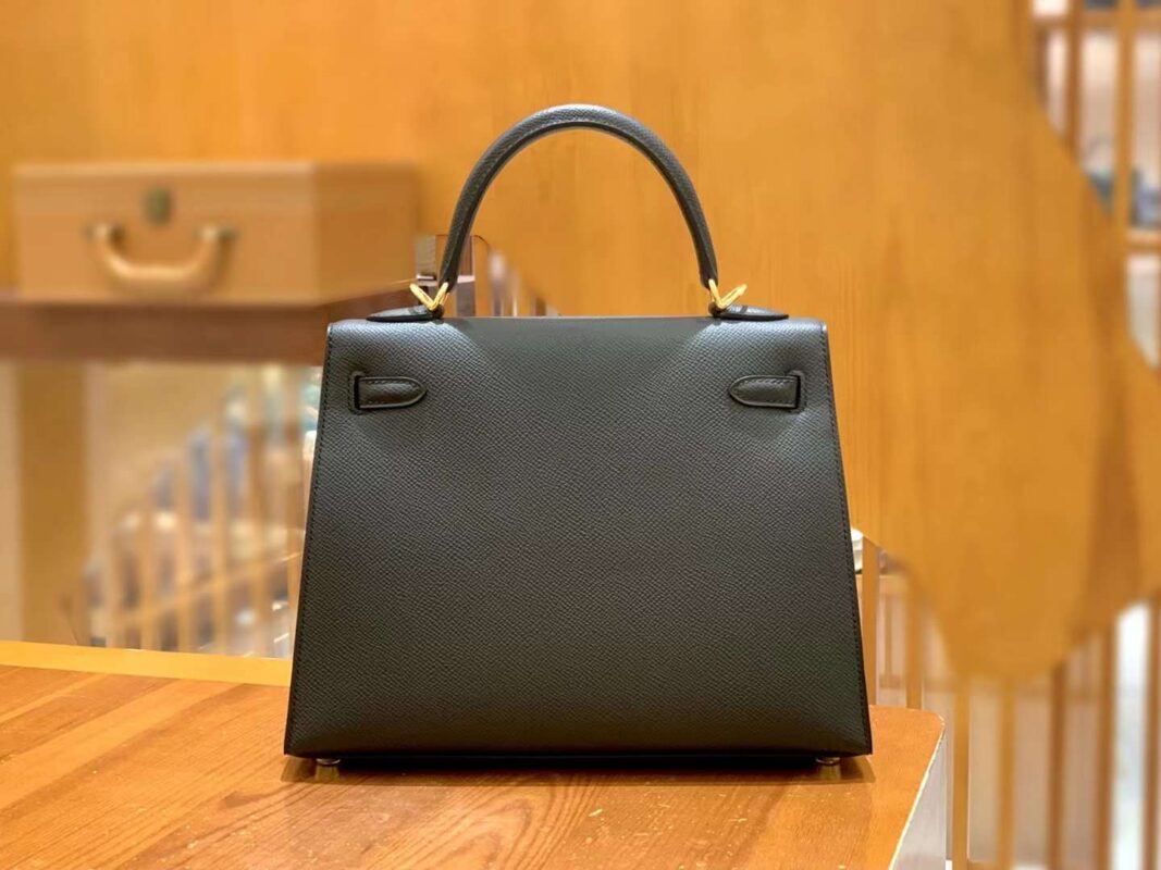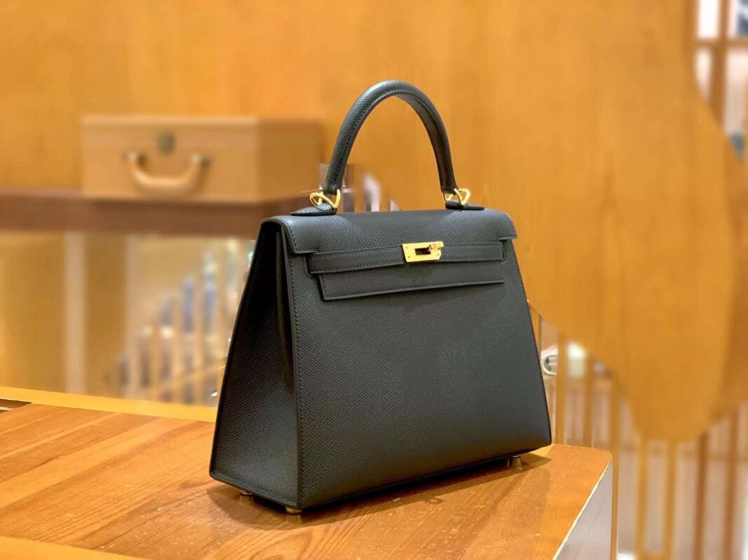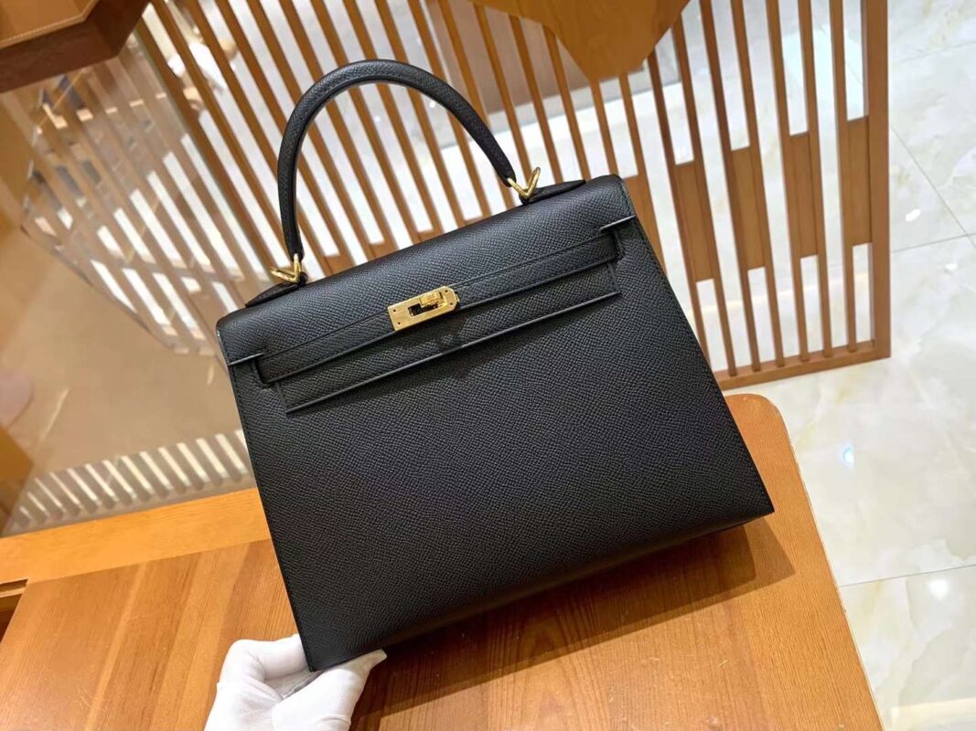 Kelly 25cm Black. Gold buckle Imported Epsom cowhide. French original beeswax thread. Fully hand-sewn