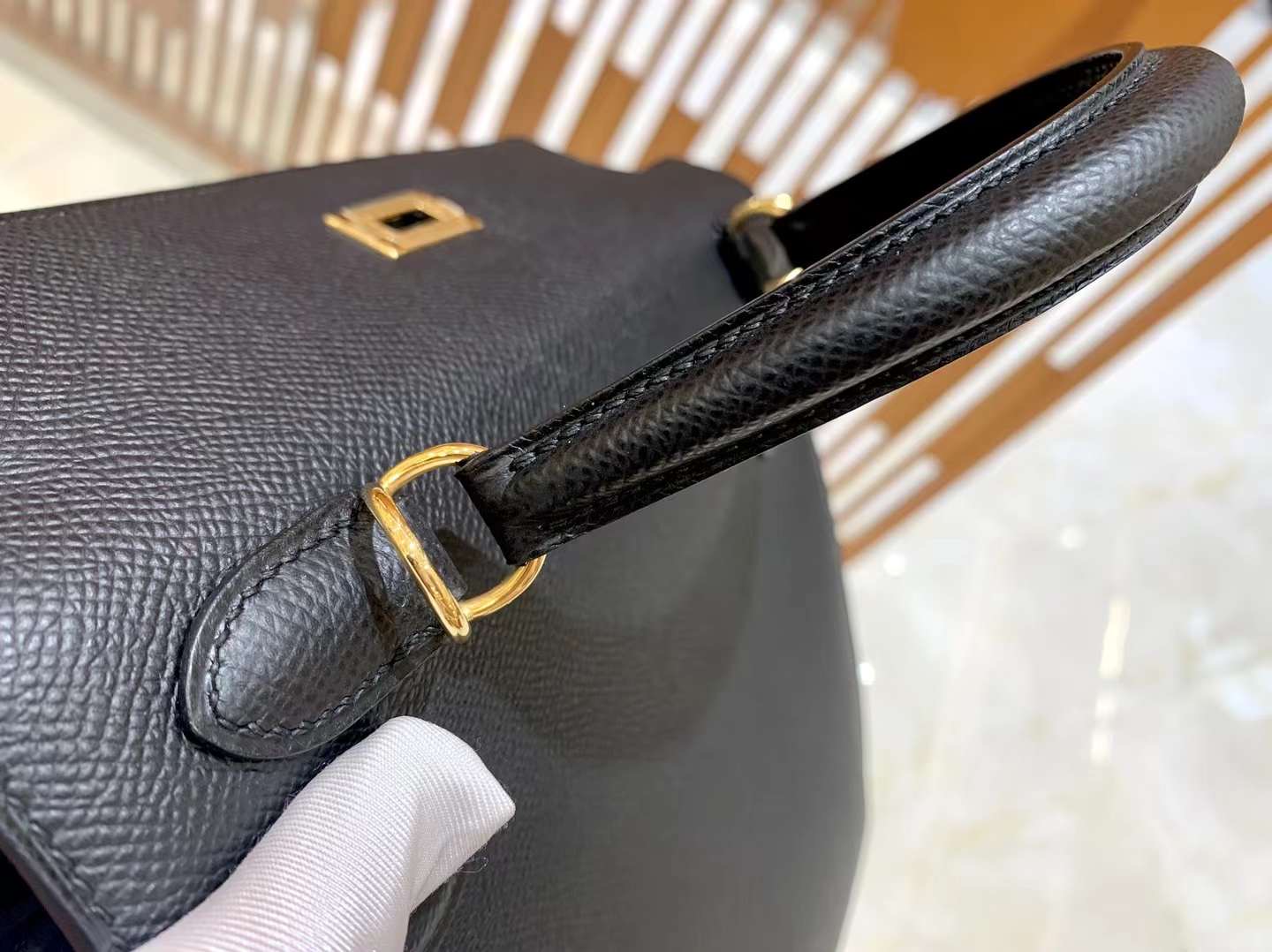 Kelly 25cm Black. Gold buckle Imported Epsom cowhide. French original beeswax thread. Fully hand-sewn