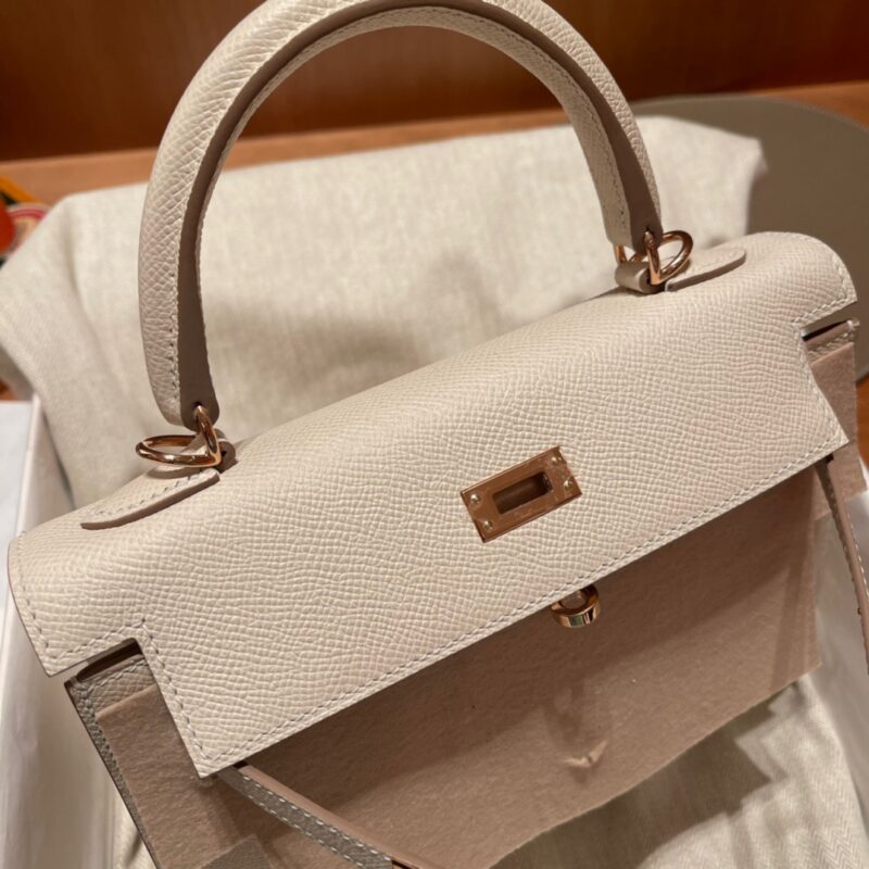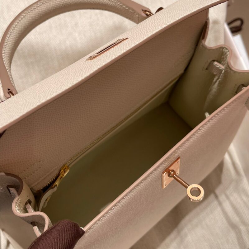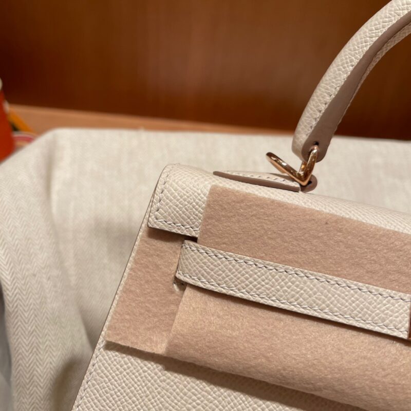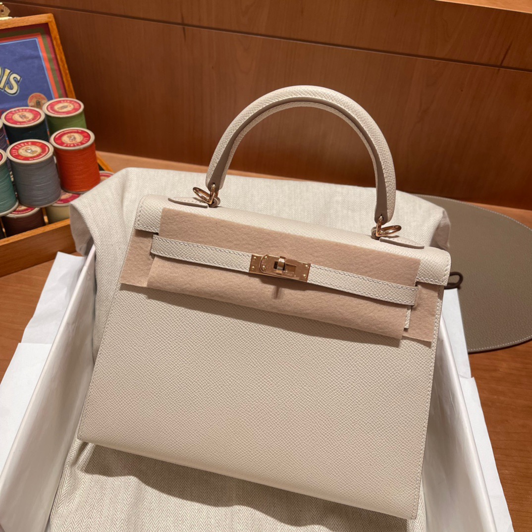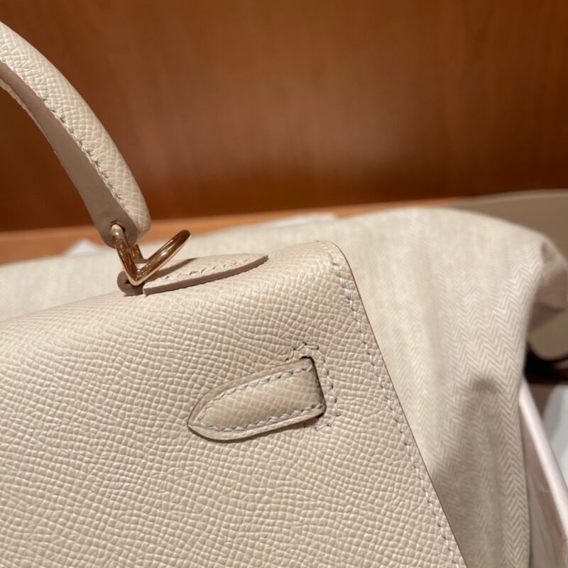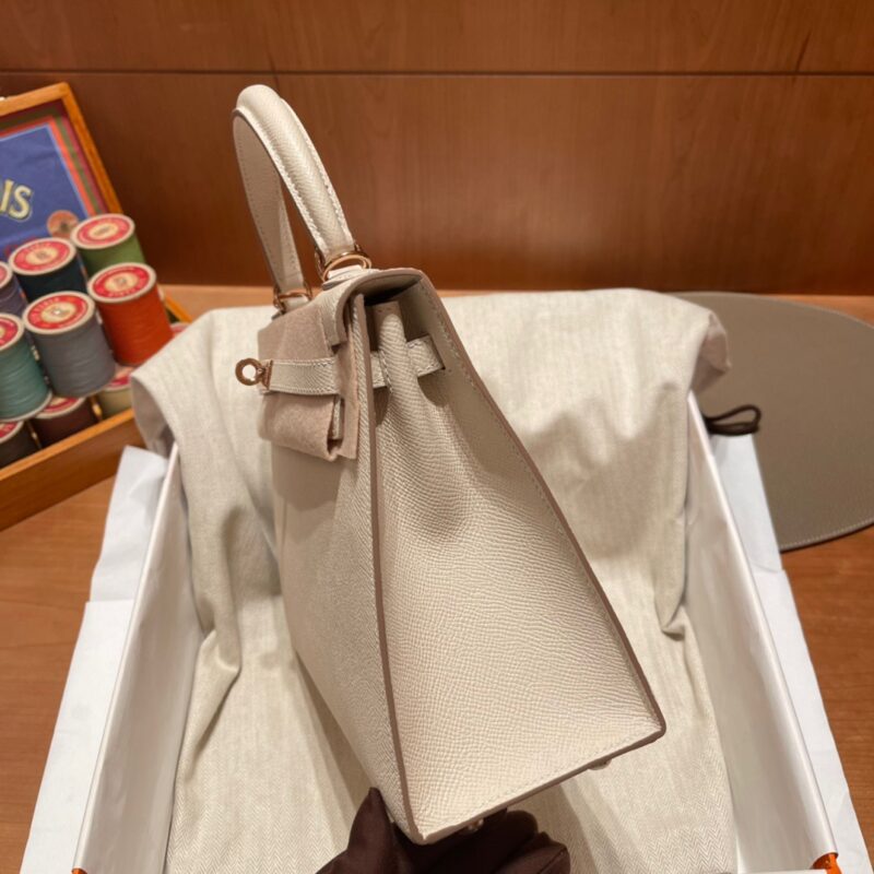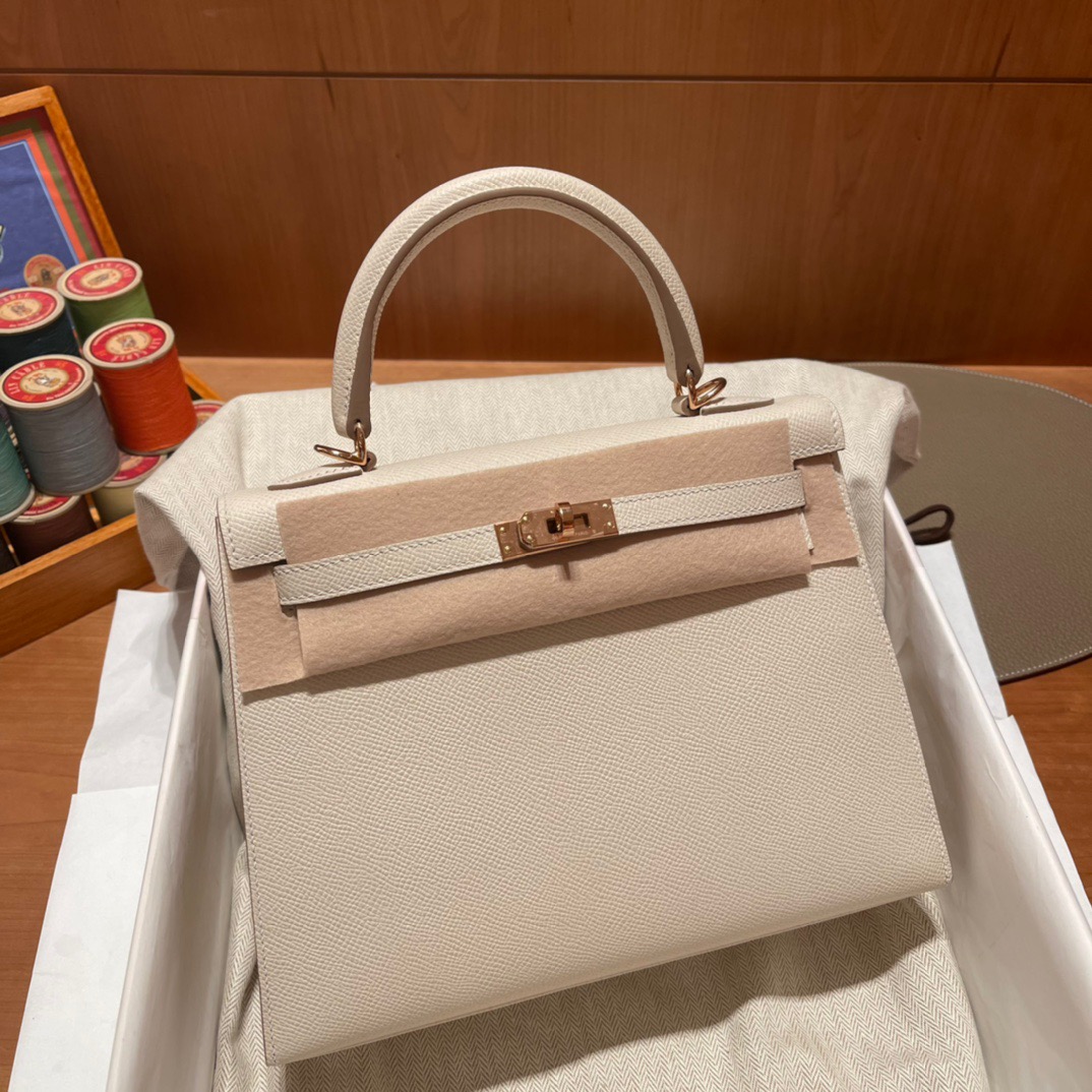 Kelly 25cm Epsom Leather 10 Milkshake White (Carie). Gold Buckle The must-have white color is more resistant to dirt than other whites.