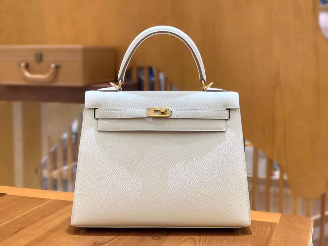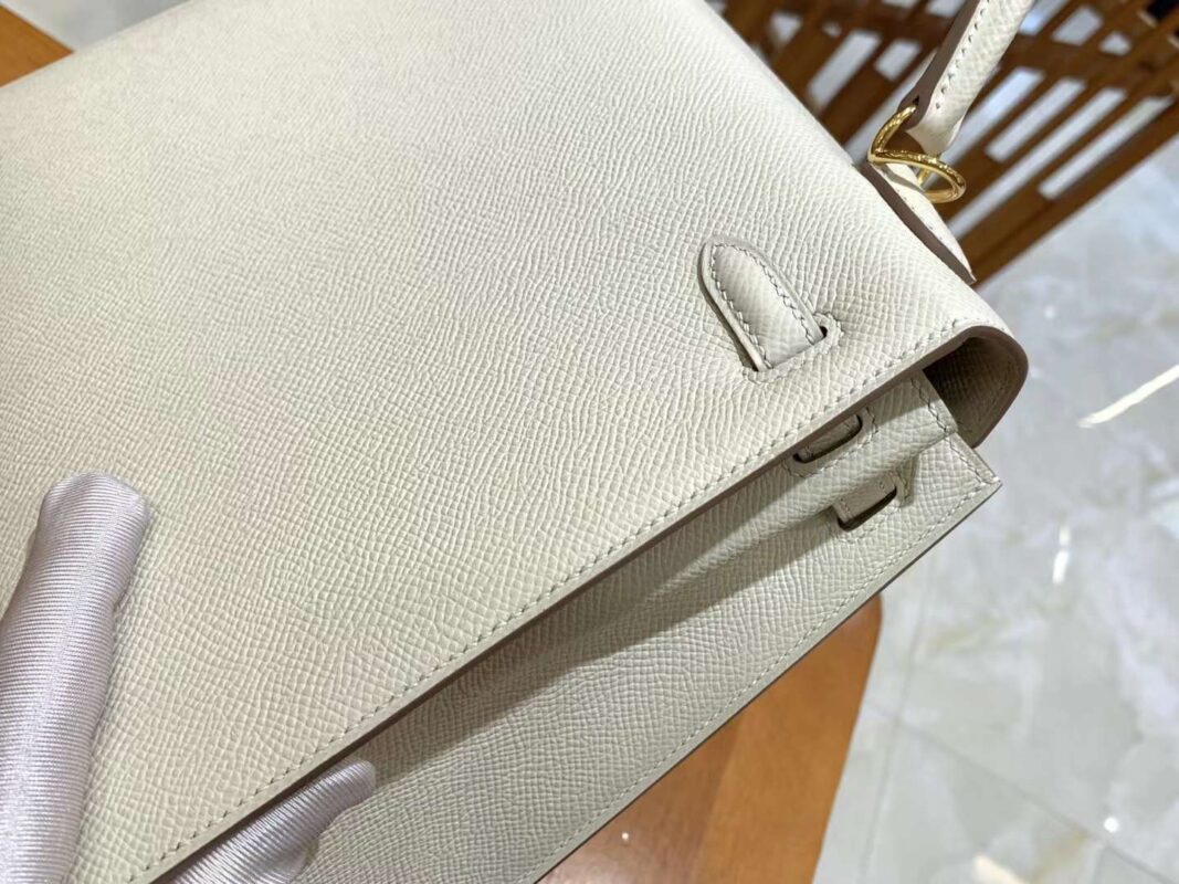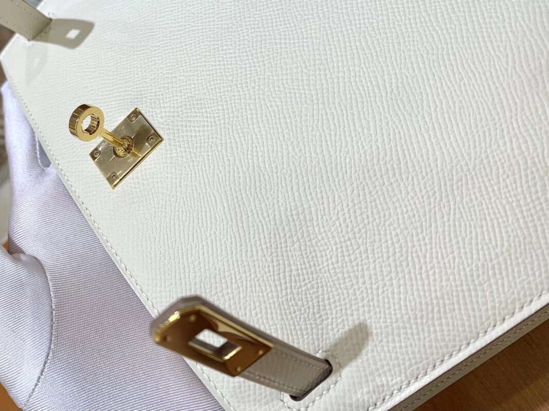 KL25cm Craie. Platinum Buckle Imported Epsom cowhide. French original beeswax thread. Fully hand-sewn