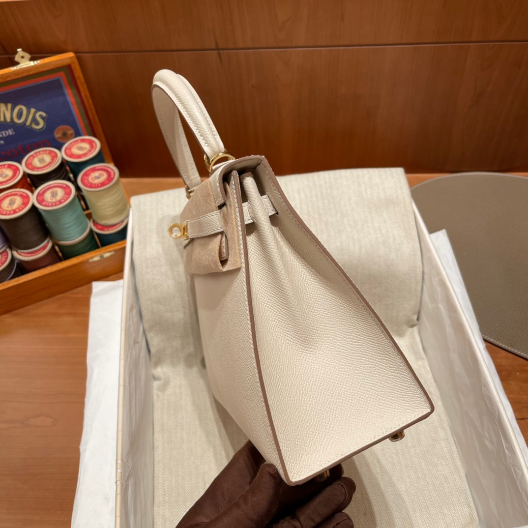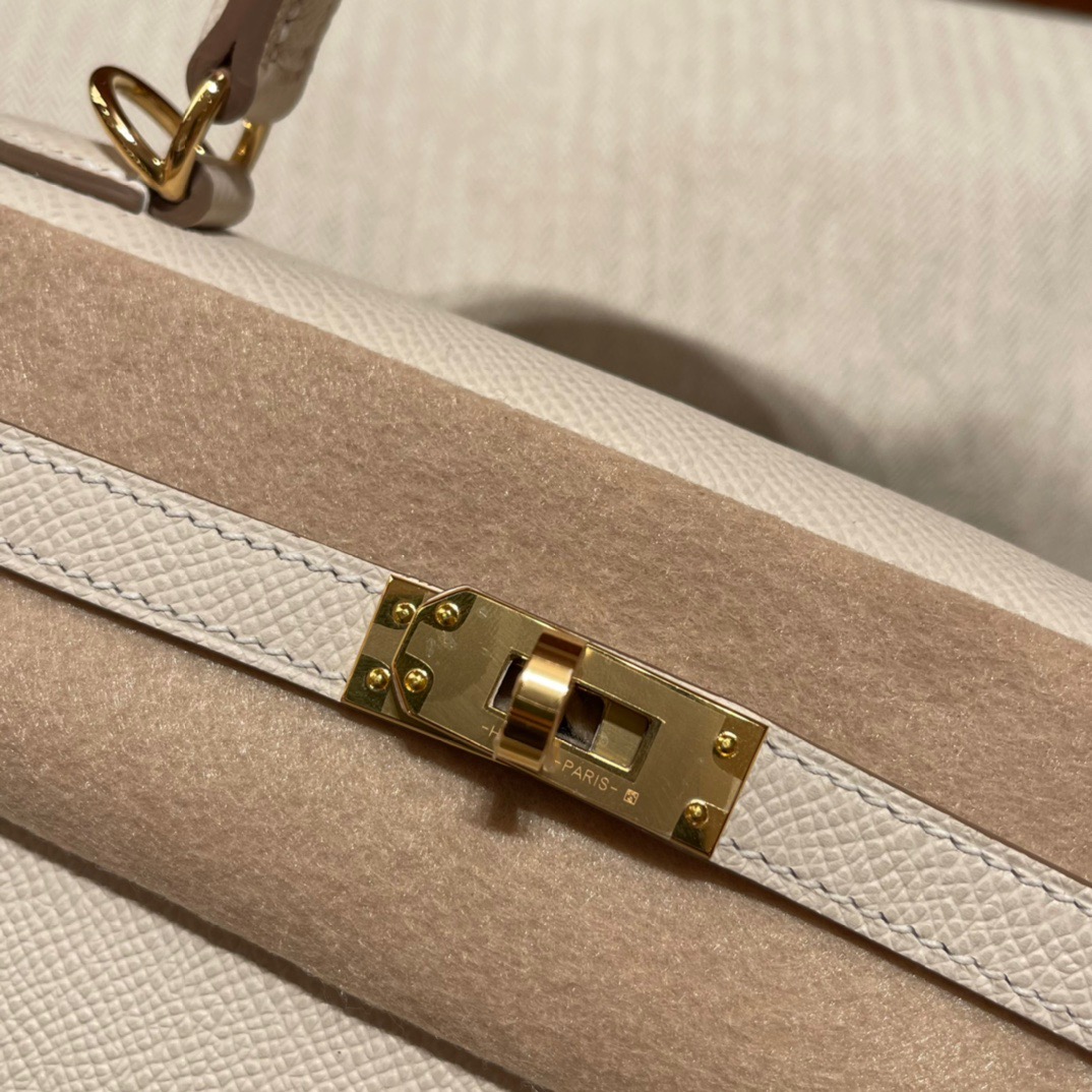 Kelly 25 Gold Size Epsom Leather craie. Gold Buckle