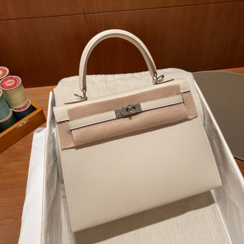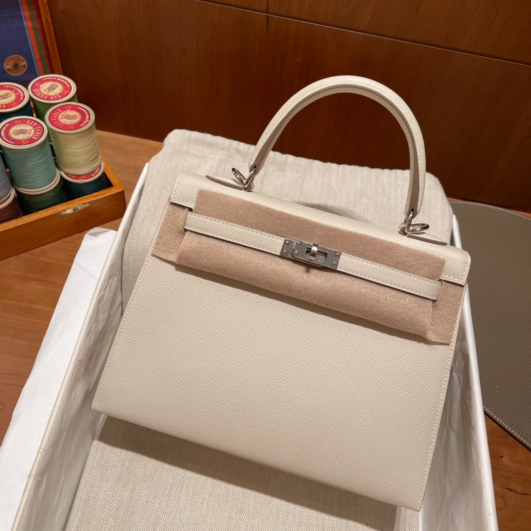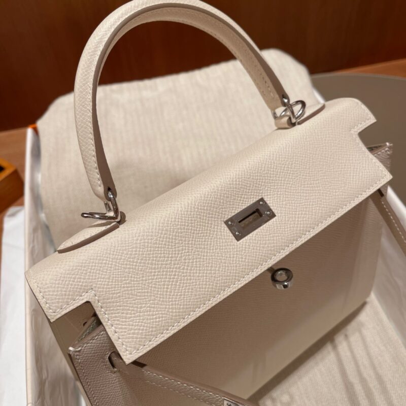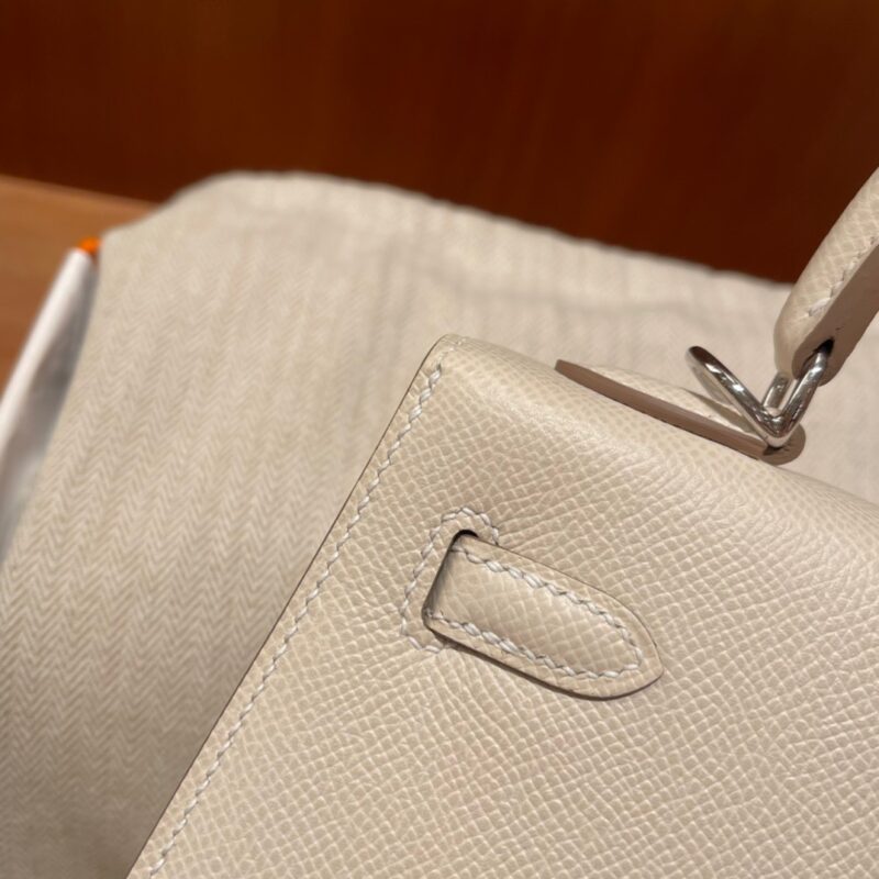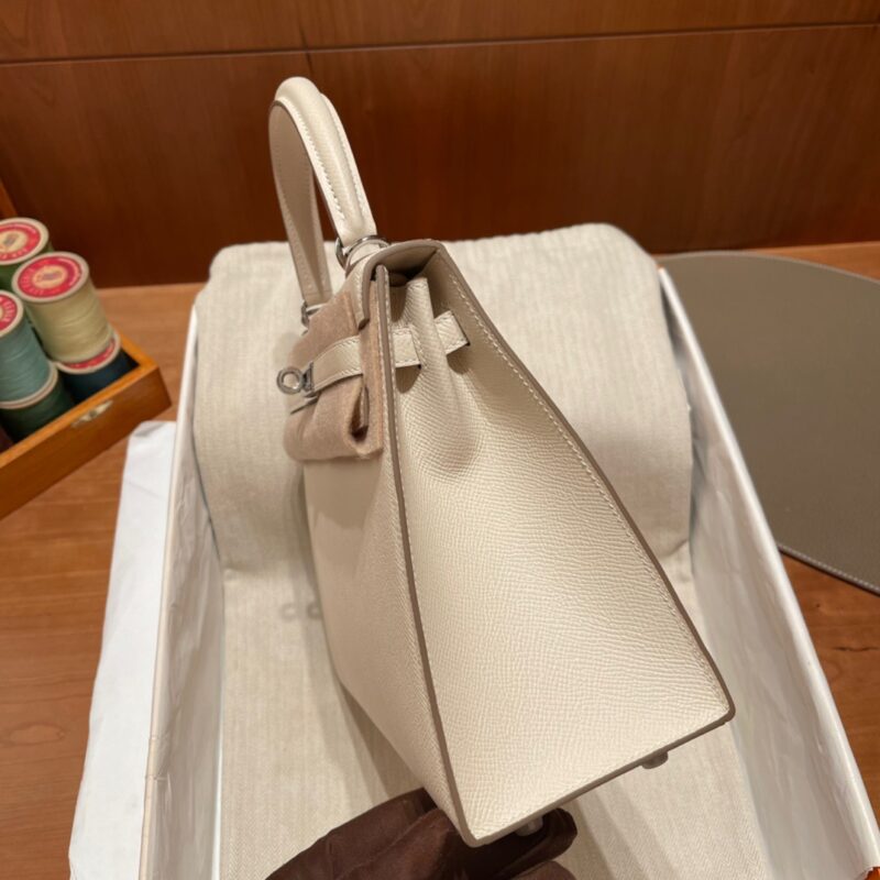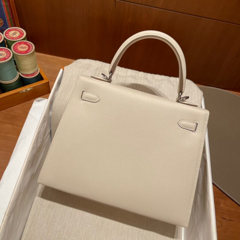 Kelly 25cm Epsom 10 Craie. Silver Buckle