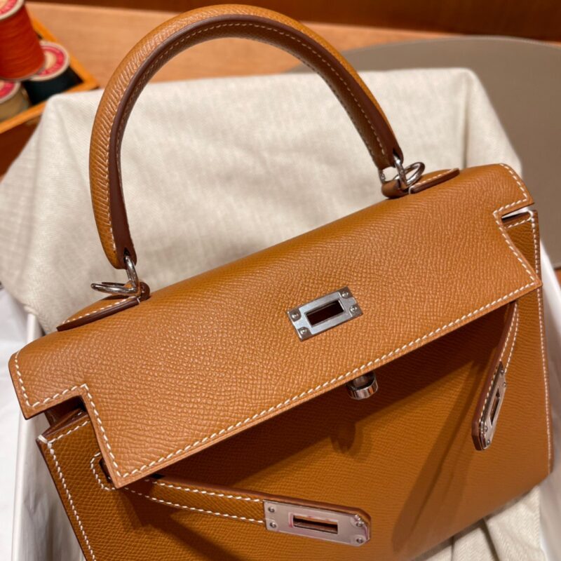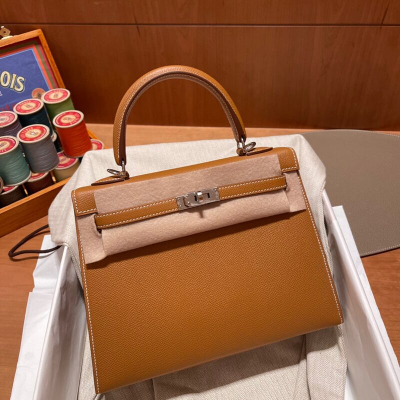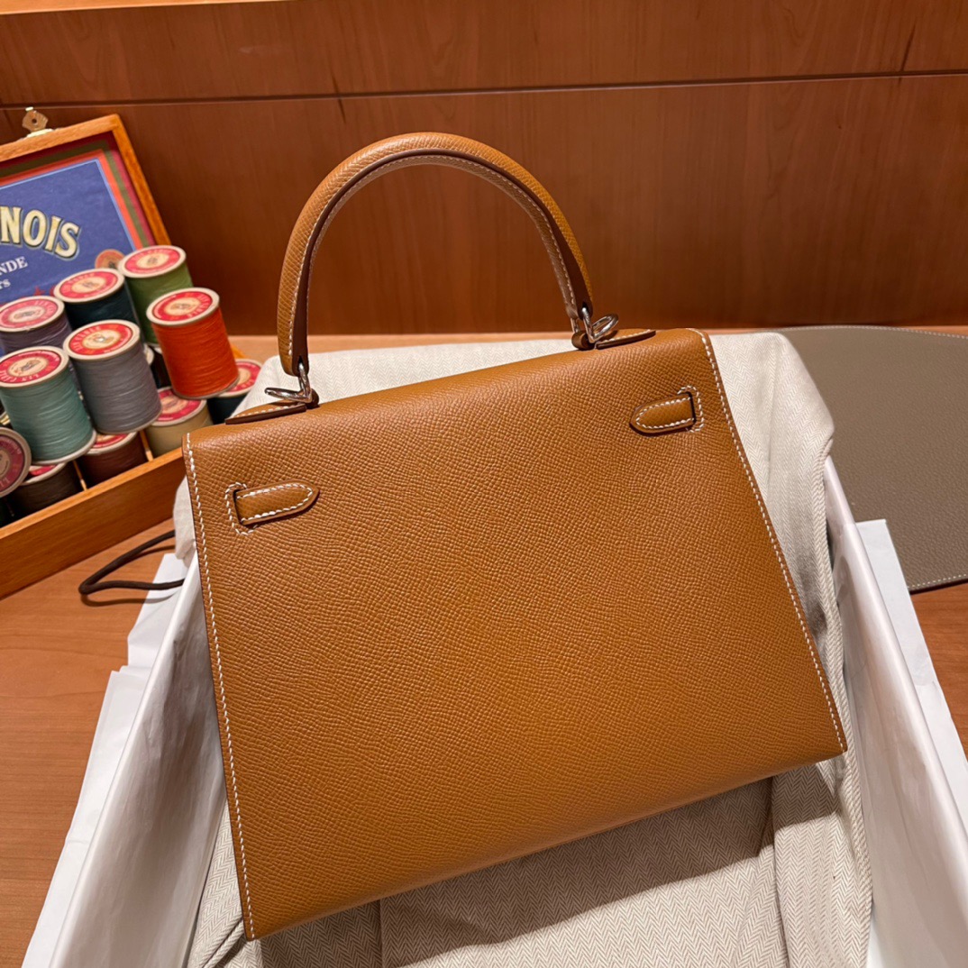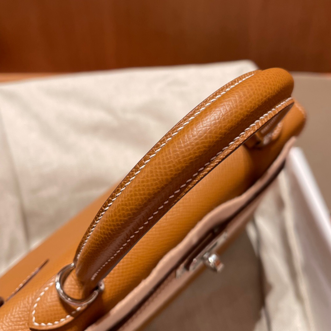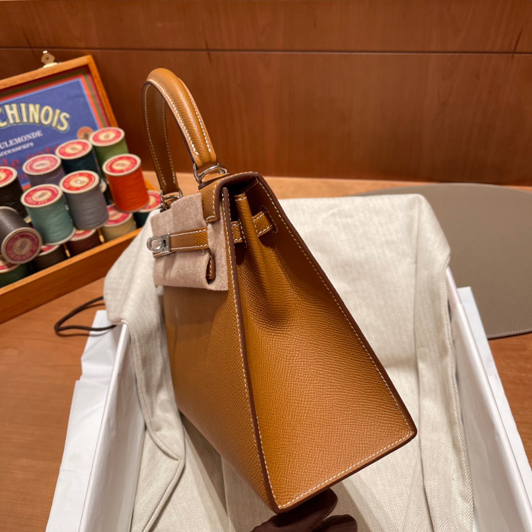 Kelly 25cm Epsom 37 Gold Brown. Silver Buckle