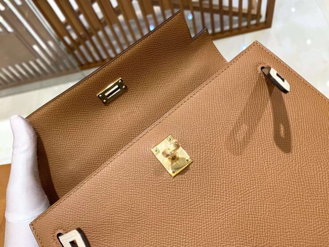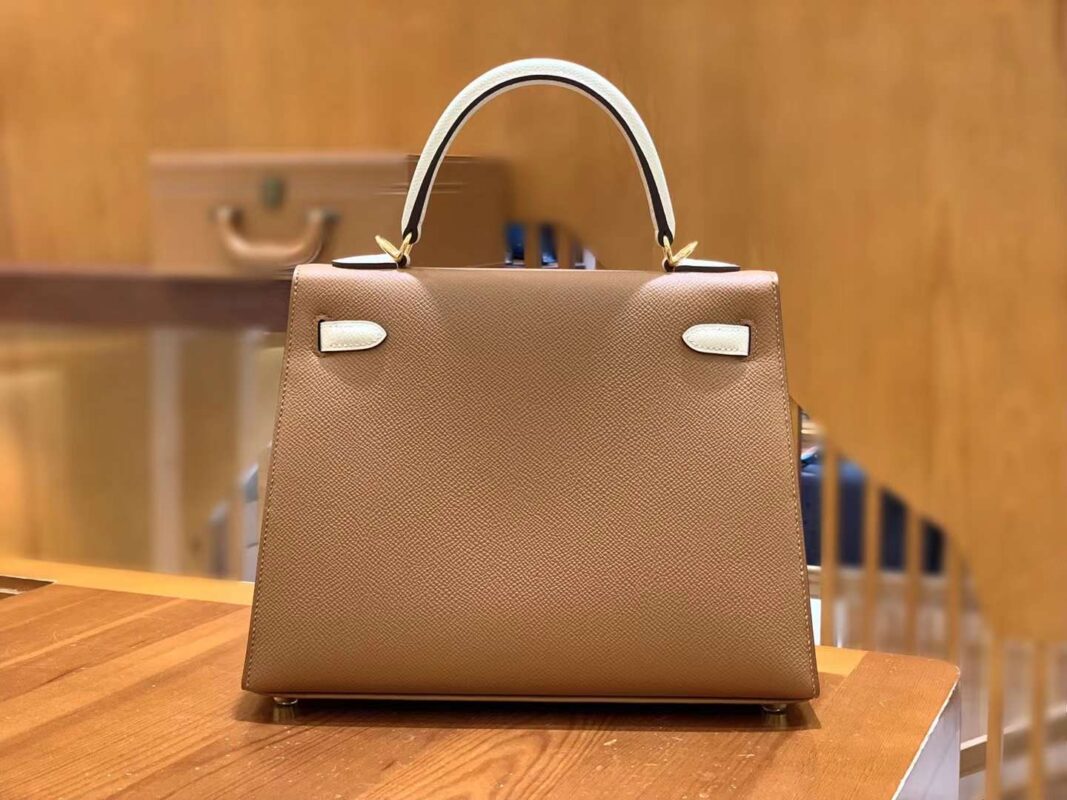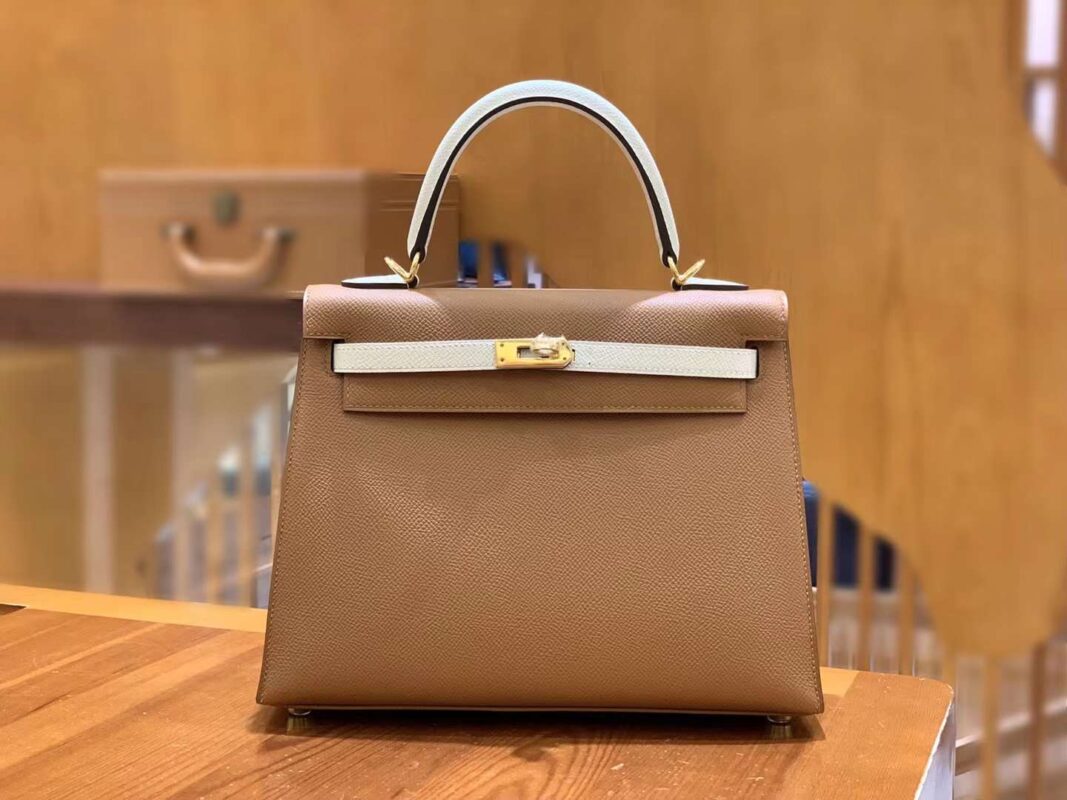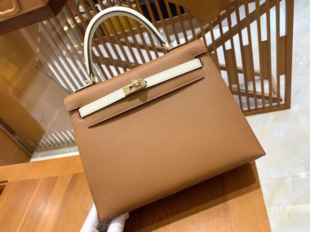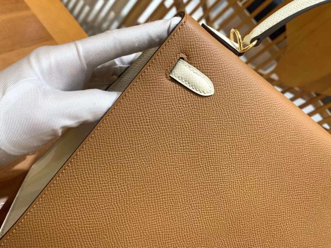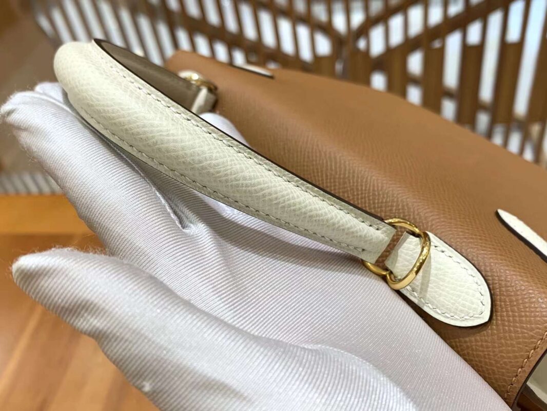 KL25cm Golden Brown with Craie. Gold buckle imported Epsom cowhide. French original beeswax thread. Fully hand-sewn