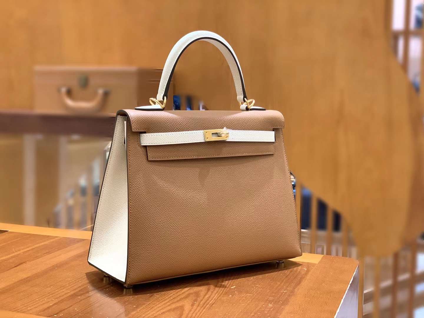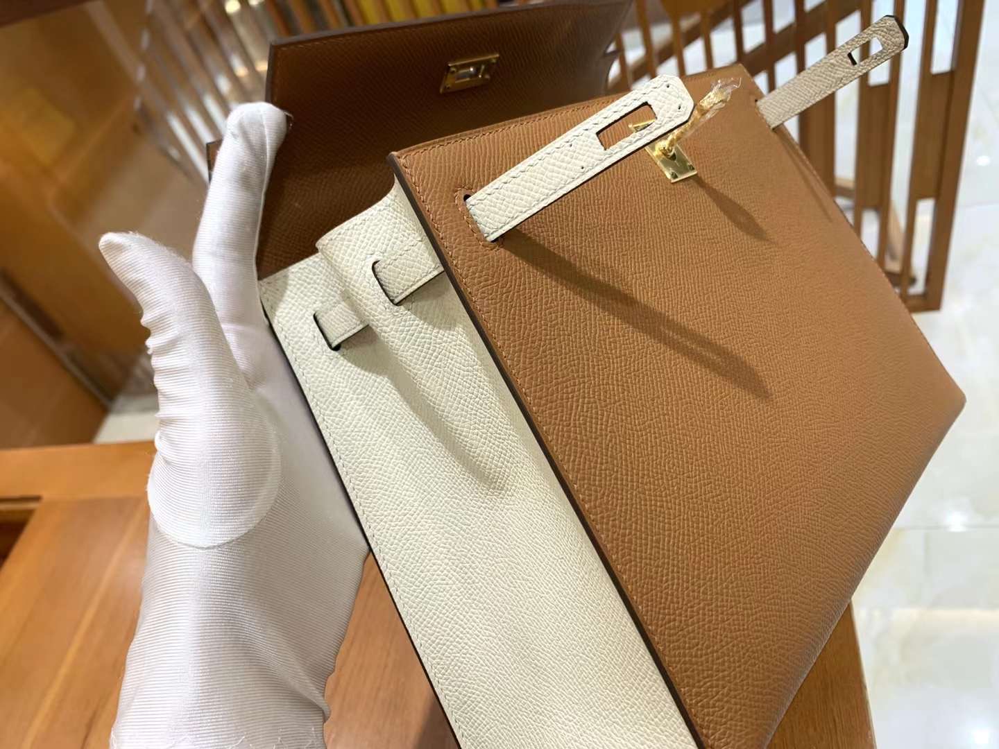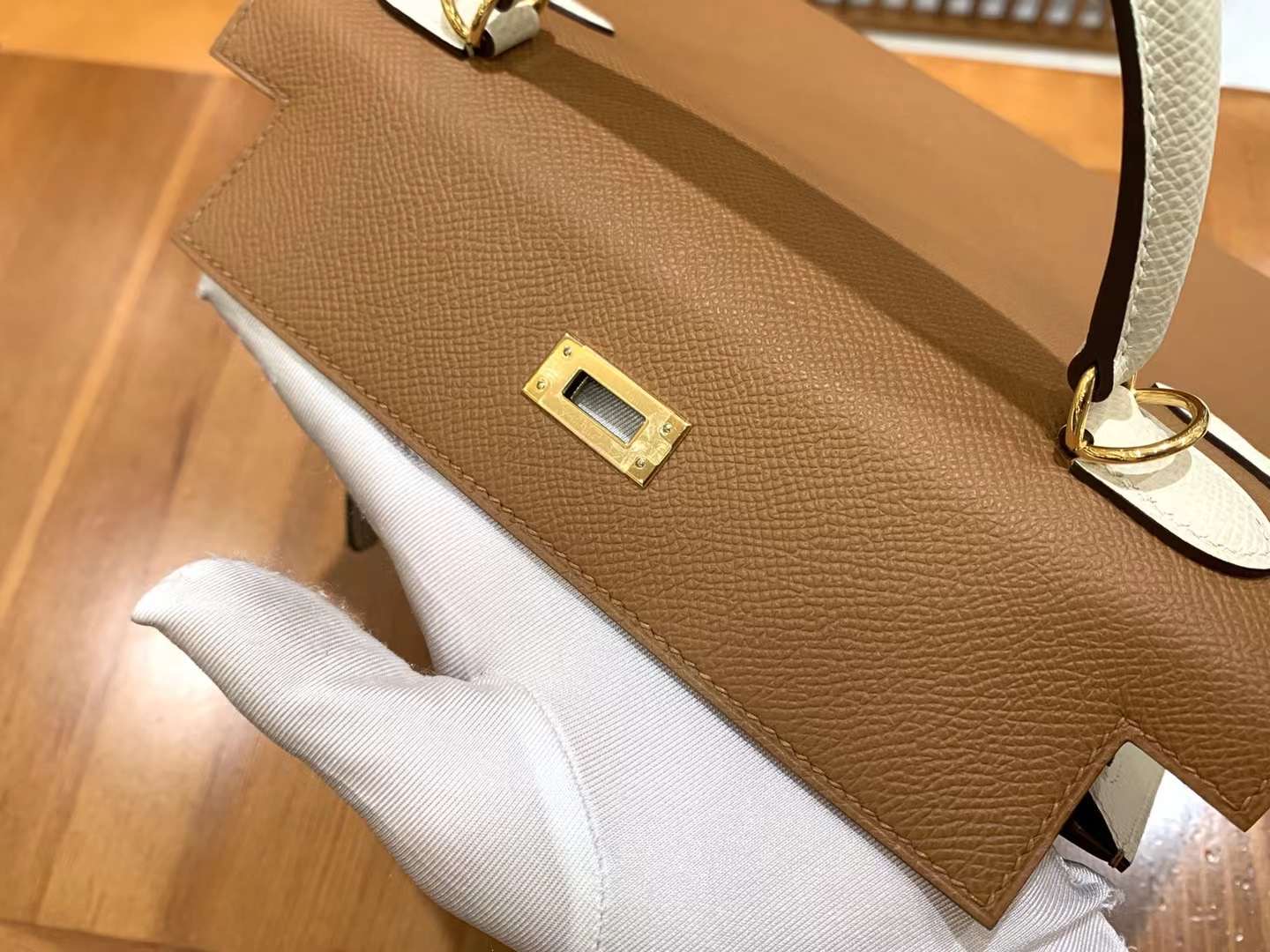 KL25cm Golden Brown with Craie. Gold buckle imported Epsom cowhide. French original beeswax thread. Fully hand-sewn