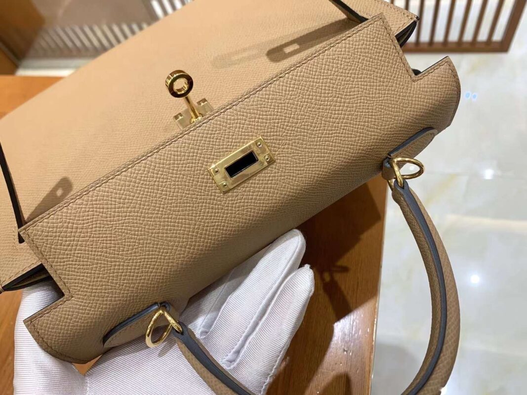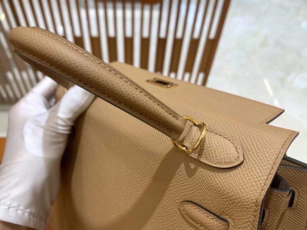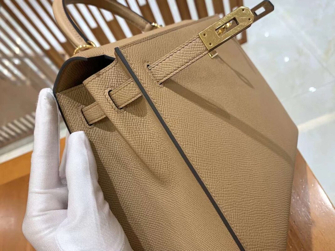 KL25cm Milk Tea color. Gold Buckle. Imported first-class Epsom cowhide. Imported raw materials. Fully hand-sewn