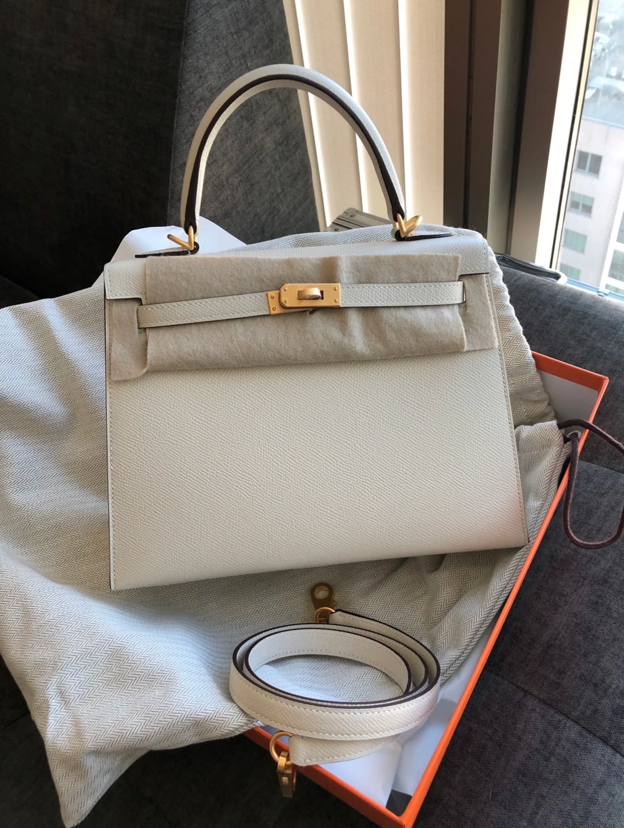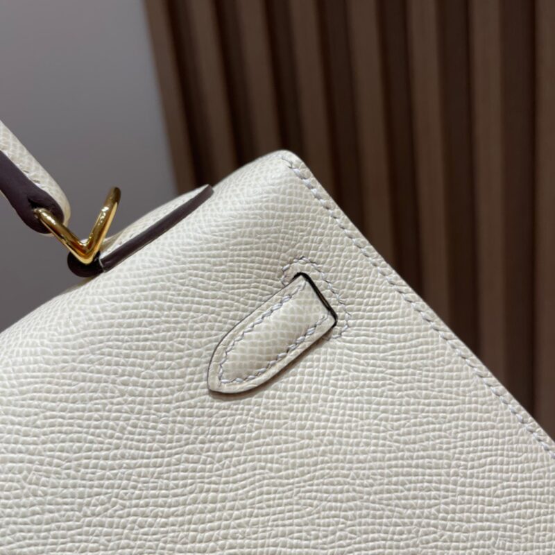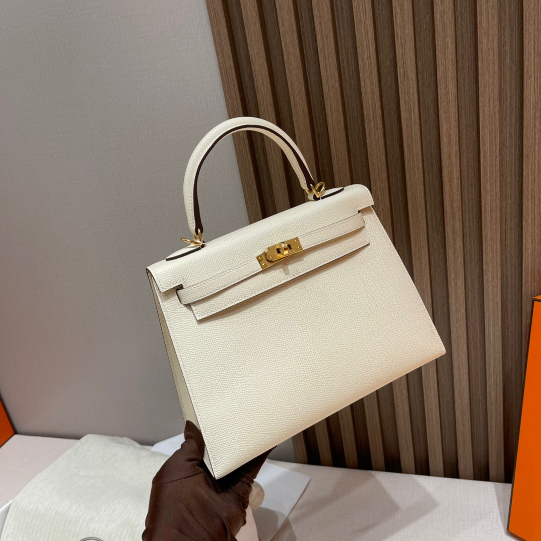 Kelly 25cm Epsom Leather. i2 Cream White. Gold Buckle