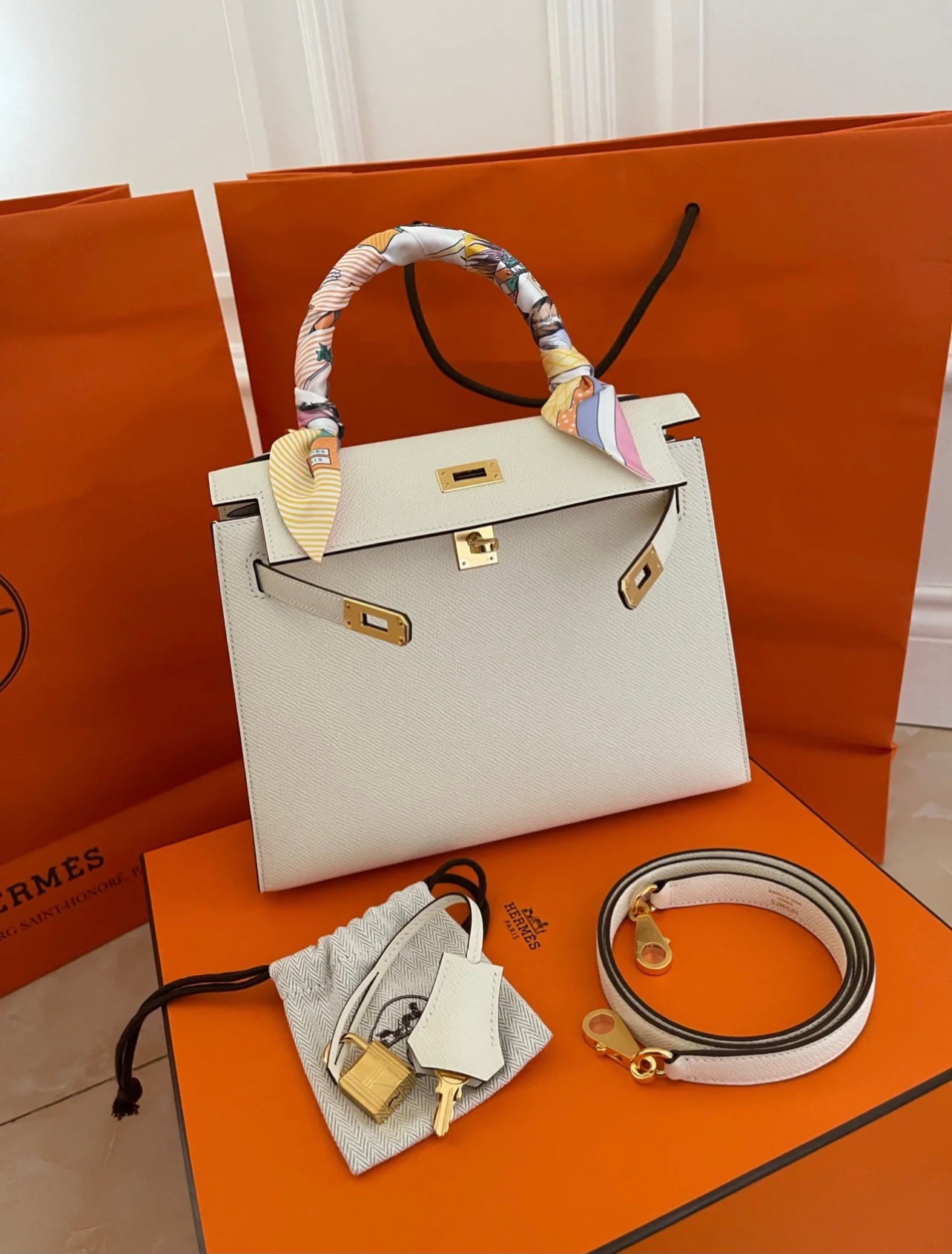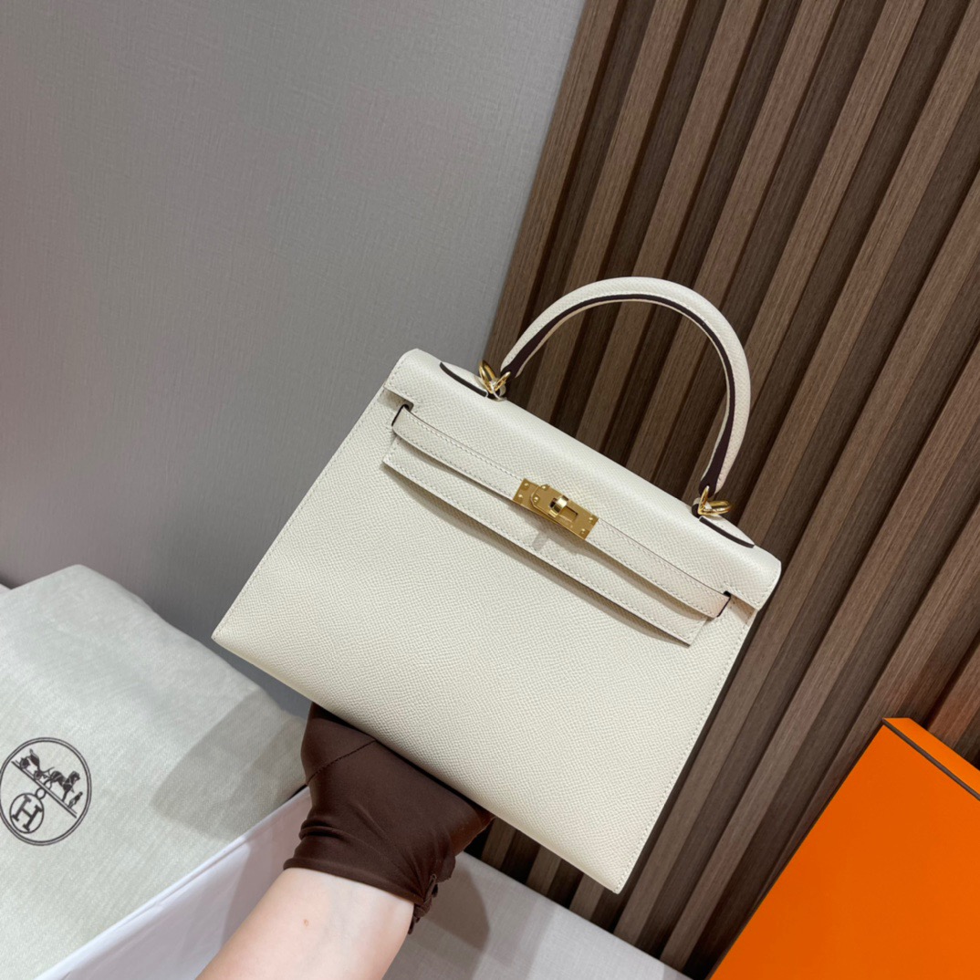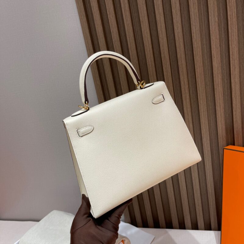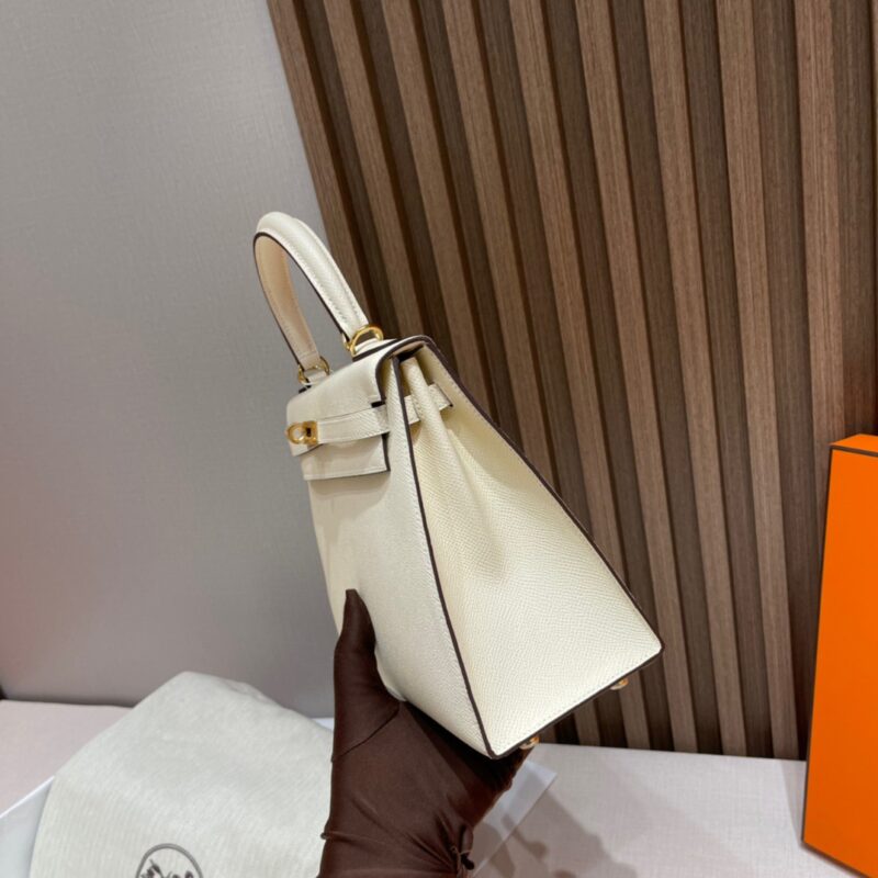 Kelly 25cm Epsom Leather. i2 Cream White. Gold Buckle