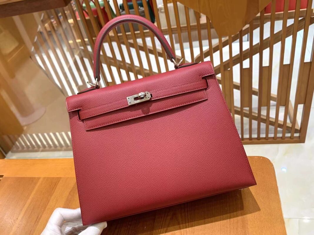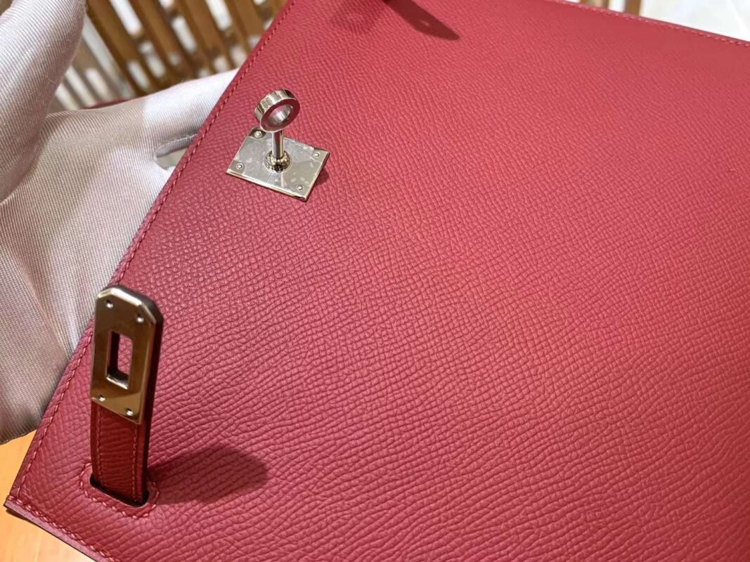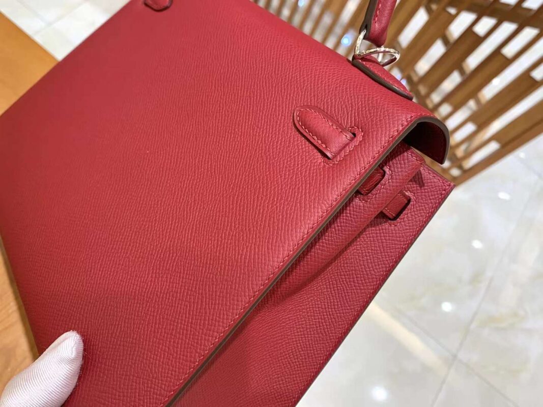 KL25cm Red. Gold Buckle Imported Epsom cowhide. French original beeswax thread. Fully hand-sewn