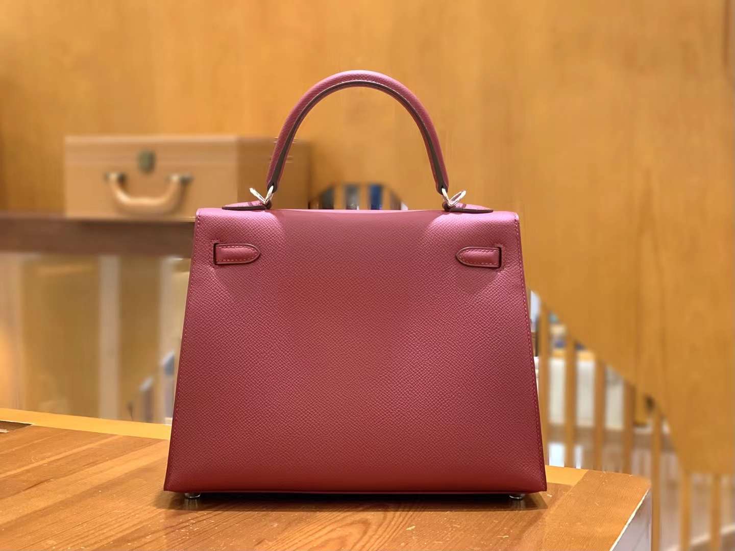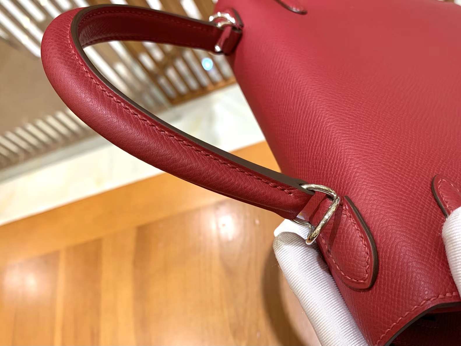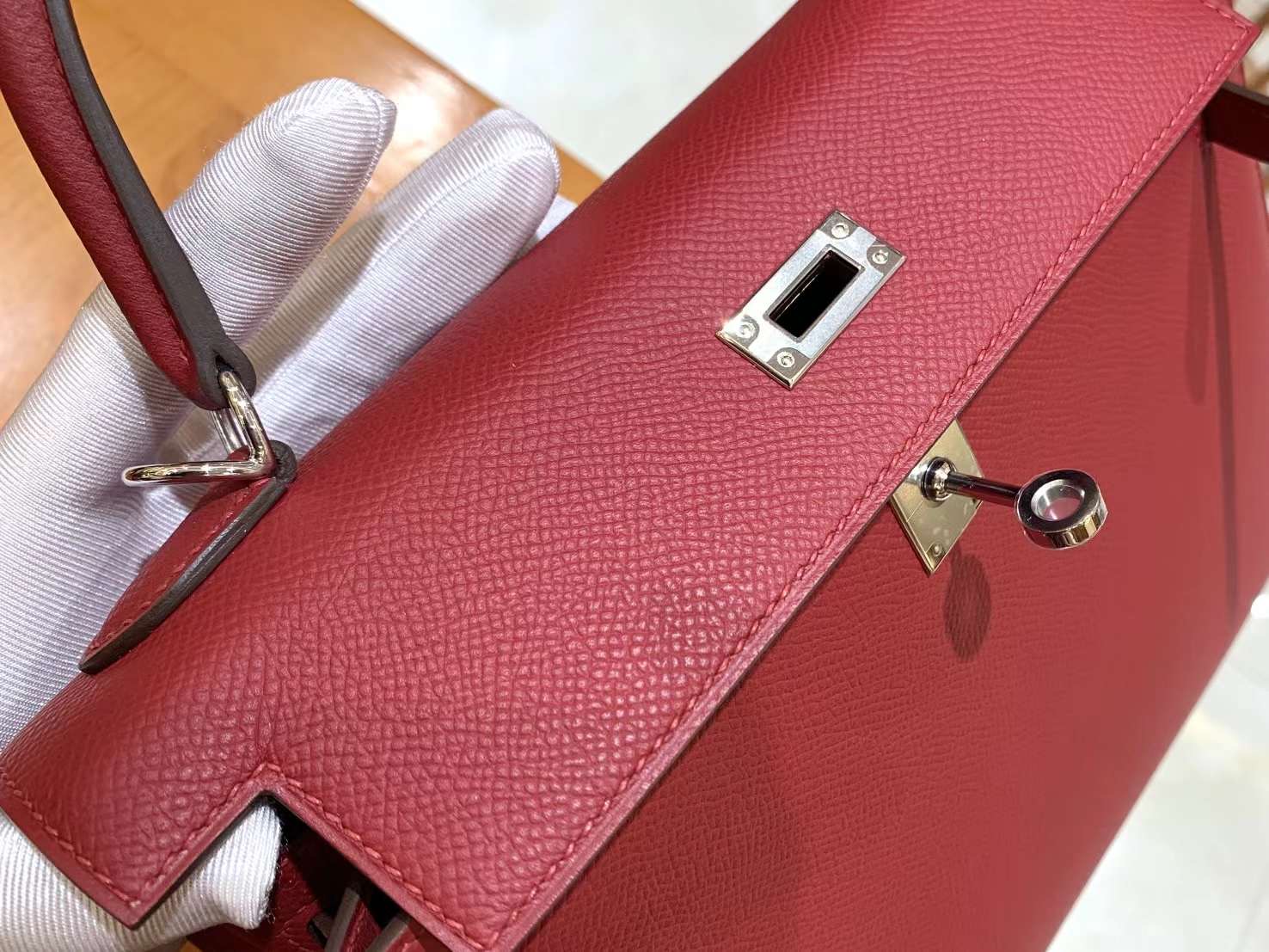 KL25cm Red. Gold Buckle Imported Epsom cowhide. French original beeswax thread. Fully hand-sewn