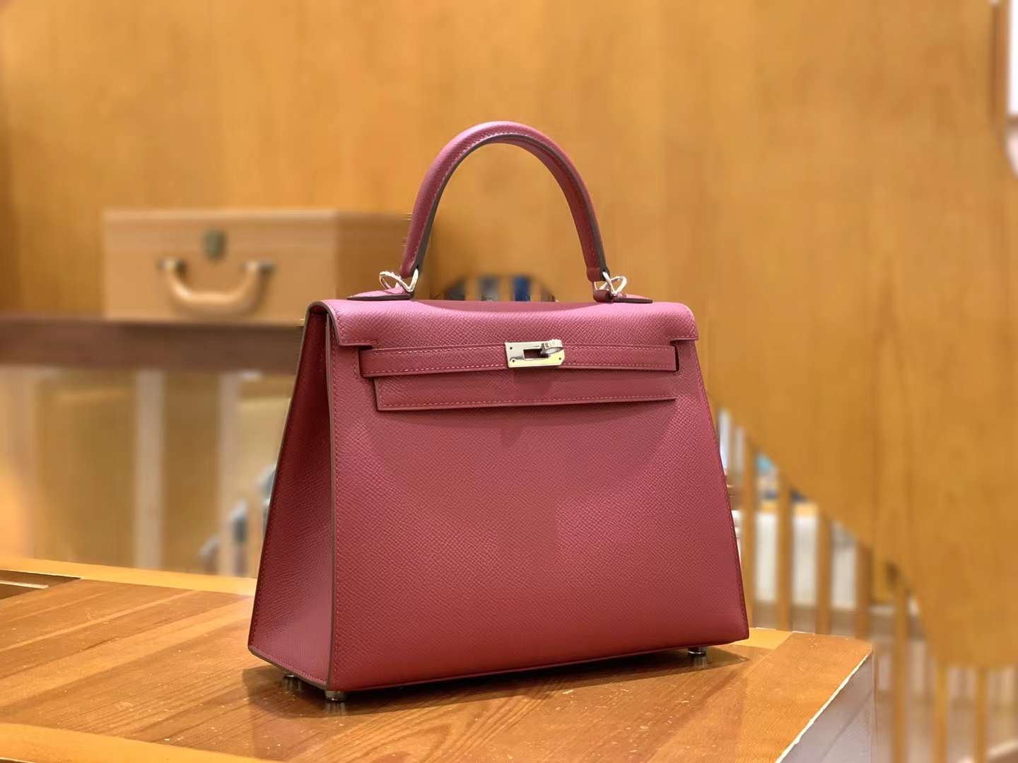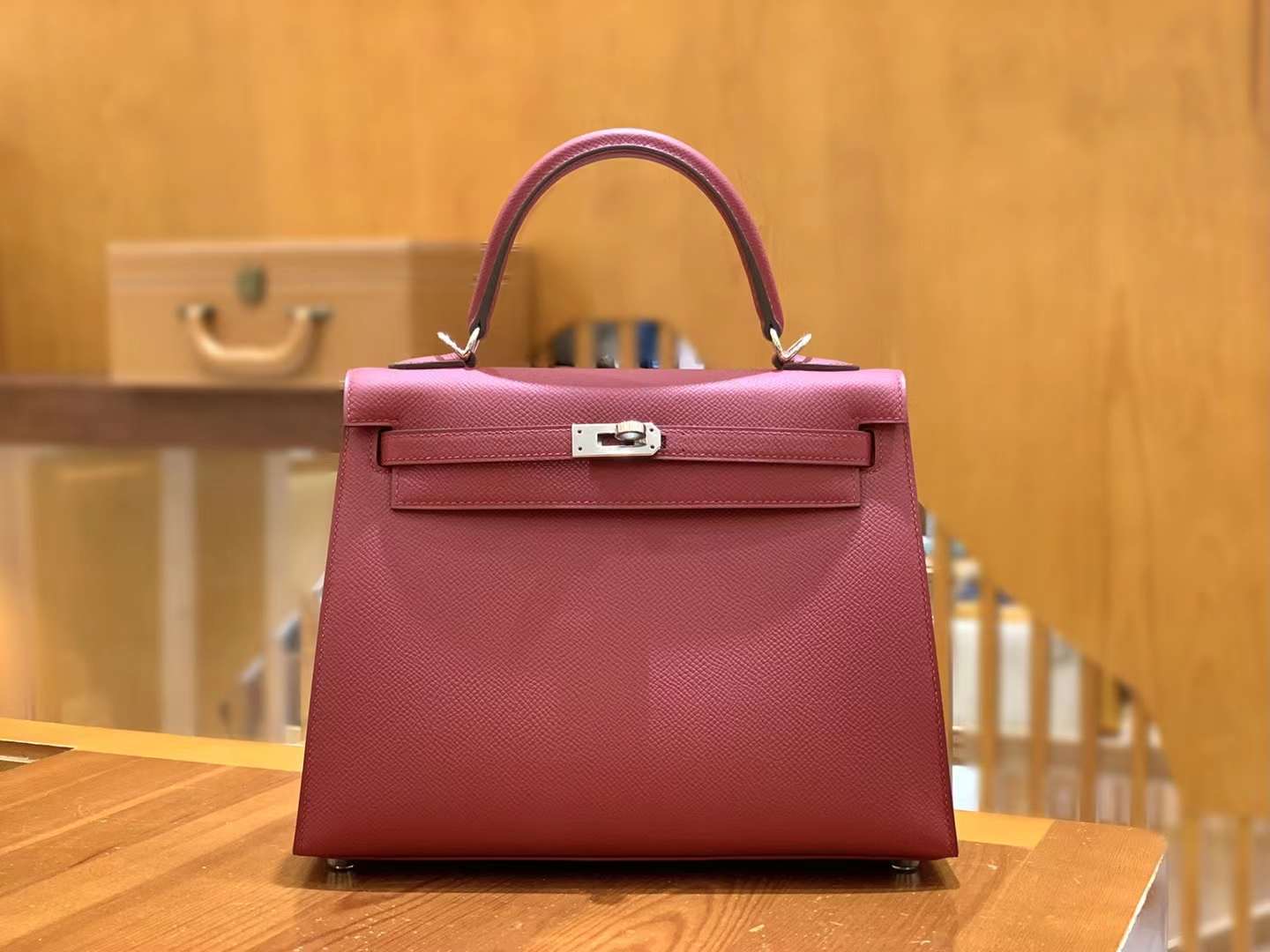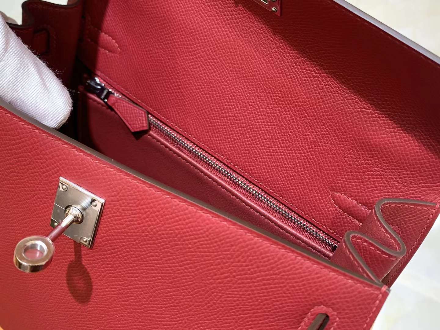 KL25cm Red. Gold Buckle Imported Epsom cowhide. French original beeswax thread. Fully hand-sewn