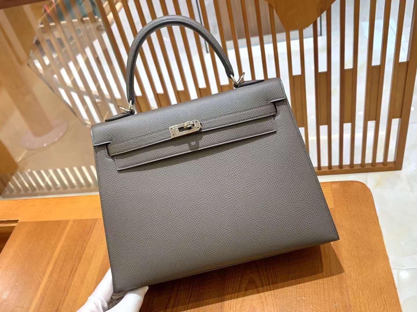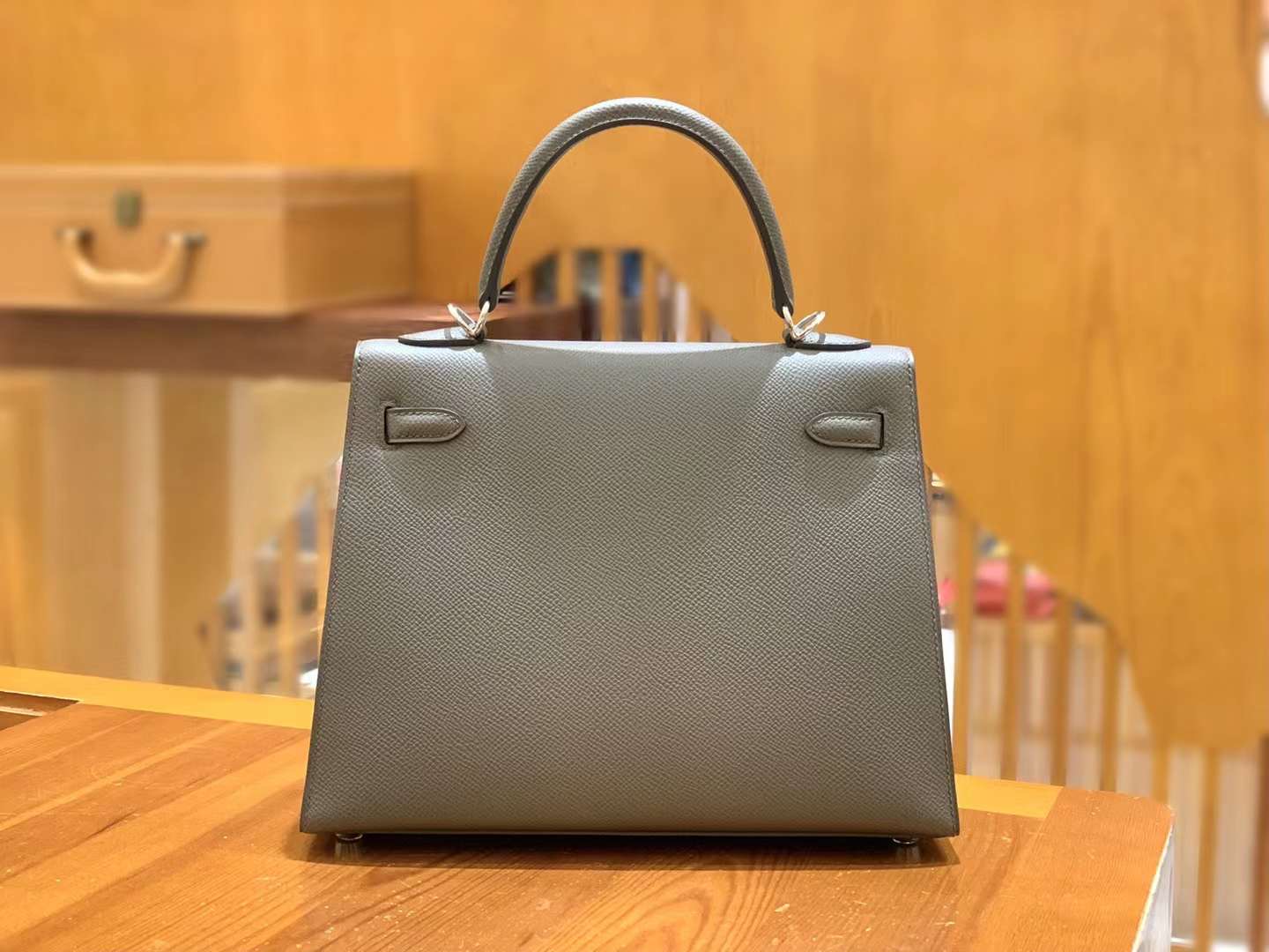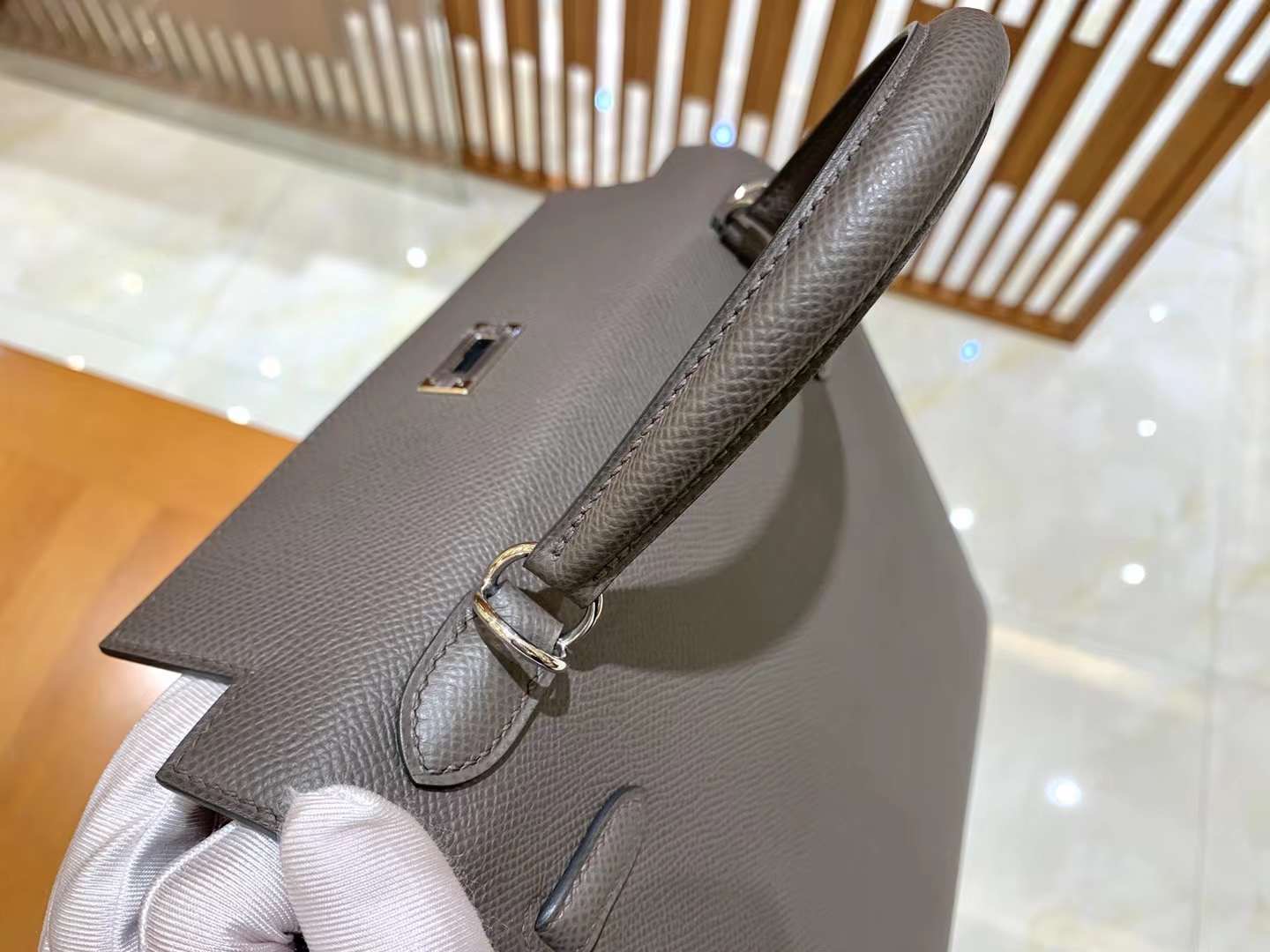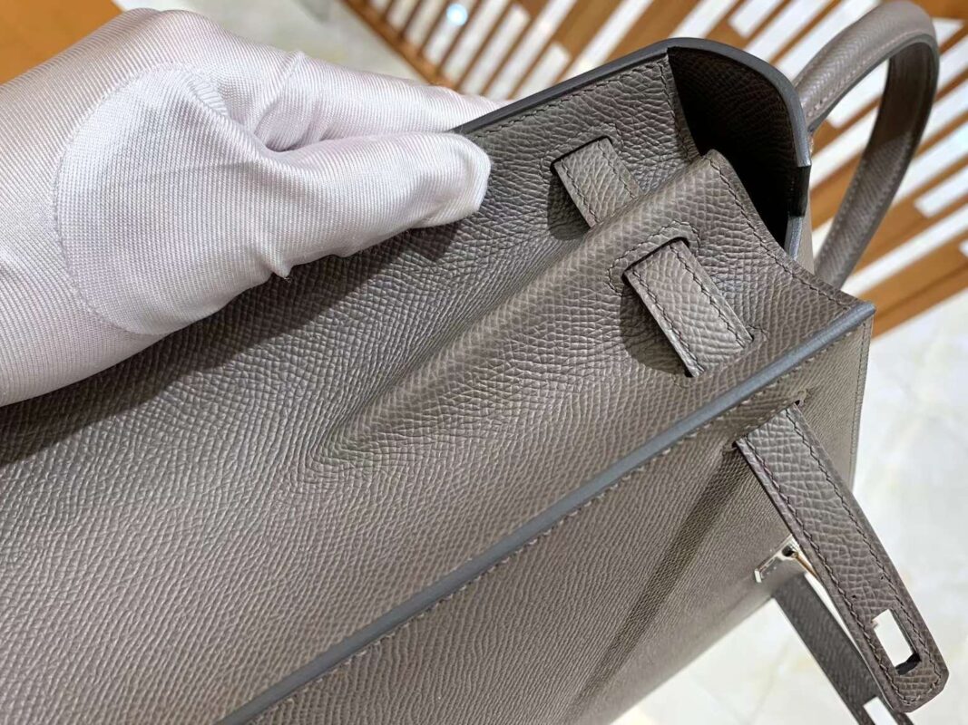 KL25cm Tin Grey. Silver buckle Imported Epsom cowhide. French original beeswax thread. Fully hand-sewn