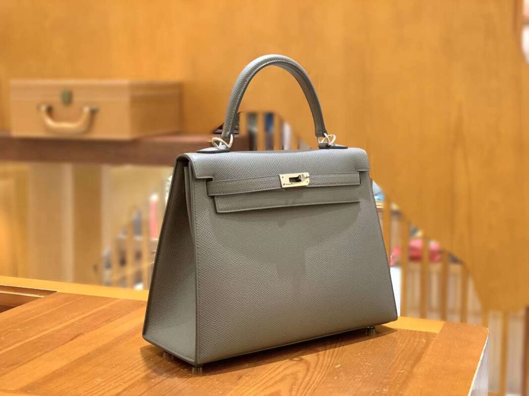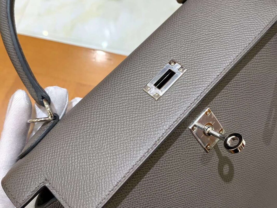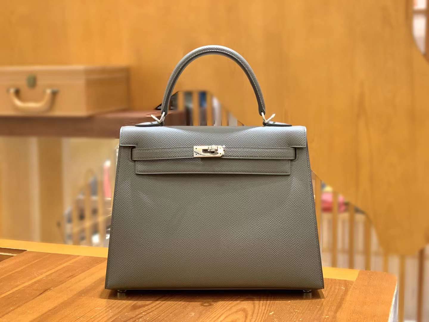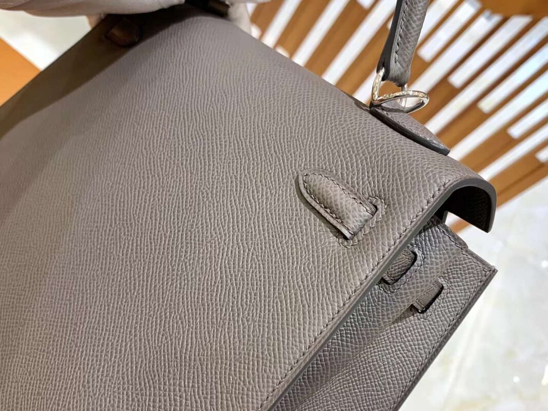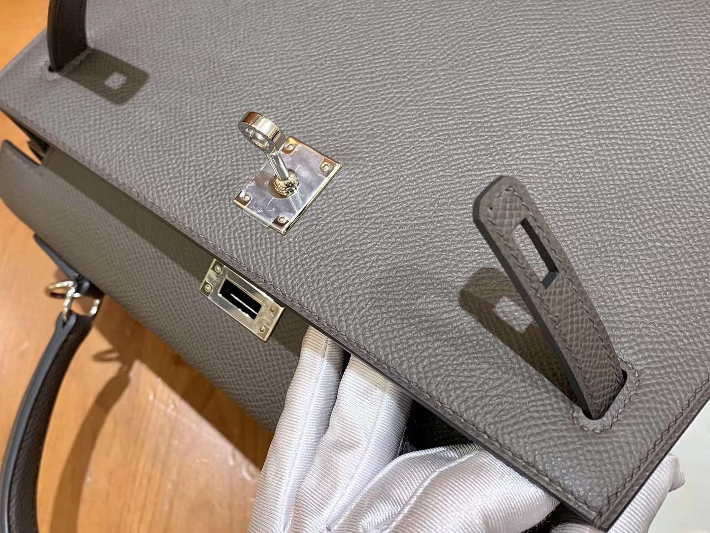 KL25cm Tin Grey. Silver buckle Imported Epsom cowhide. French original beeswax thread. Fully hand-sewn