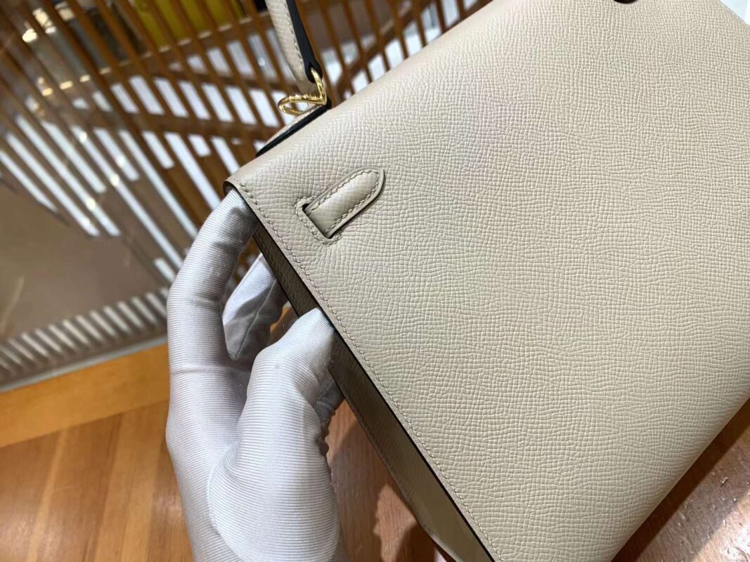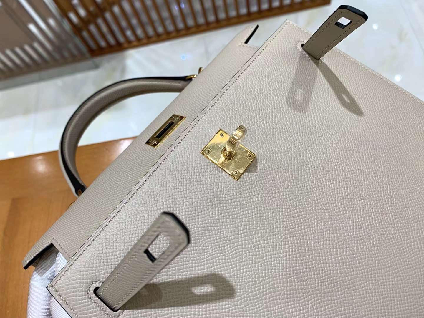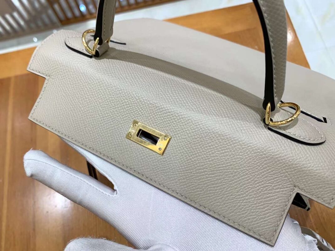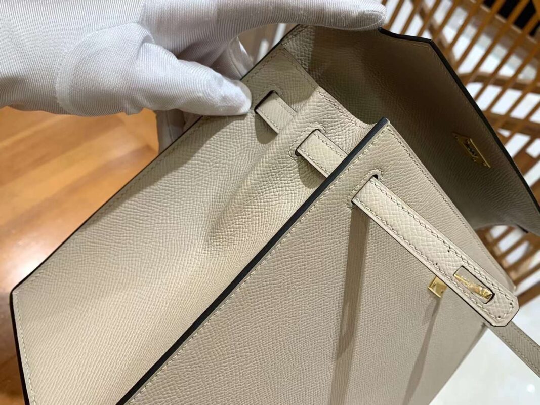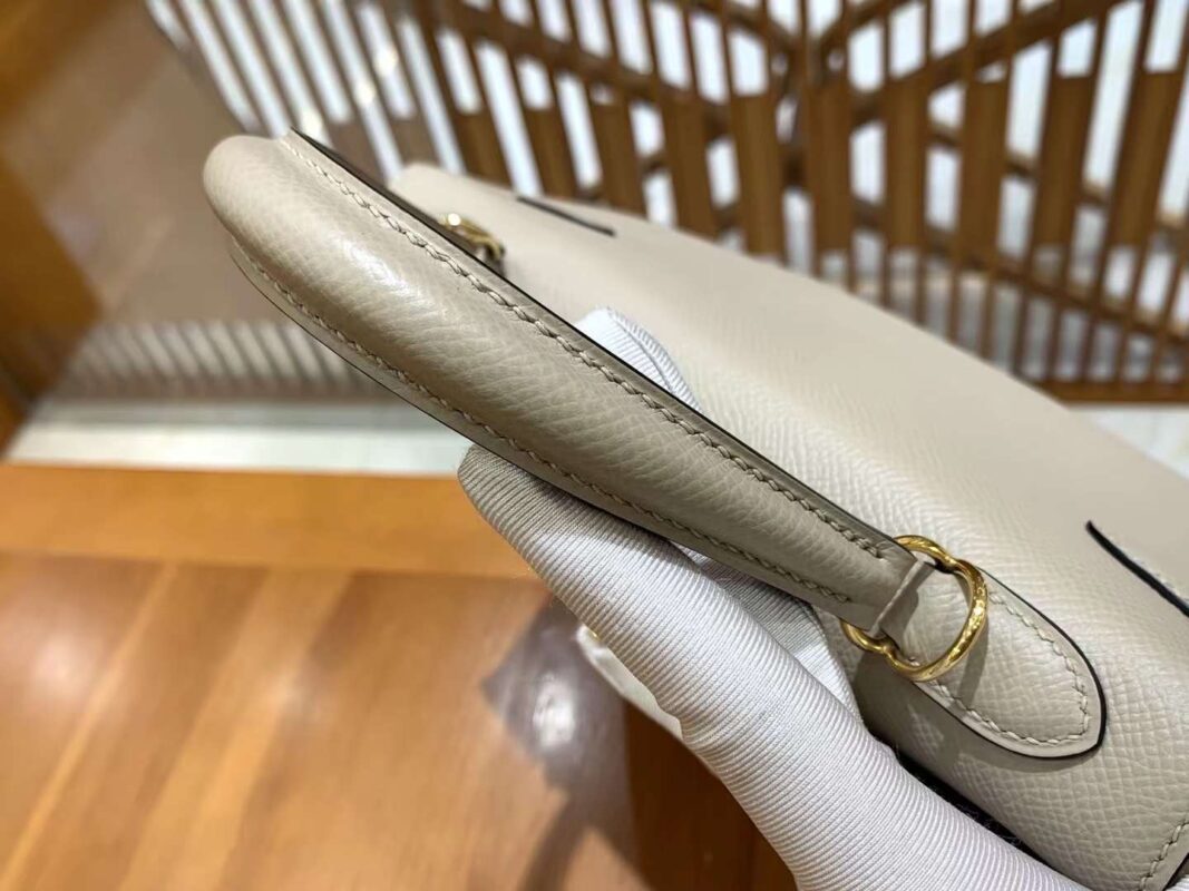 KL25cm Trench Coat Grey. Gold buckle Imported Epsom cowhide. French original beeswax thread. Fully hand-sewn