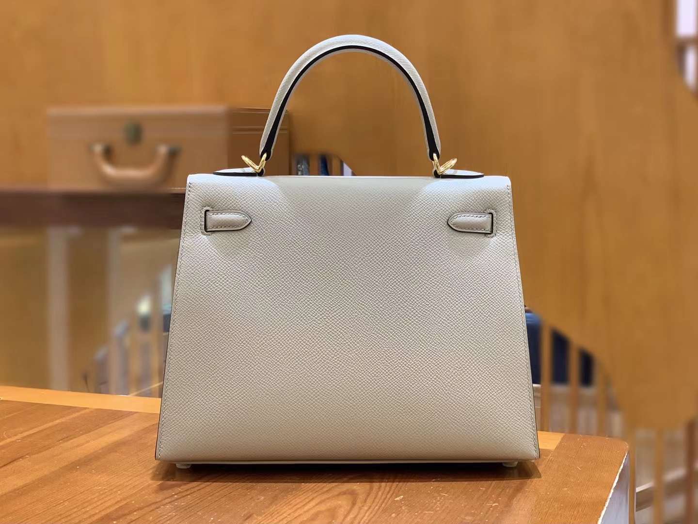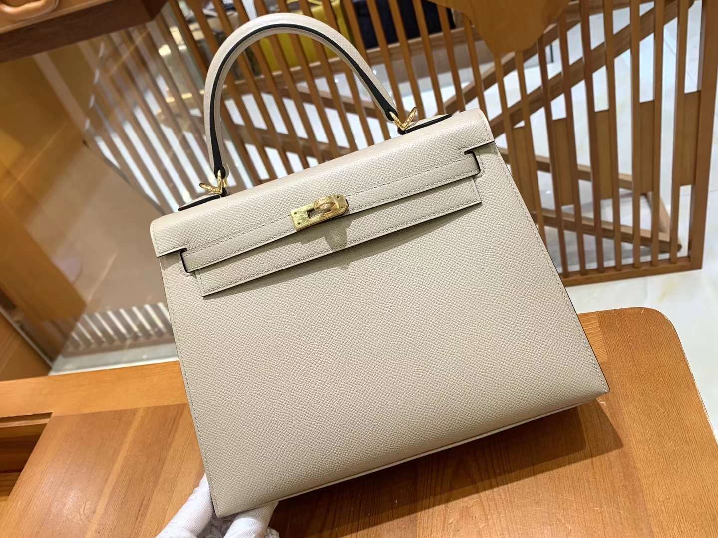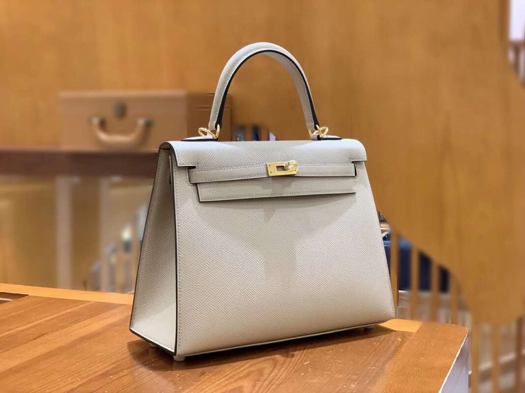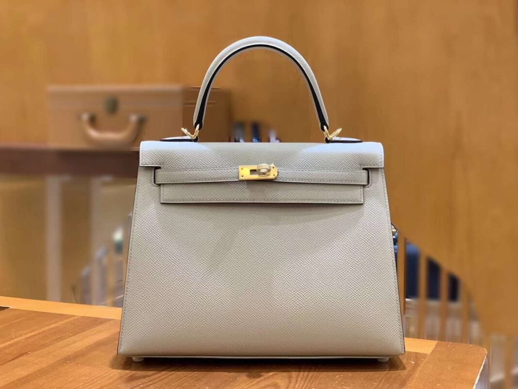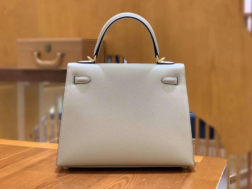 KL25cm Trench Coat Grey. Gold buckle Imported Epsom cowhide. French original beeswax thread. Fully hand-sewn