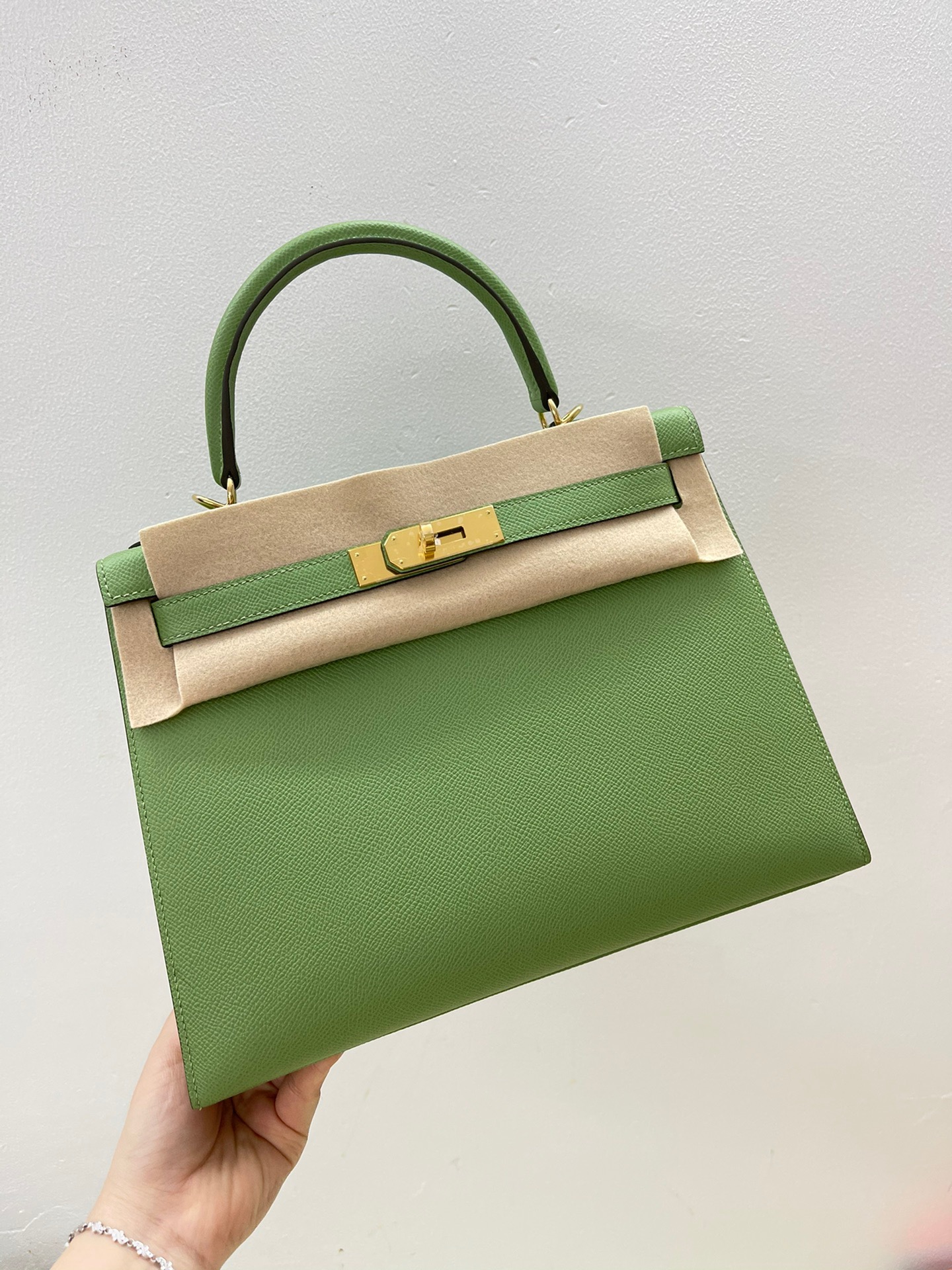 Kelly 25cm Epsom Leather 3i Vert Criquet bright candy color.Last picture under white light ☑️