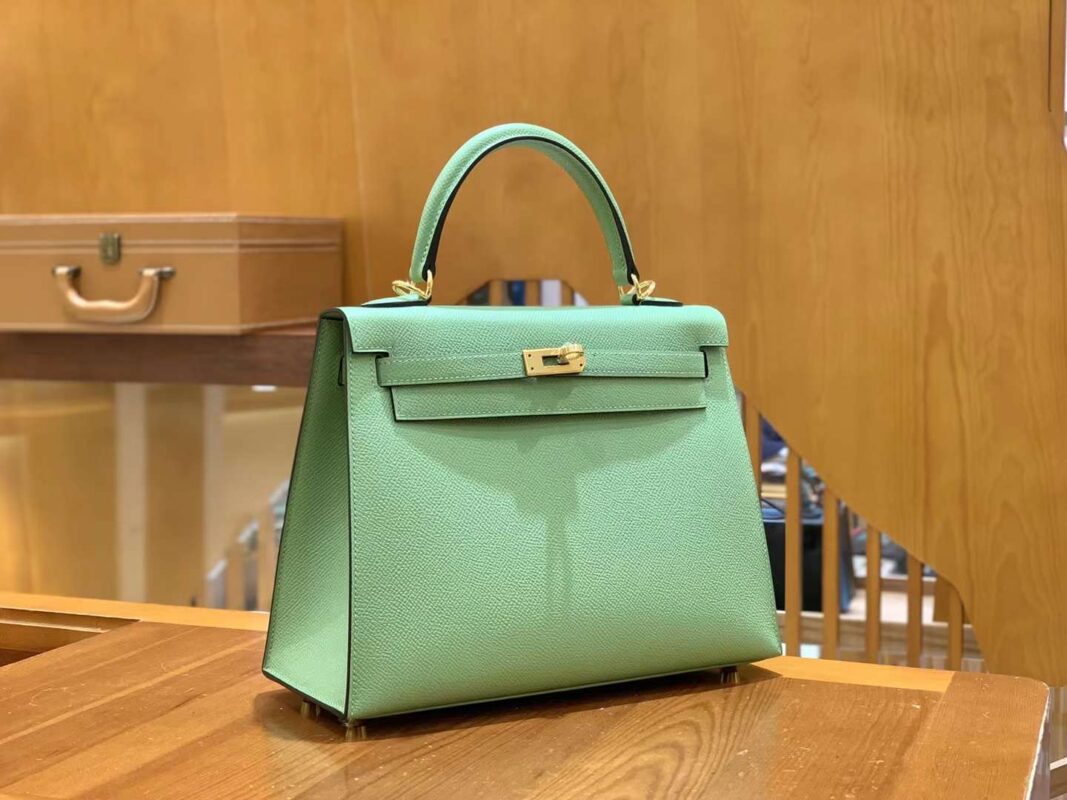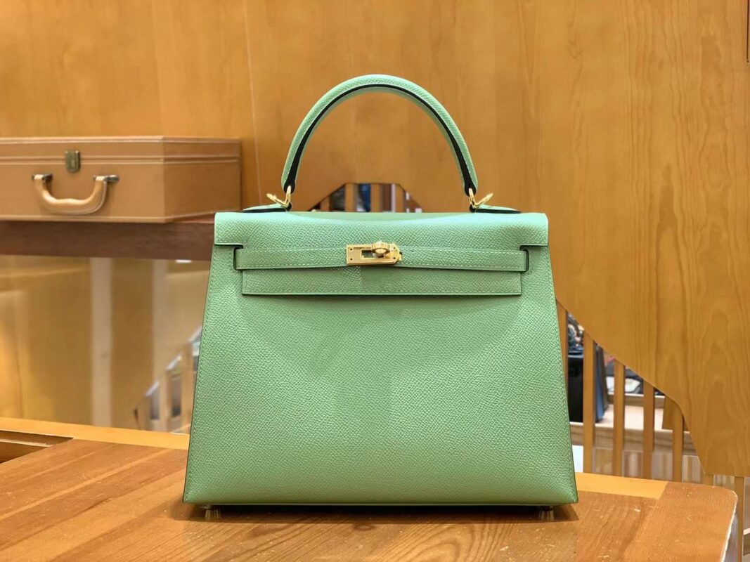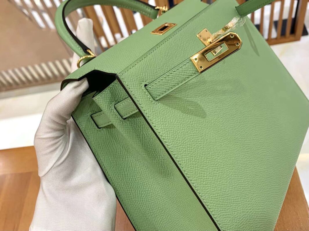 KL 25cm Vert Criquet. Gold BuckleImported first-class Epsom cowhide, imported raw materials, all hand-sewn.