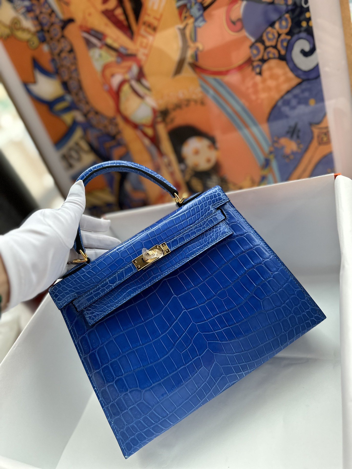 Kelly 25 in Blue Electric Shiny Niloticus Crocodile GHW