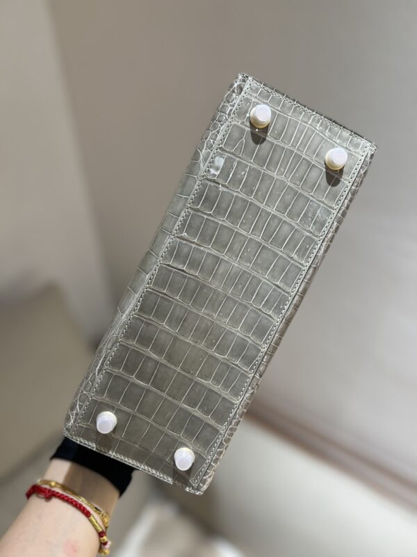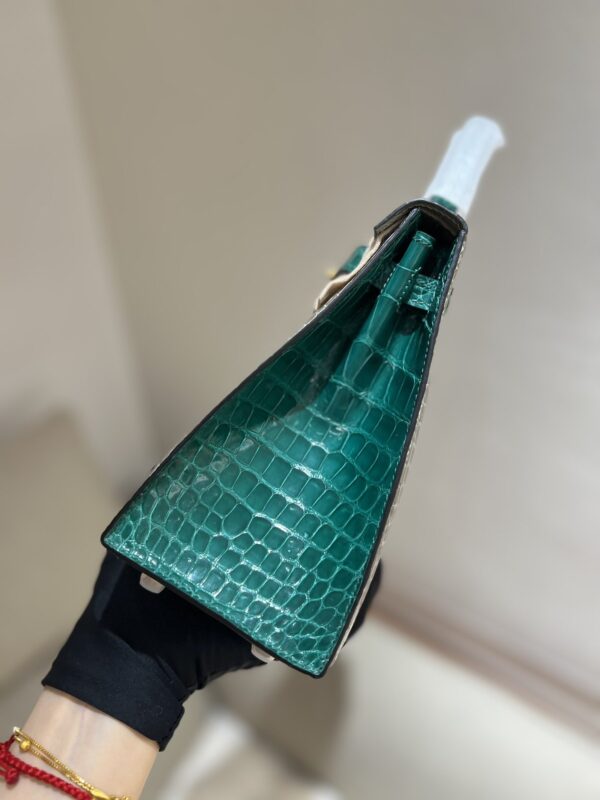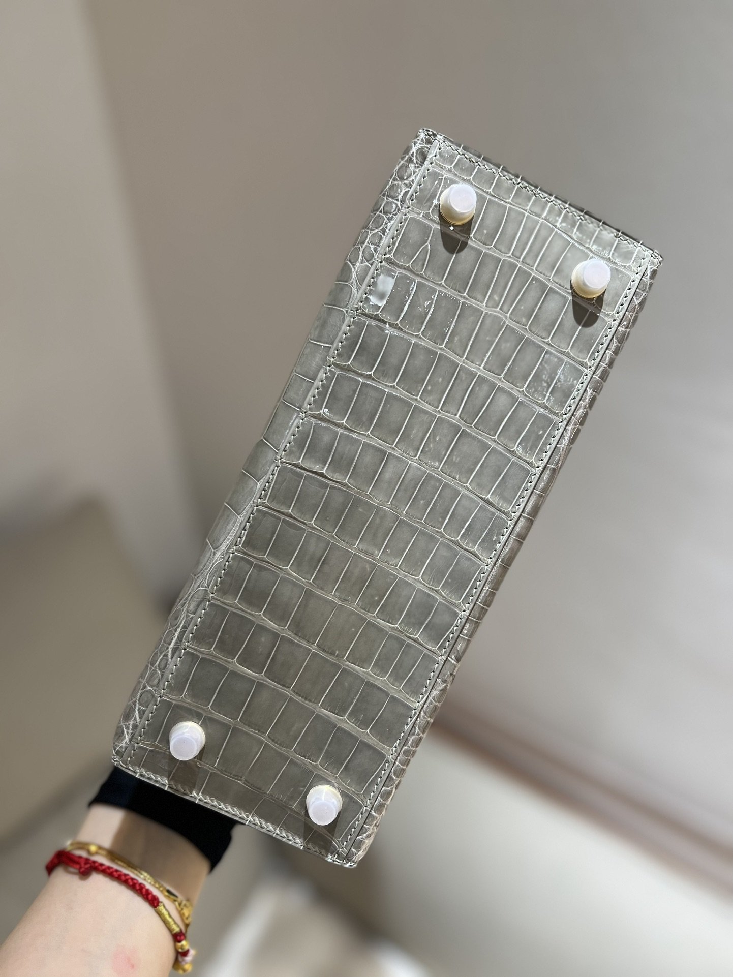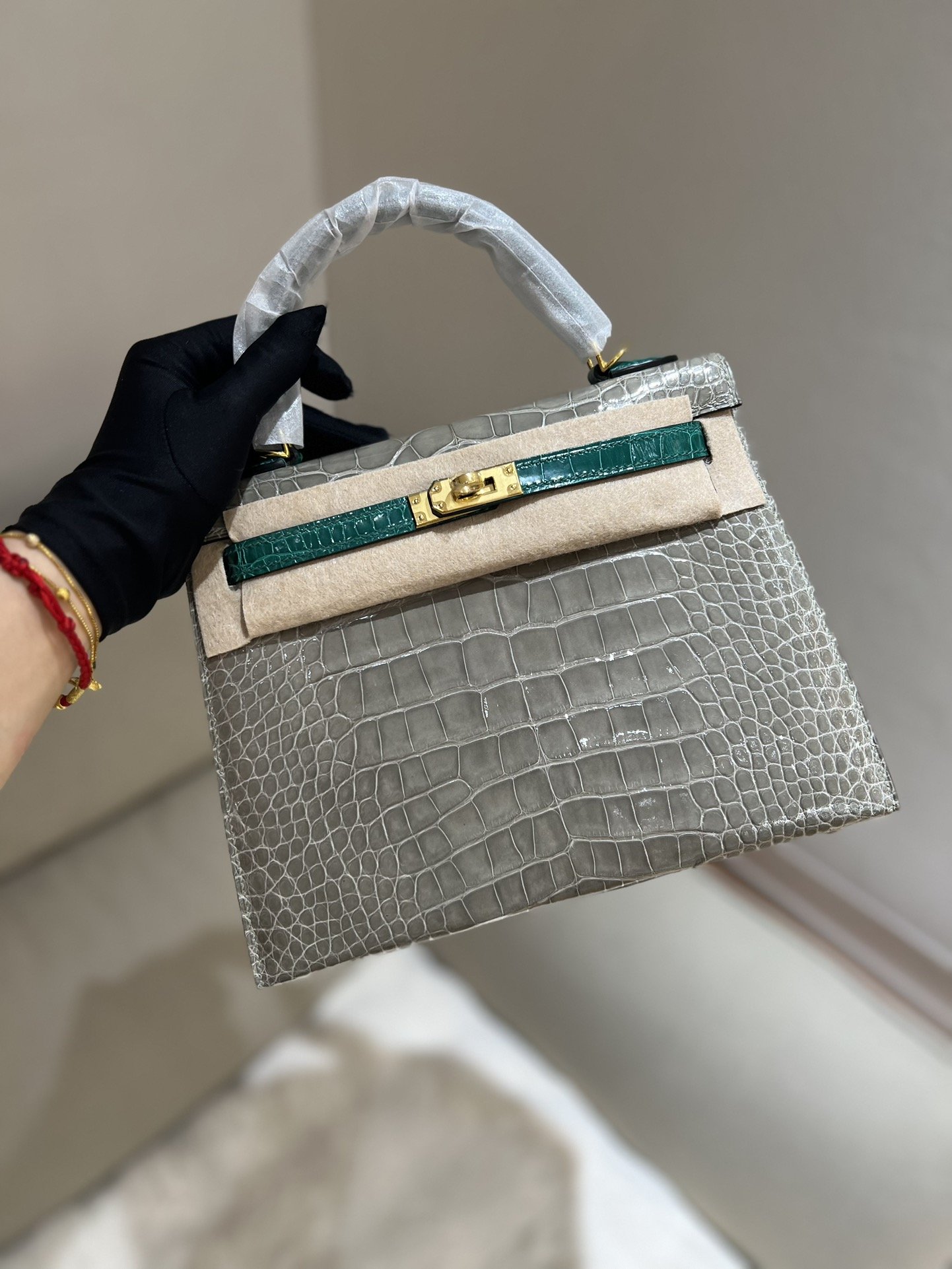 Kelly 25 in Gris Tourterelle & Emerald Shiny Alligator