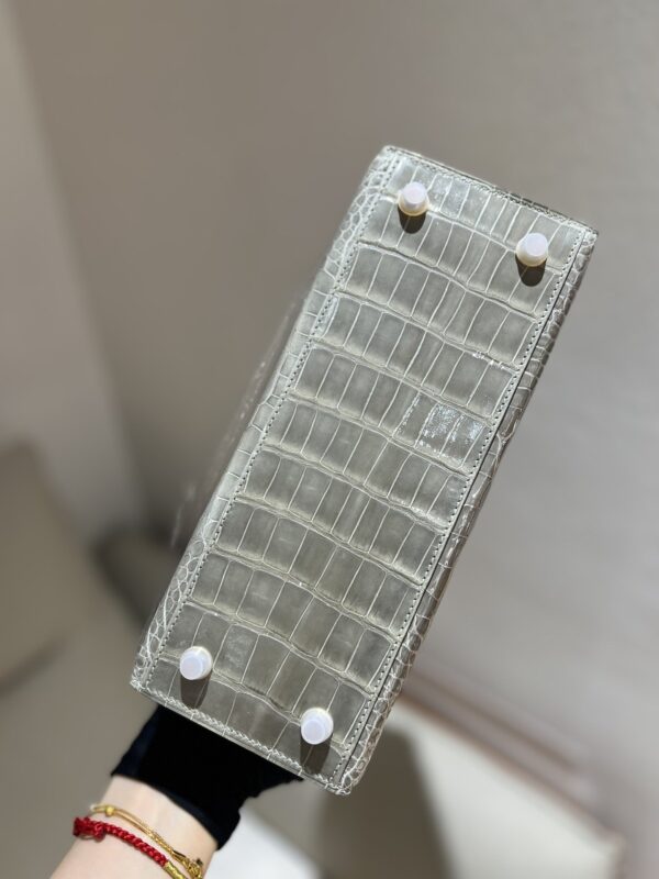 Kelly 25 in Gris Tourterelle & Jaune Ambre Shiny Alligator PHW |