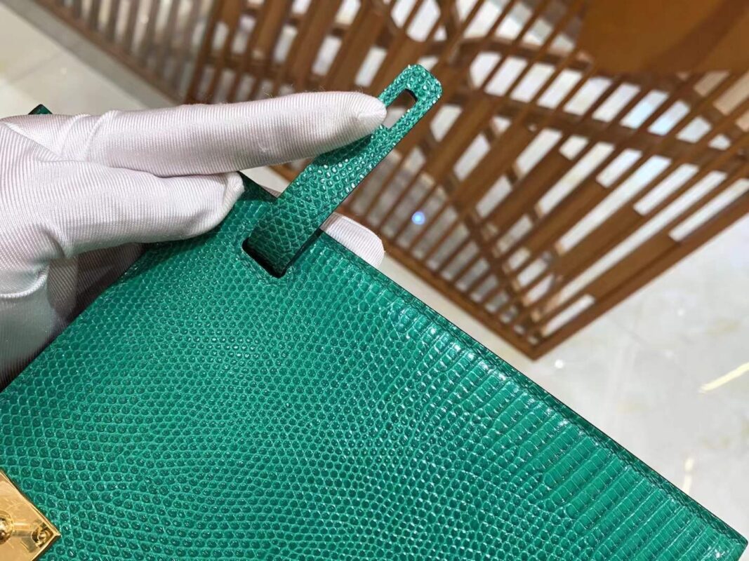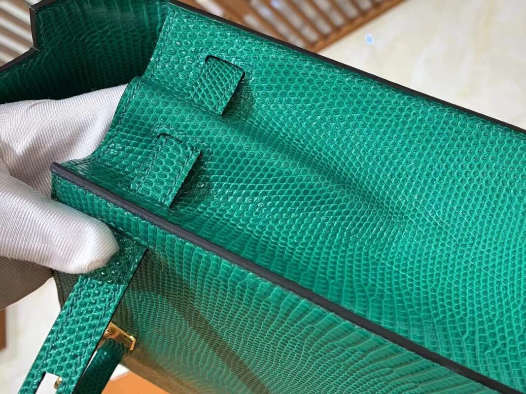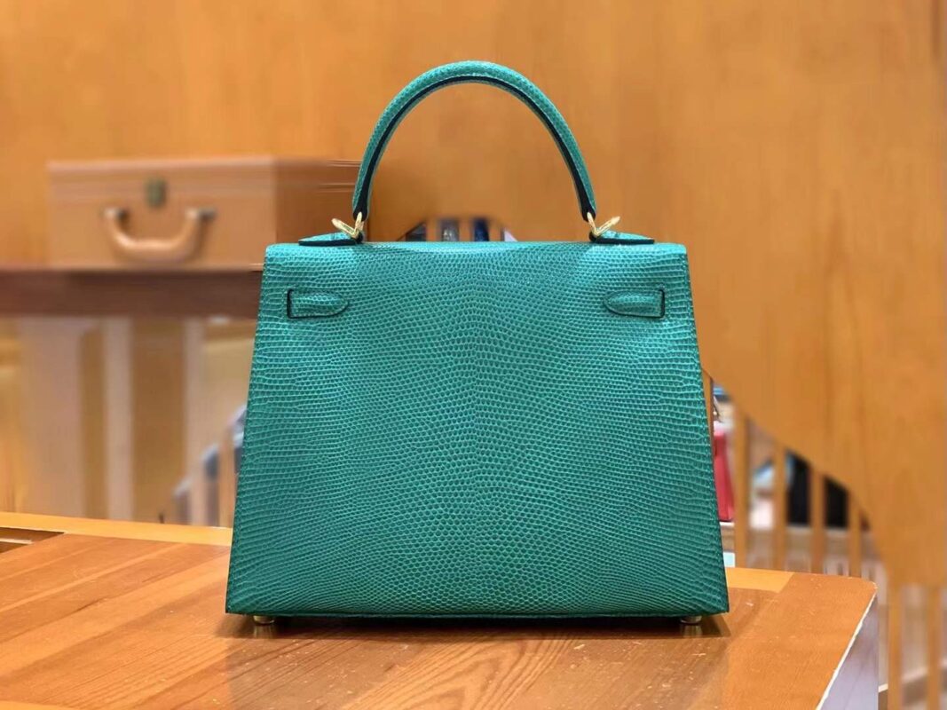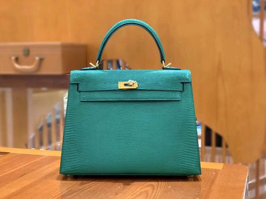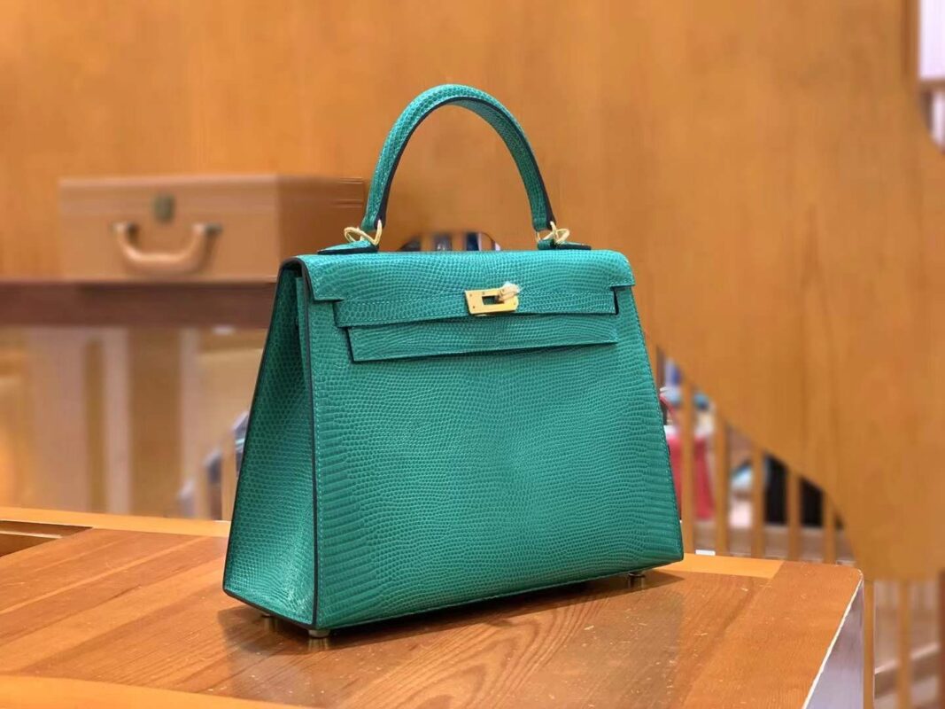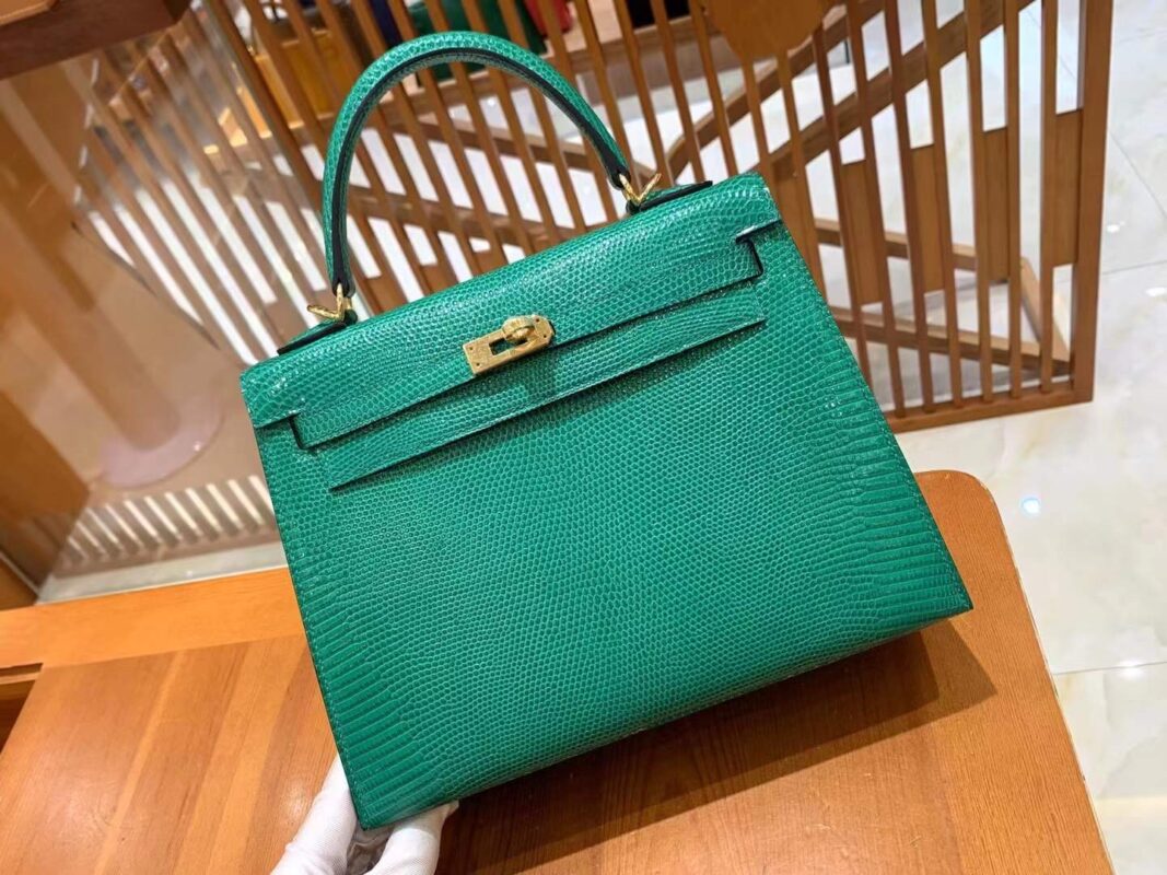 Kelly 25cm Cactus Green Imported wild lizard skin. Hand-sewn
