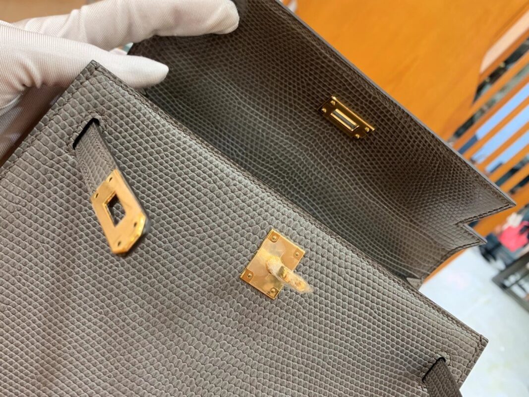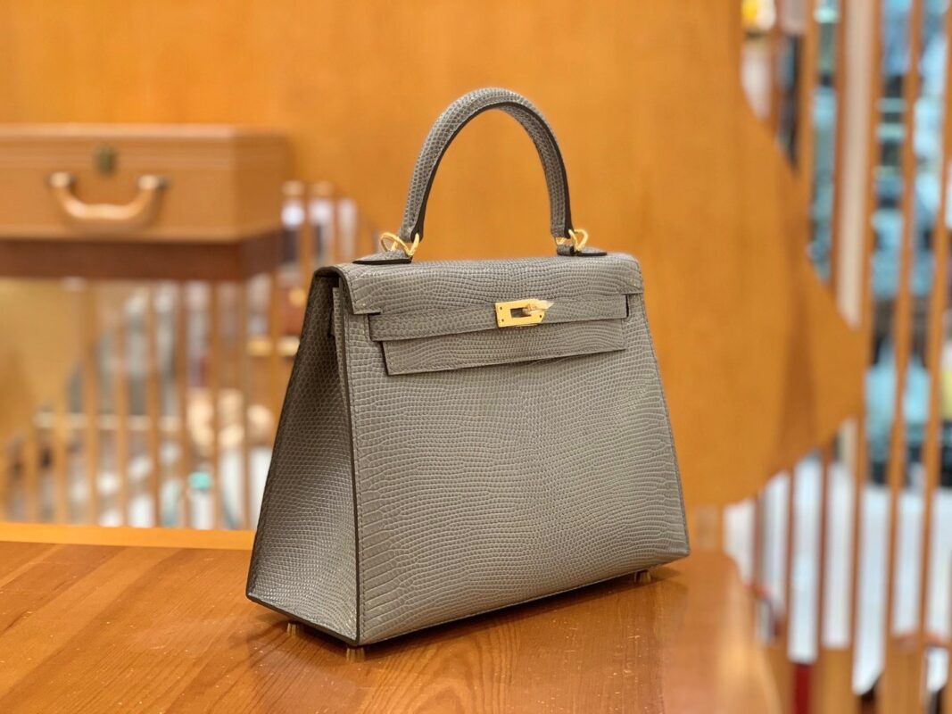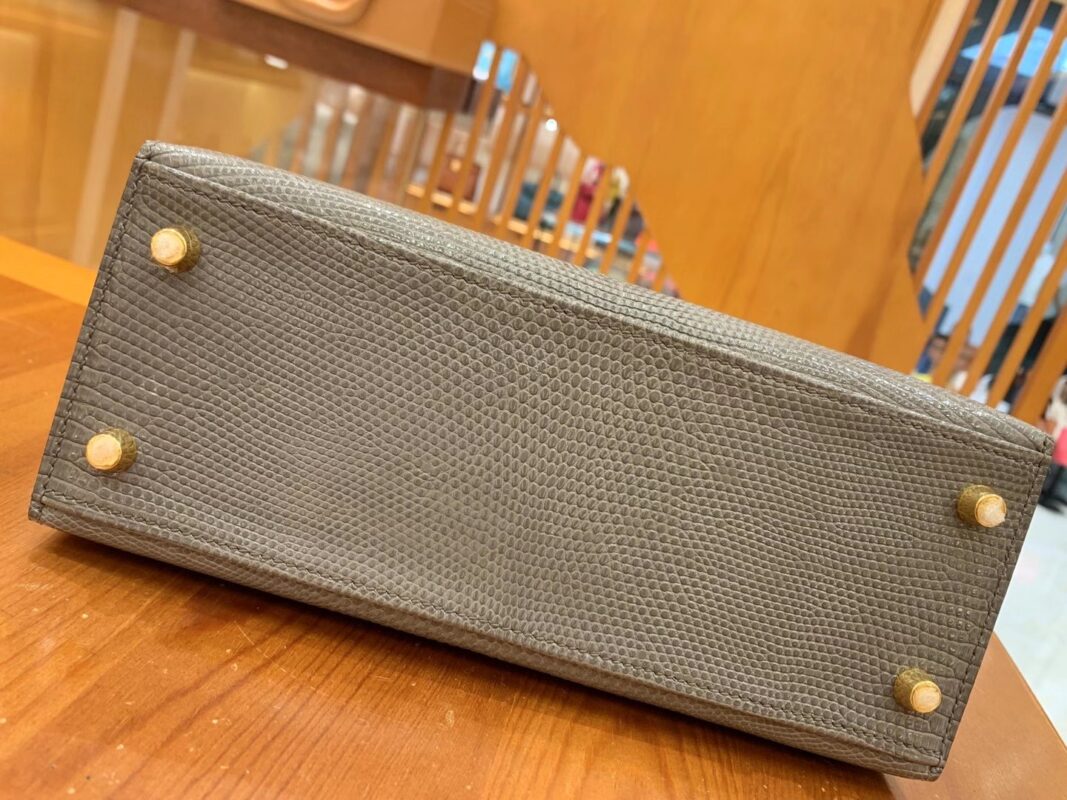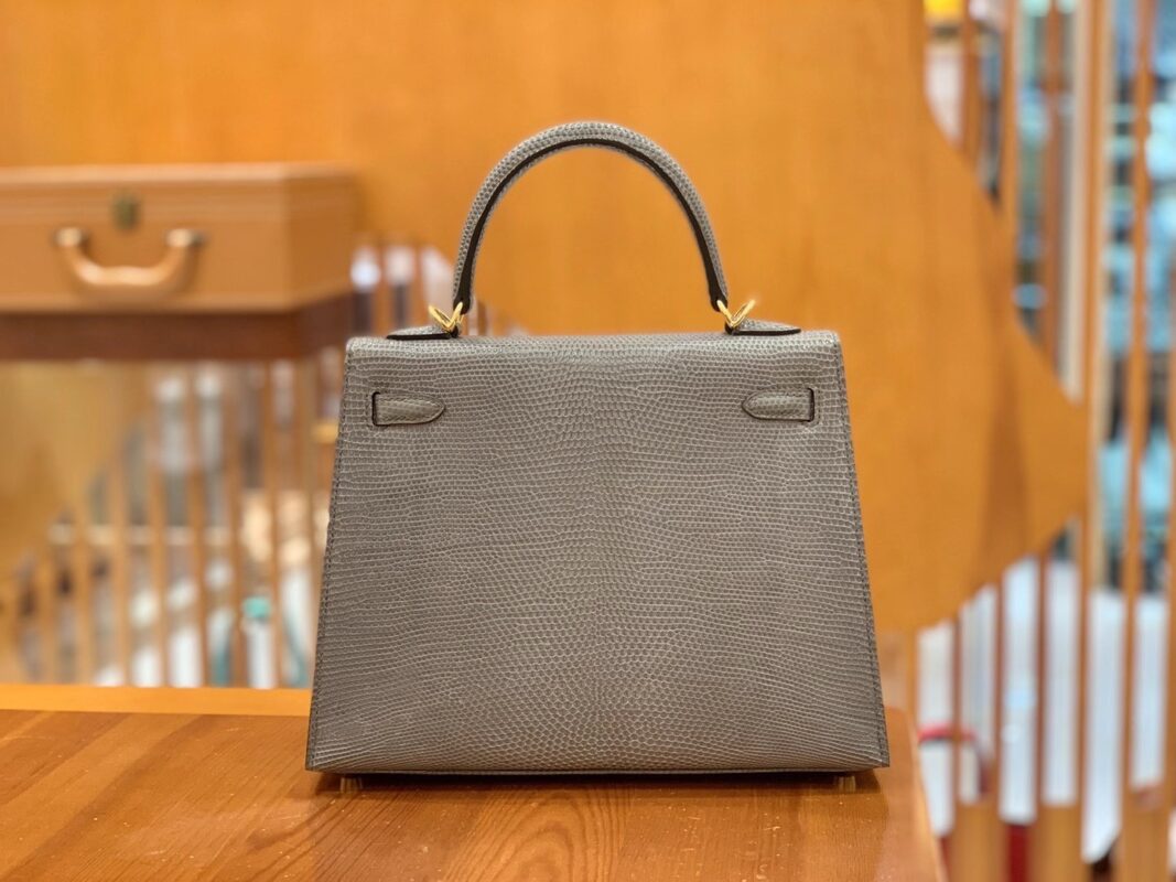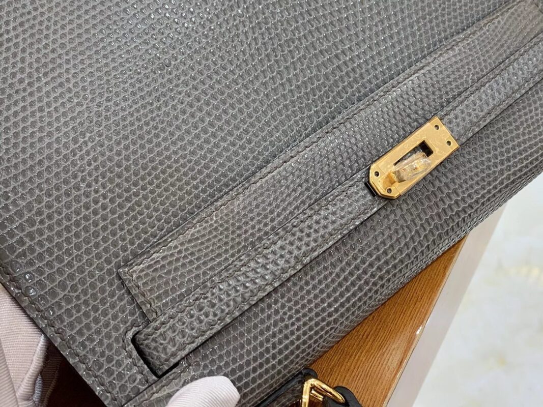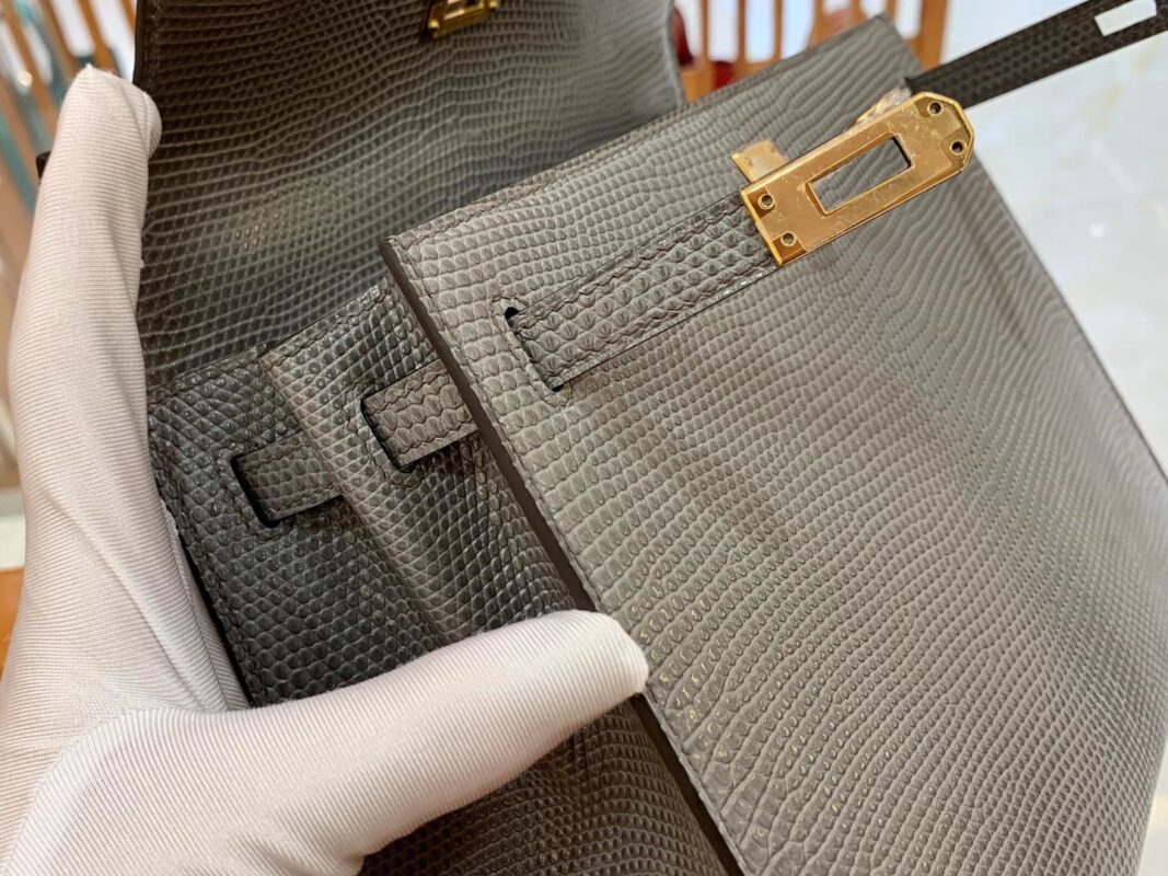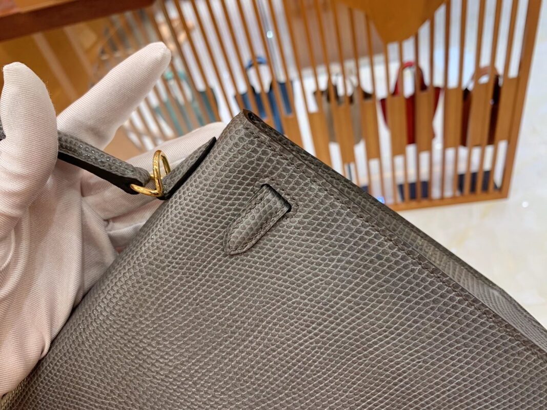 Kelly 25cm Paris Grey Imported wild lizard skin. Hand-sewn