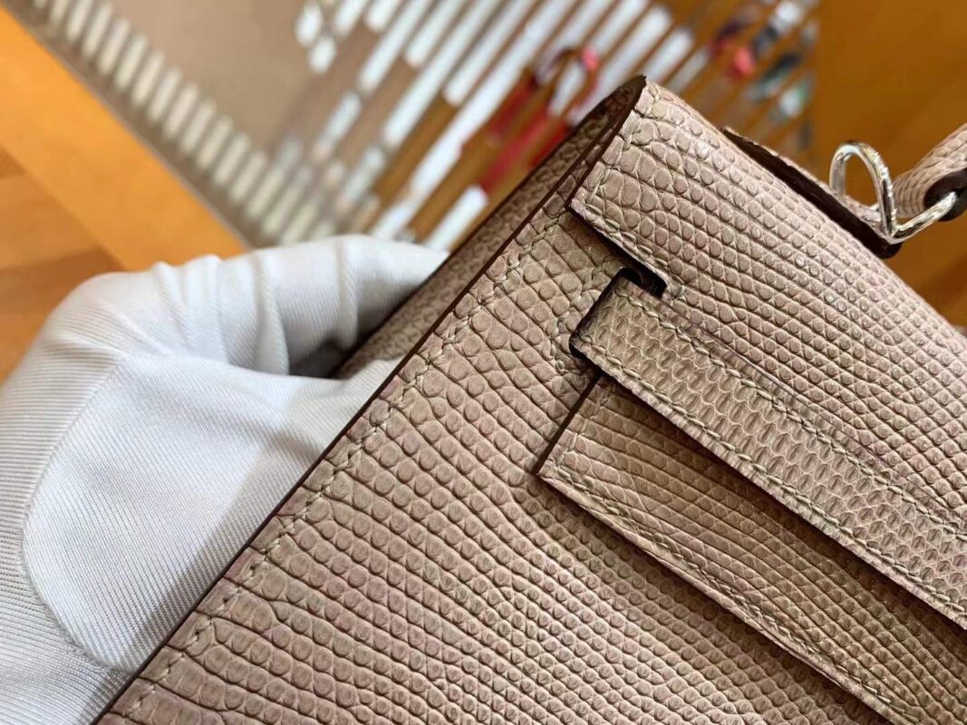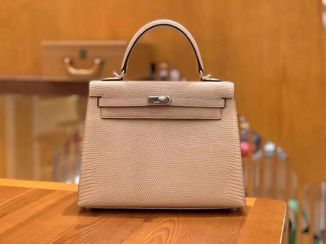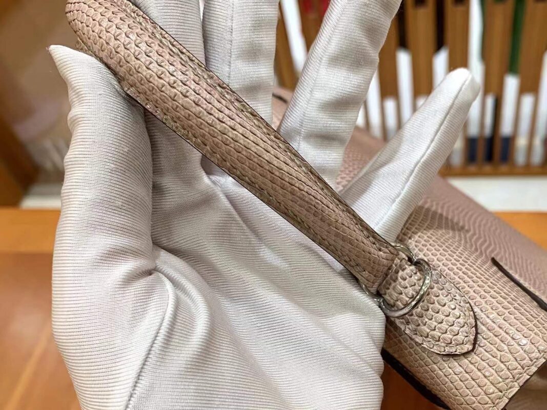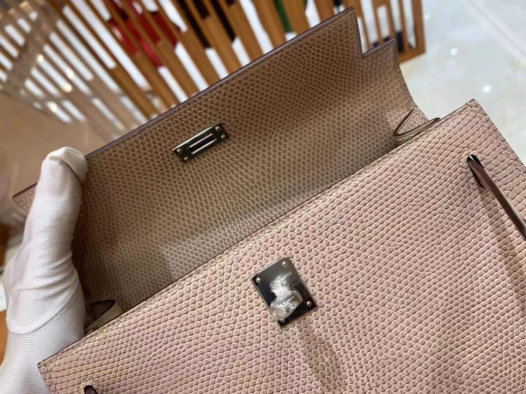 Kelly 25cm Rose Pink Imported wild lizard skin. Hand-sewn