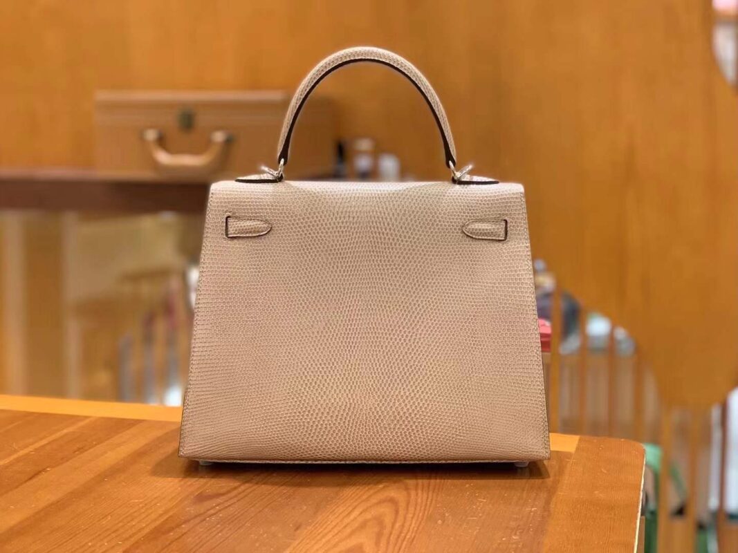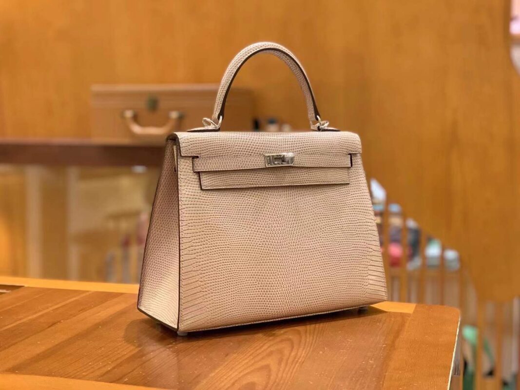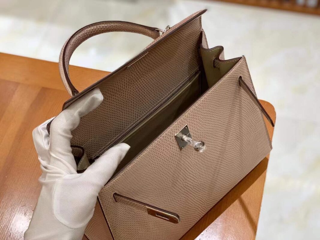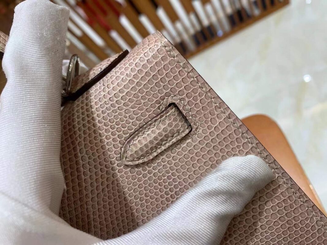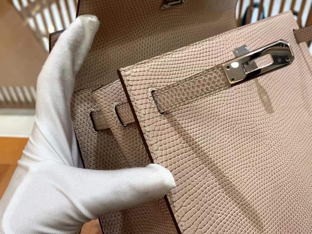 Kelly 25cm Rose Pink Imported wild lizard skin. Hand-sewn