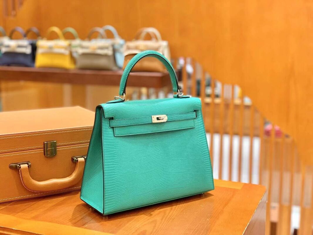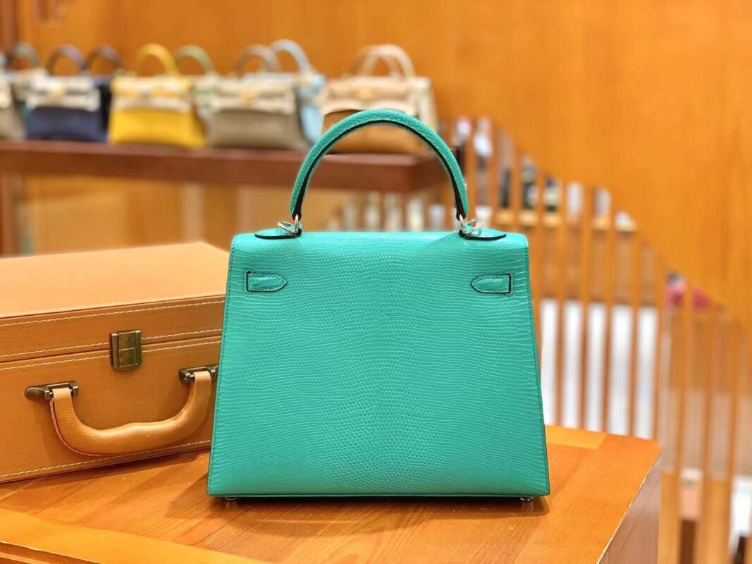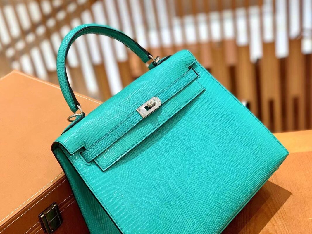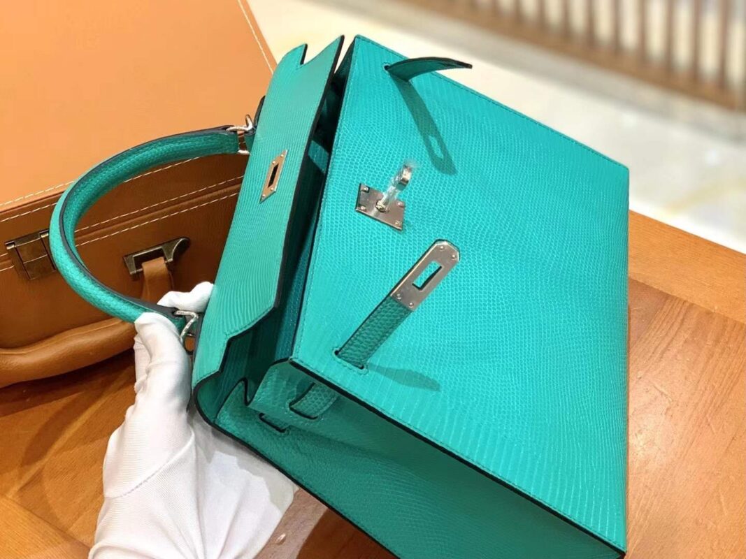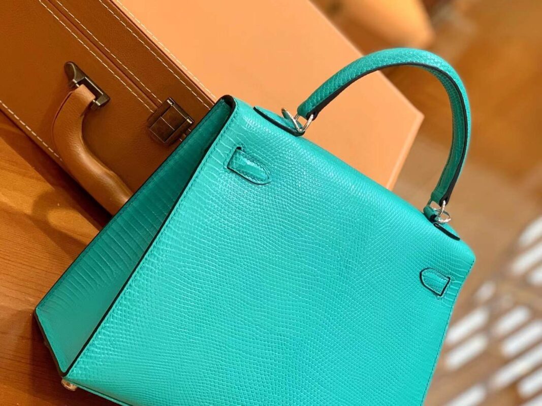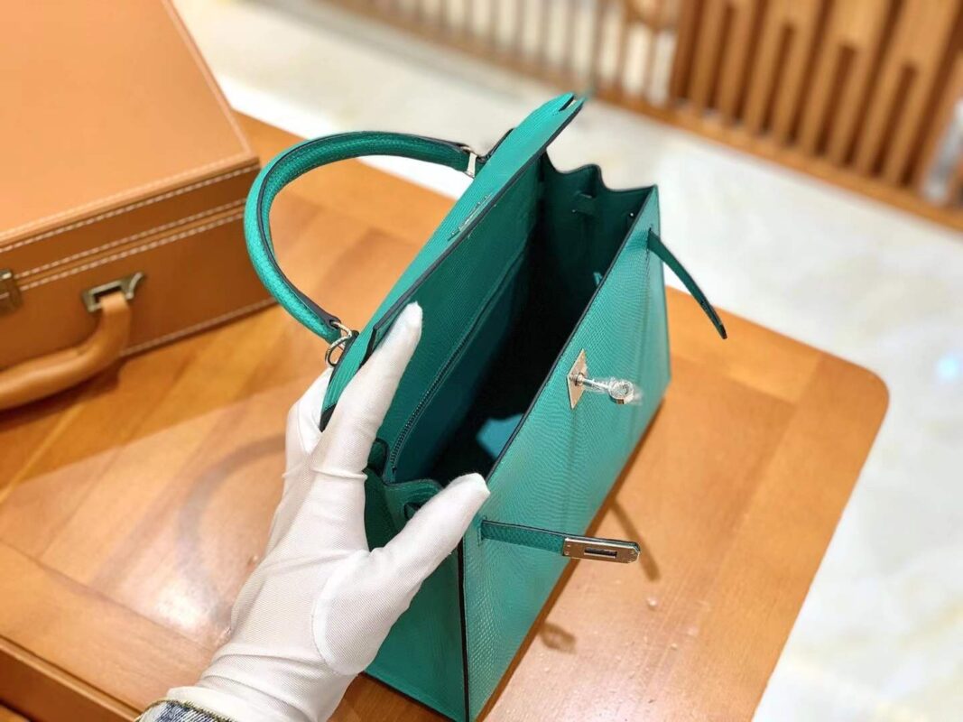 Kelly 25cm Verona Green Imported wild lizard skin. Hand-sewn