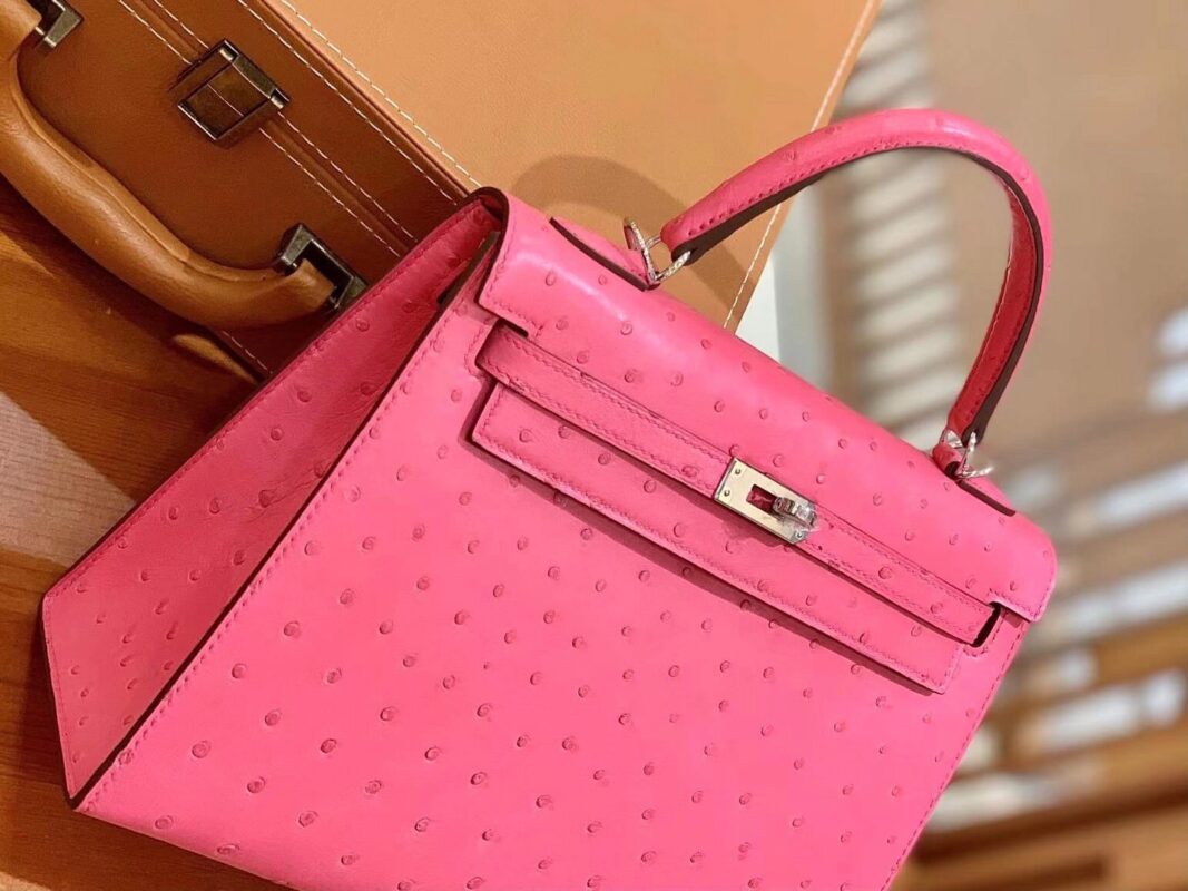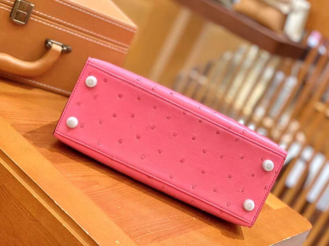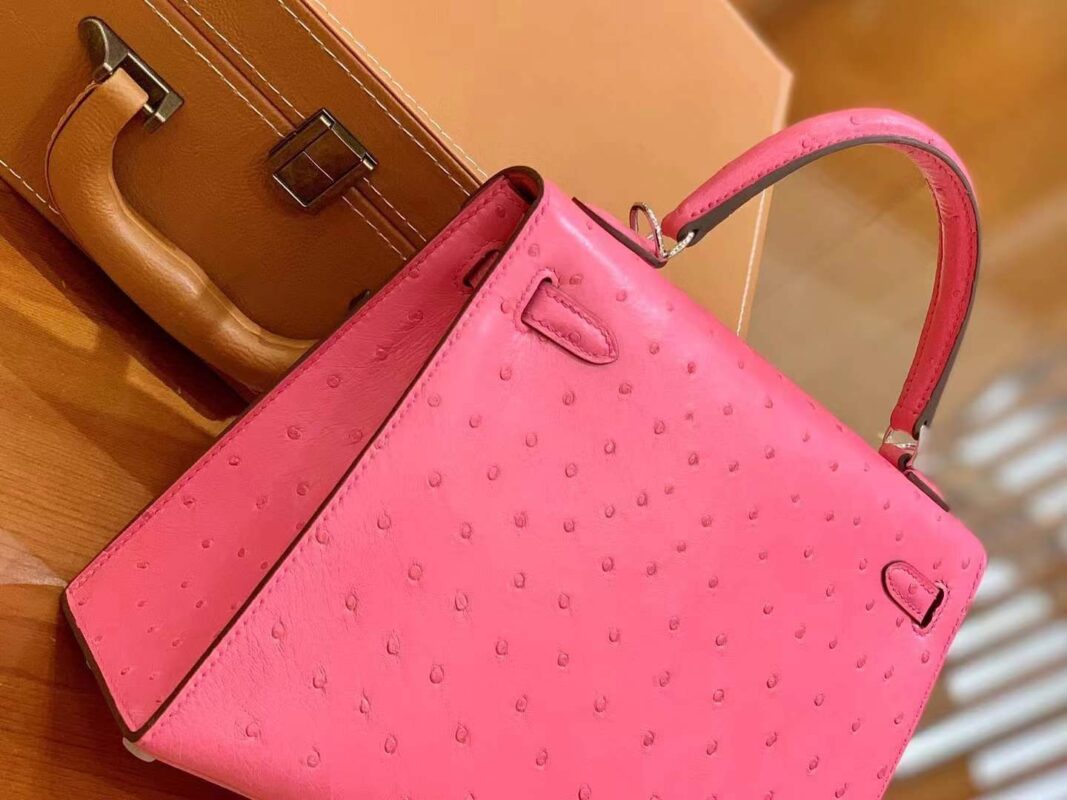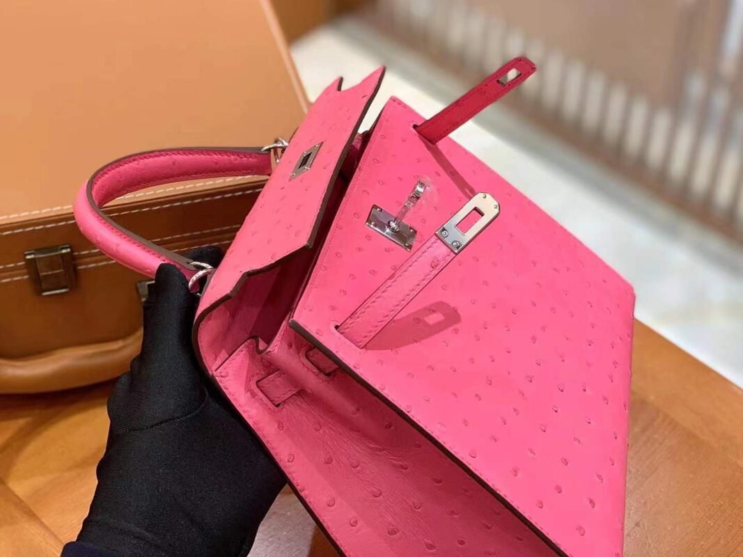 Kelly 25cm Lipstick Powder Silver Buckle Imported South African KK grade ostrich leather. Hand-sewn