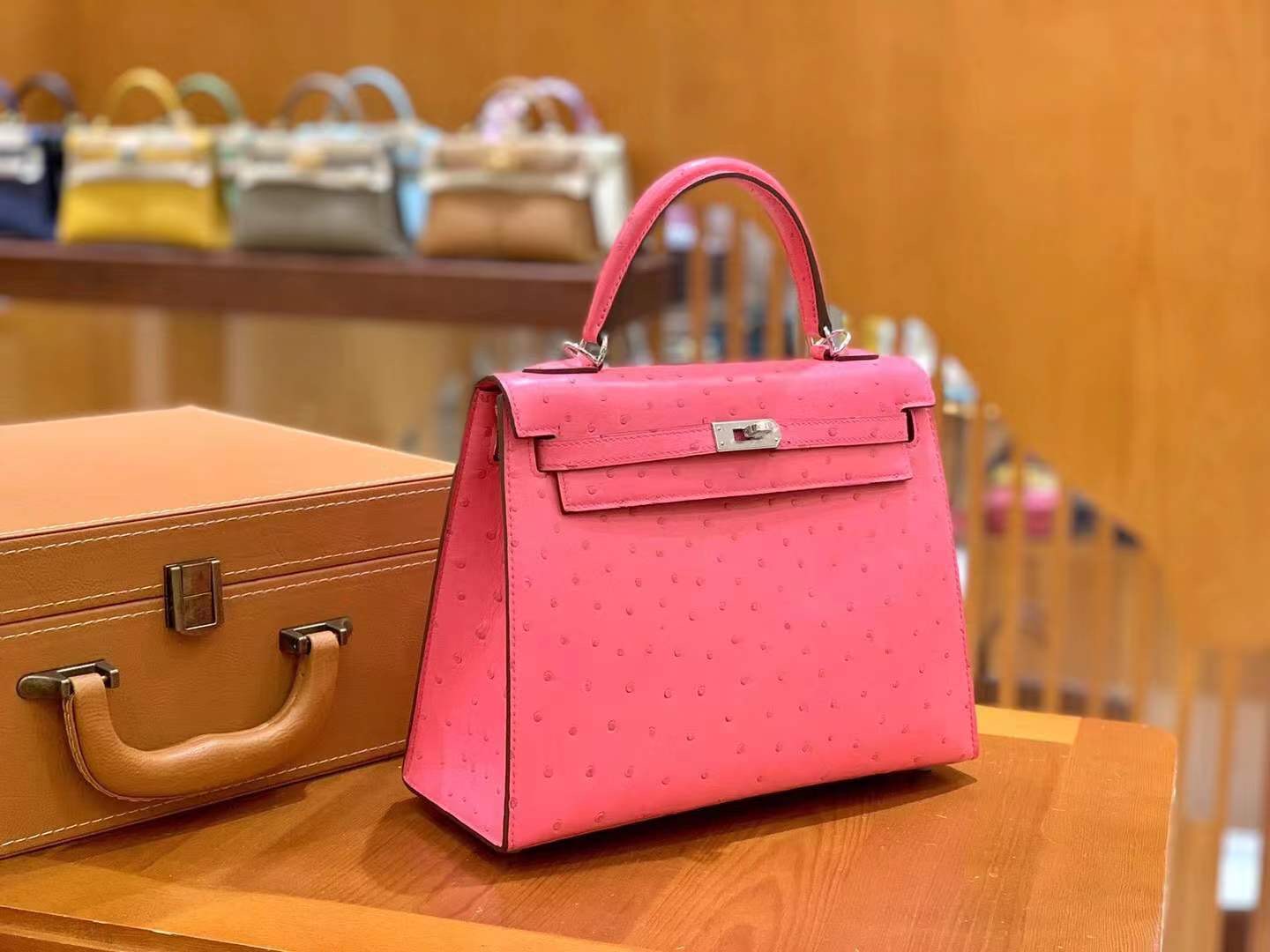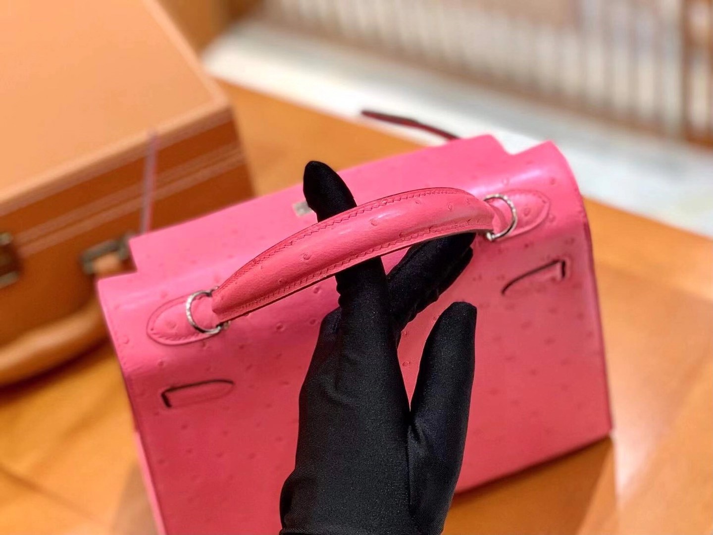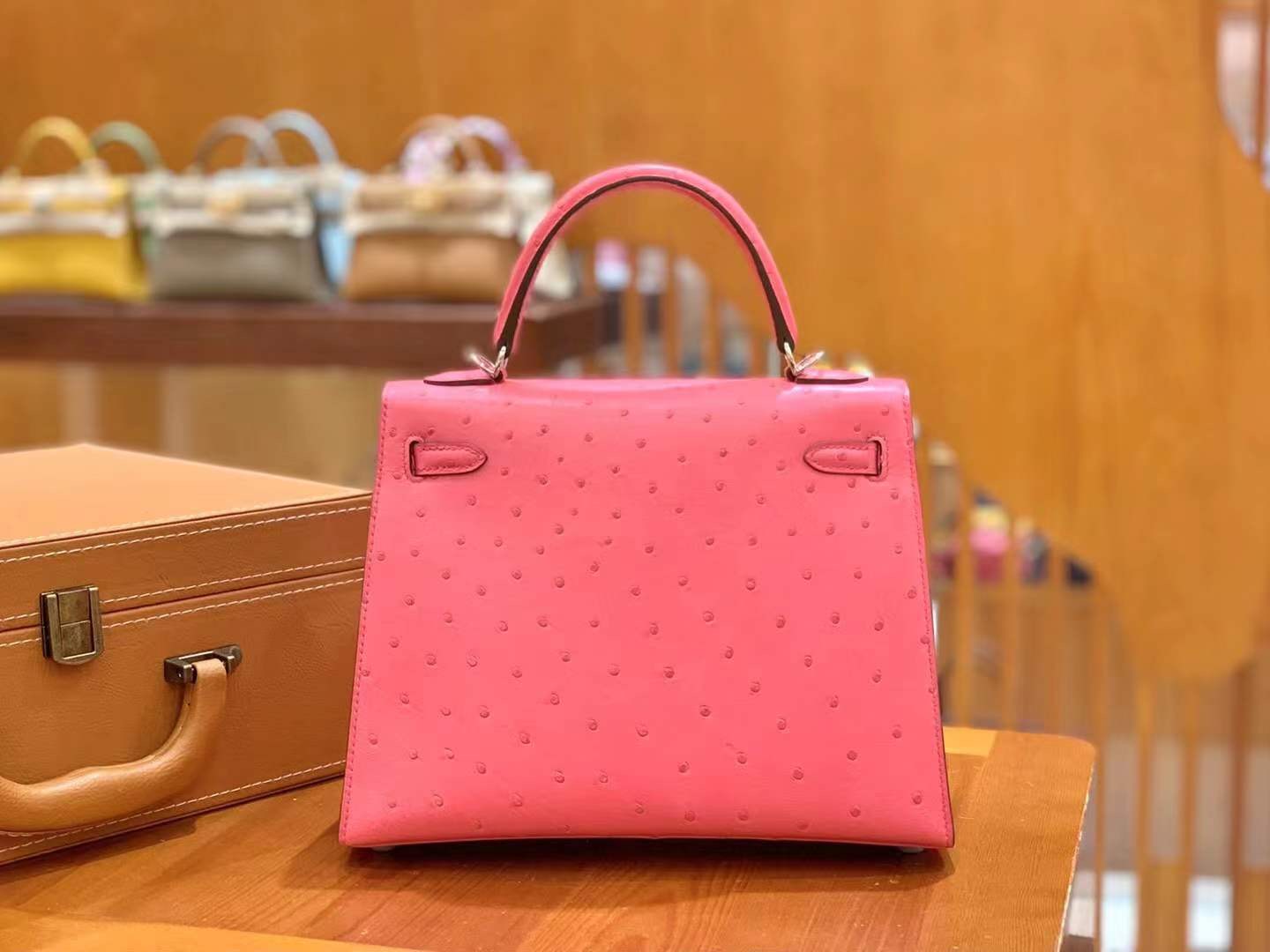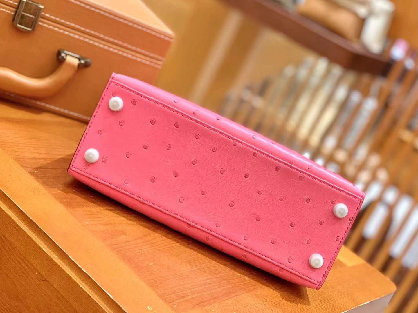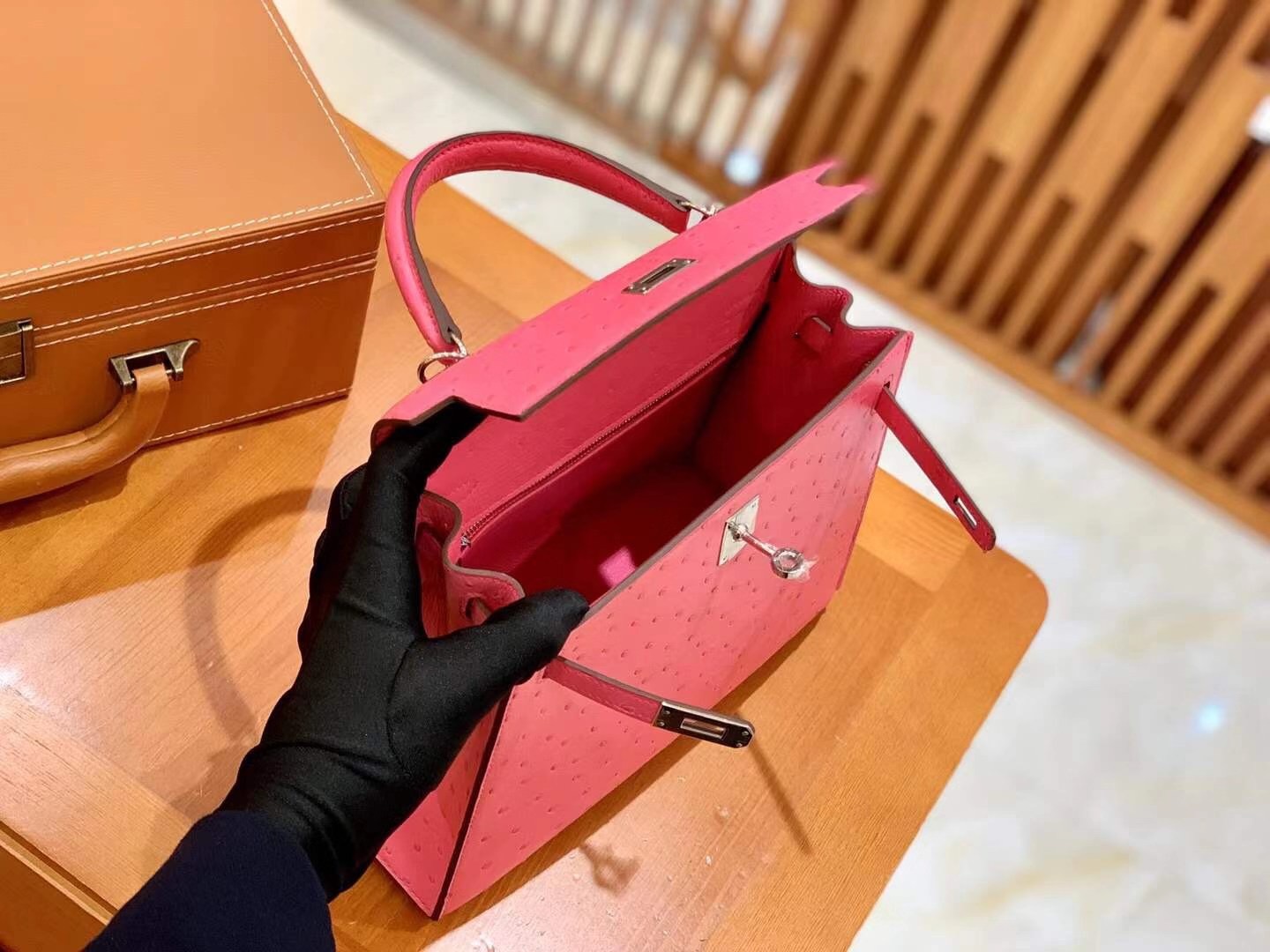 Kelly 25cm Lipstick Powder Silver Buckle Imported South African KK grade ostrich leather. Hand-sewn