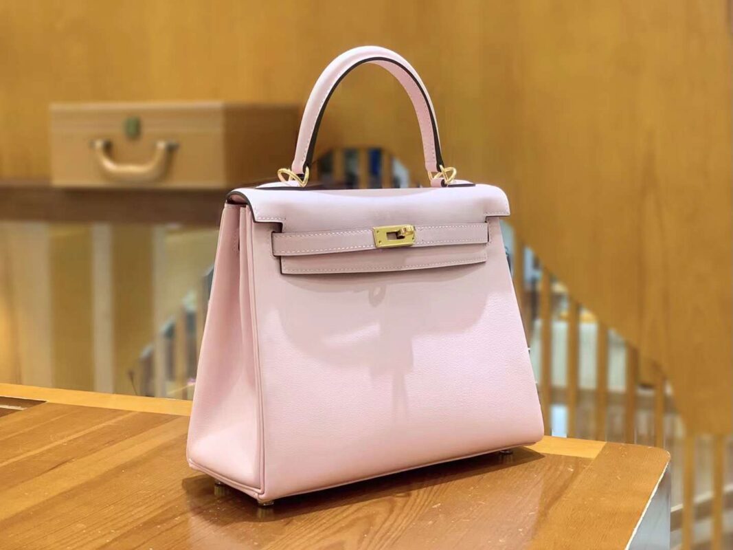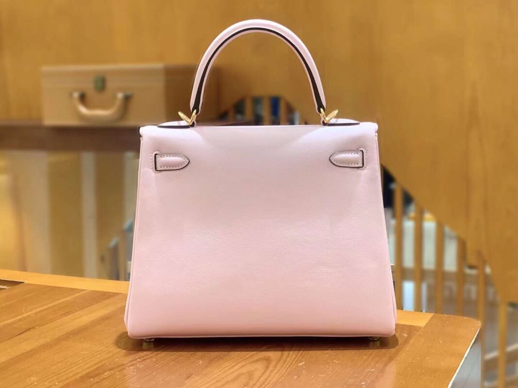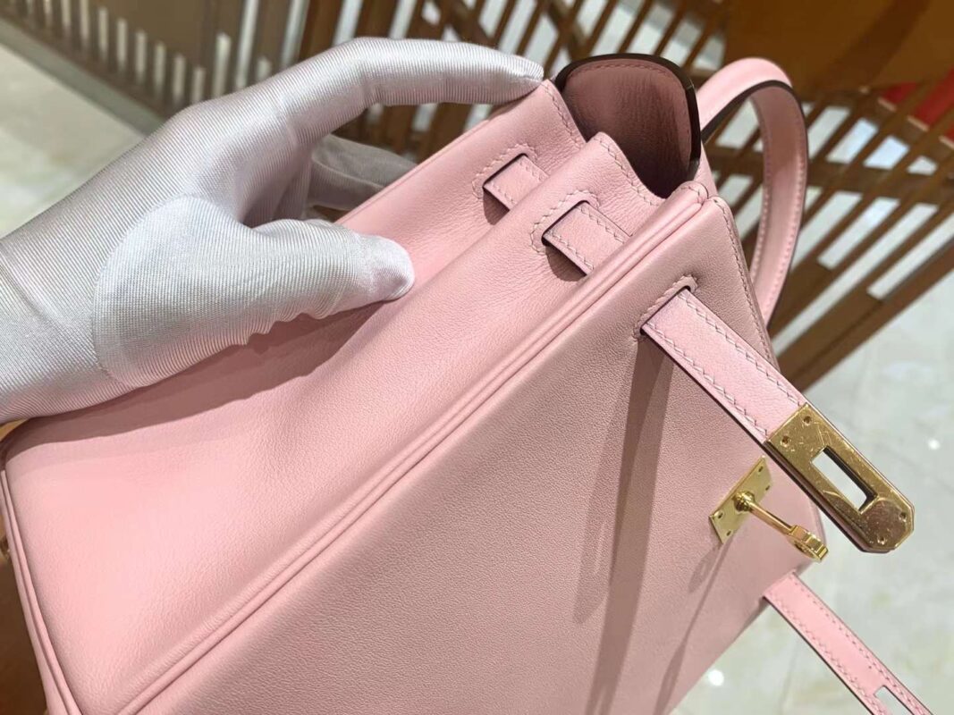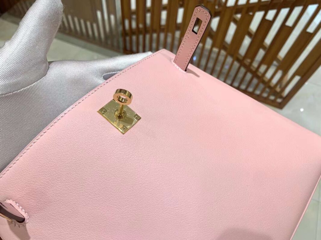 KL25cm Q Pink. Gold Buckle Imported Swift cowhide. French original beeswax thread. Fully hand-sewn