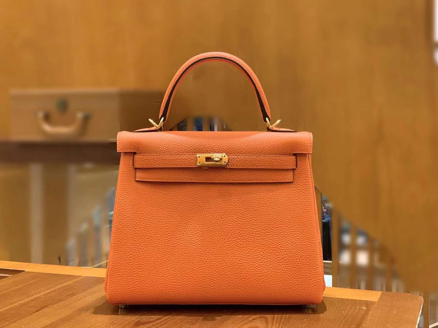 KL25cm Classic Orange. Gold Buckle Imported Togo cowhide. French original beeswax thread. Fully hand-sewn